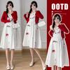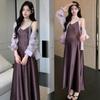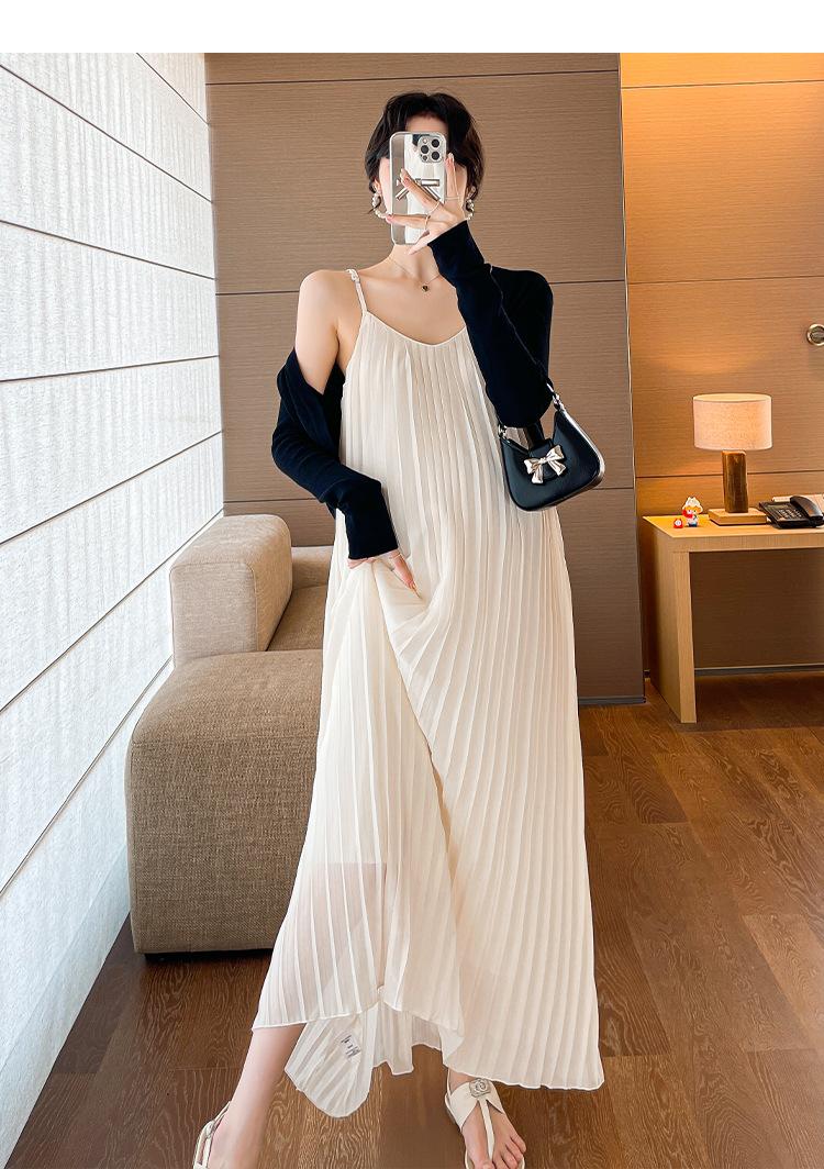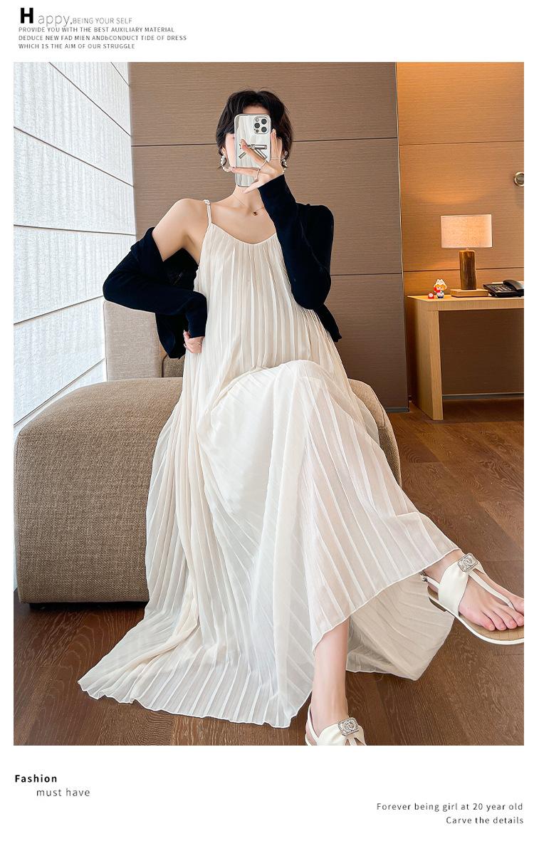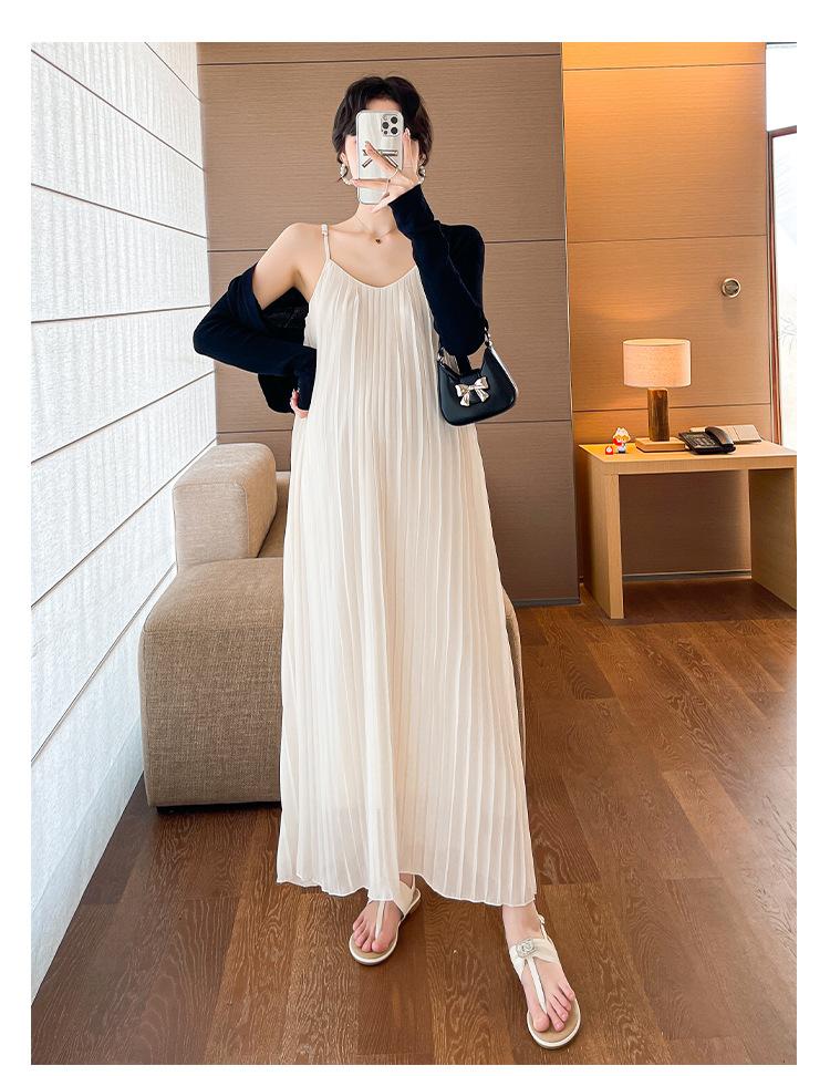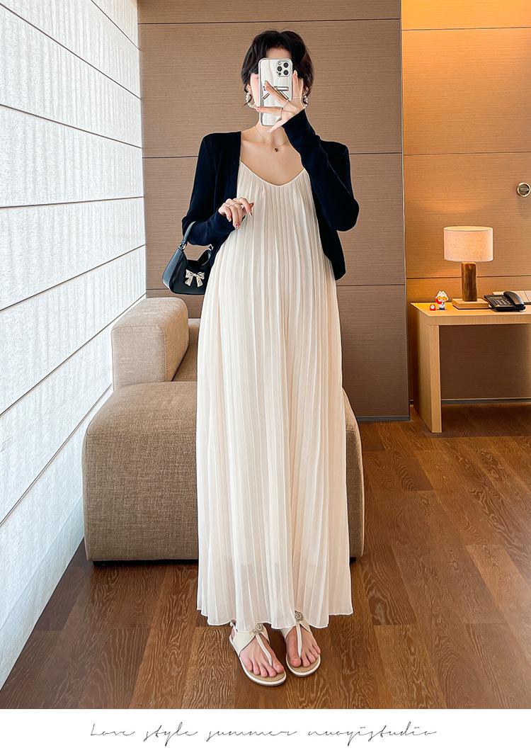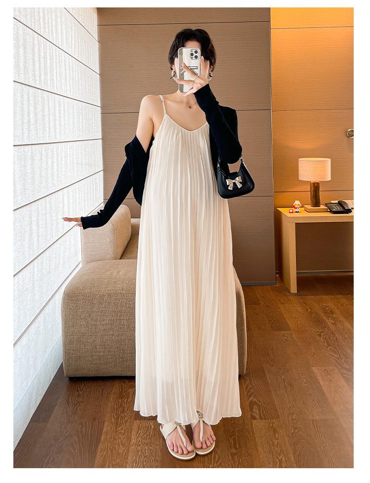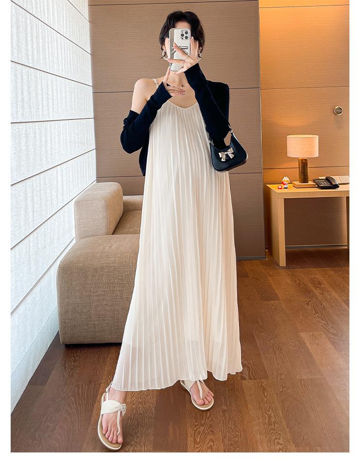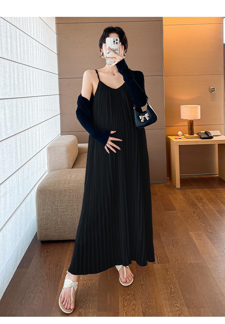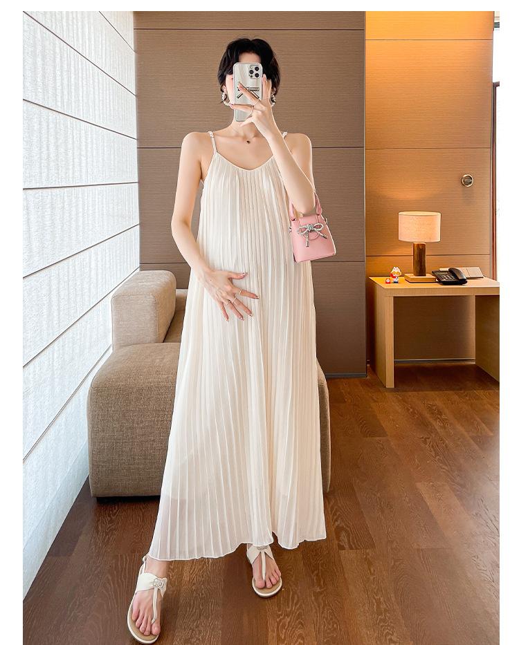 Ropa de Maternidad 2025 Nuevo Estilo de Verano 100% de descuento Falda Larga con Tirantes de Gasa + Cárdigan Vestido de Maternidad de Dos Piezas