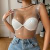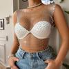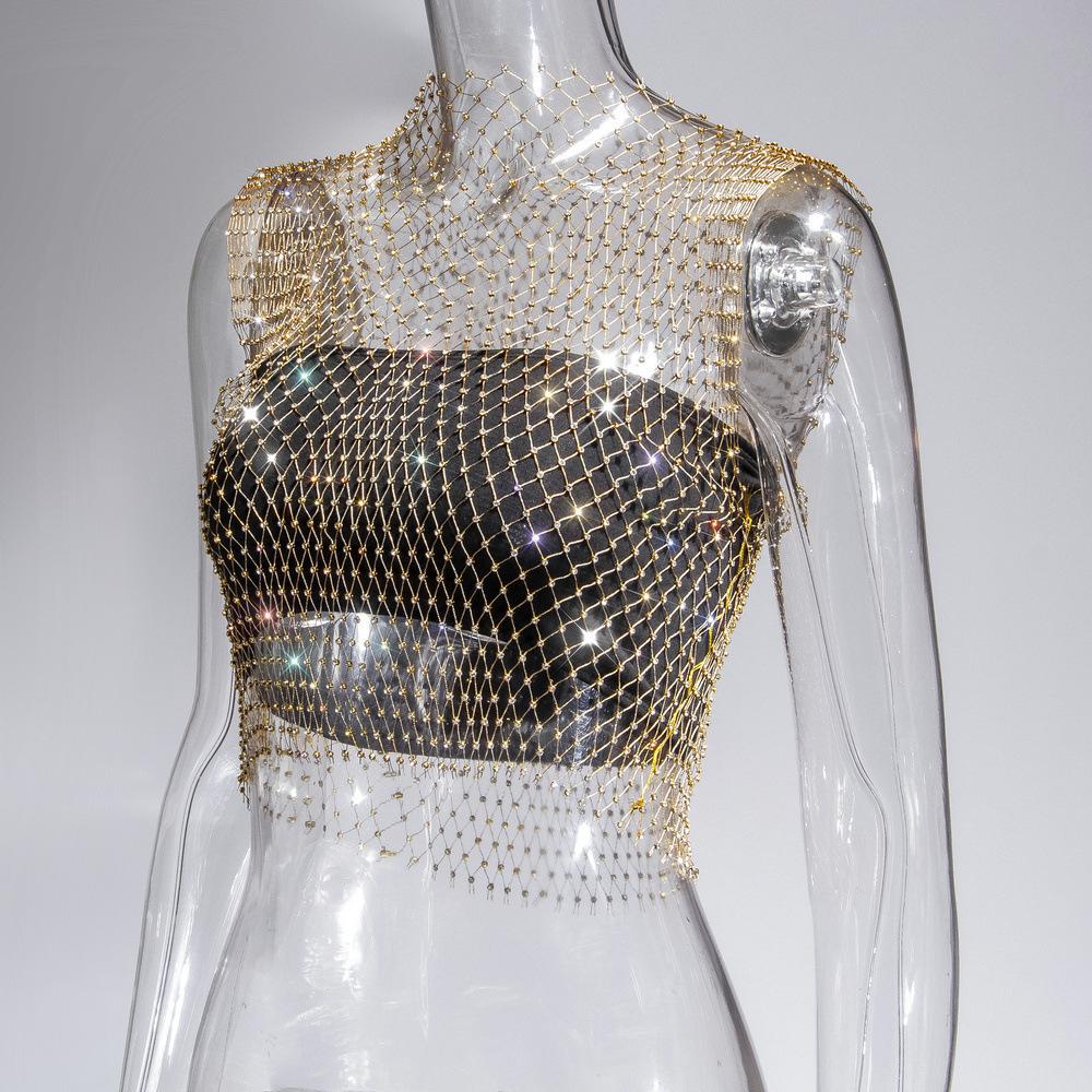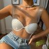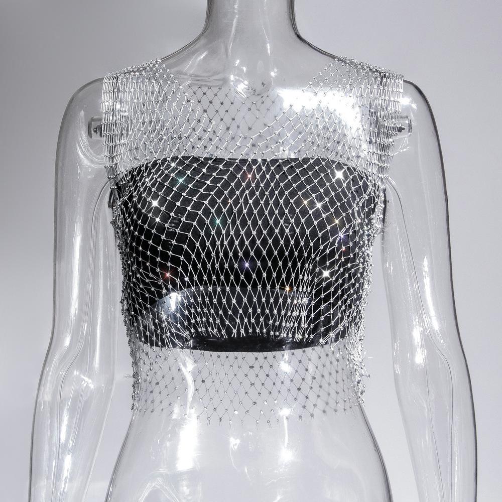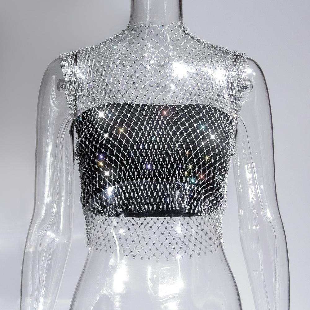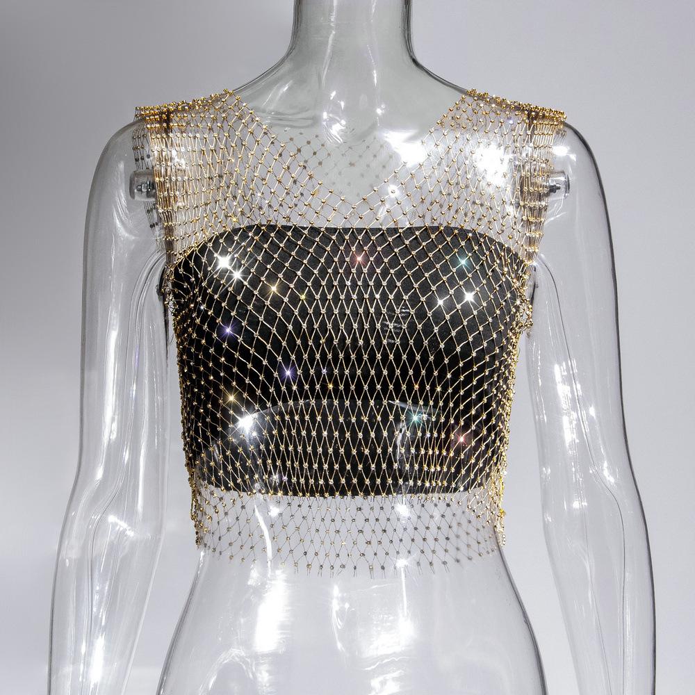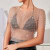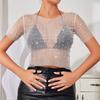 Nuevo Chaleco de Malla con Pedrería de Verano Europeo y Americano Nuevo de Amazon Pedrería de Malla para Mujer de Manga Corta Comercio Exterior