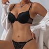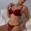 Ropa interior de encaje de copa delgada francesa para mujer, sexy y cómoda, con aros, realce para pecho pequeño, push-up, tentación, conjunto de sujetador tanga