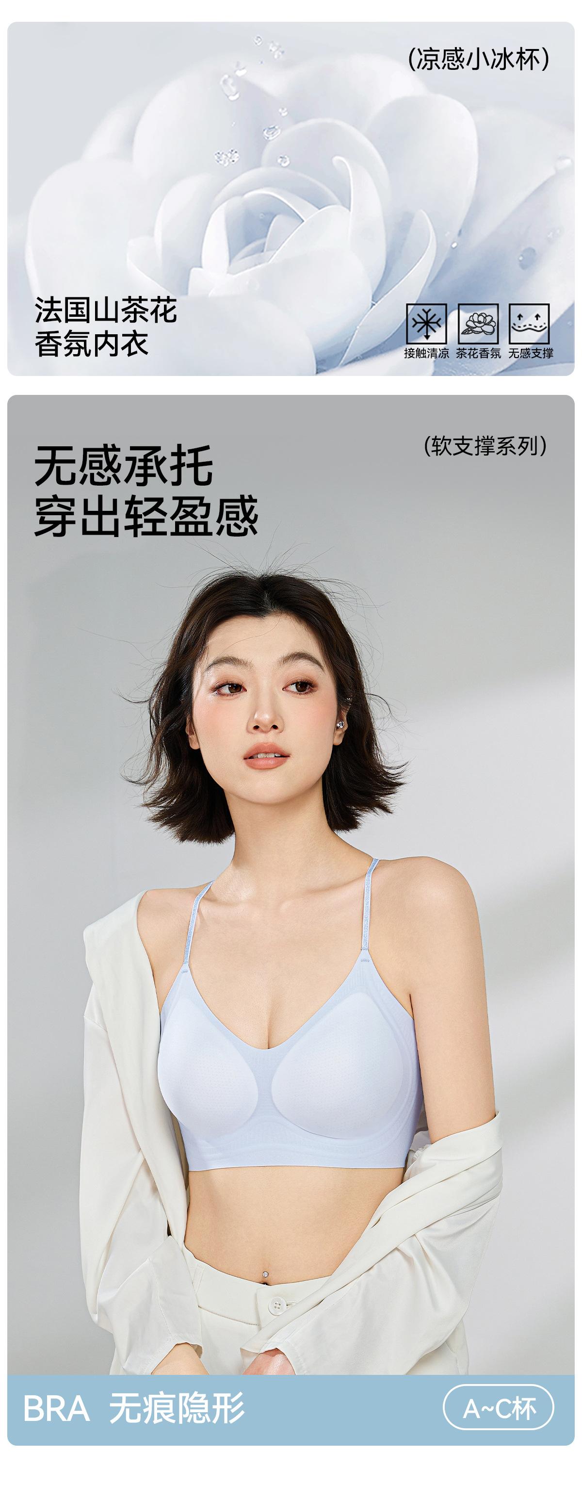 Ropa Interior de Base Líquida para Mujer, Delgada, Fresca y Cómoda, Brasier Push-Up Sin Costuras, Chaleco con Fragancia de Camelia, Brasier Sin Aros