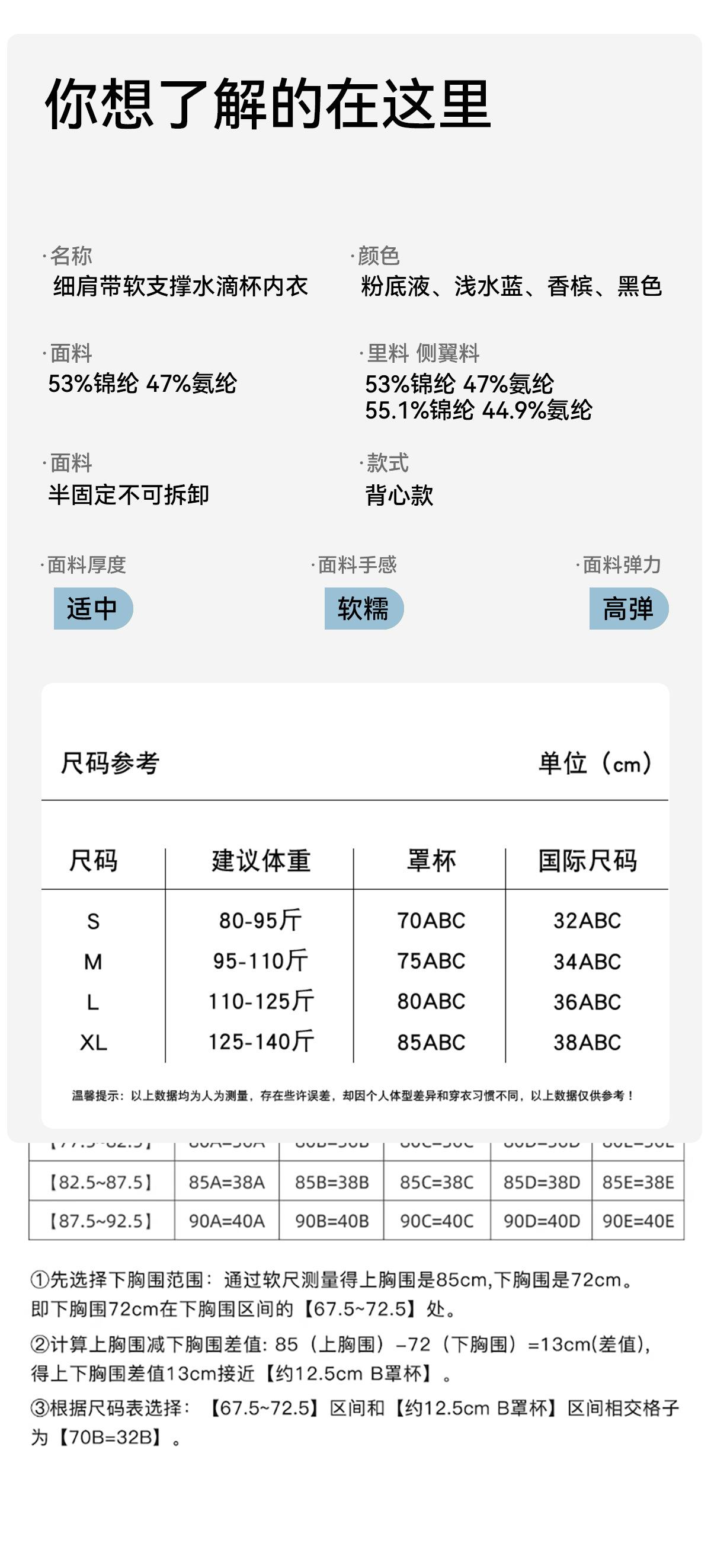 S【32/70ABC】, M【34/75ABC】, L【36/80ABC】, XL【38/85ABC】