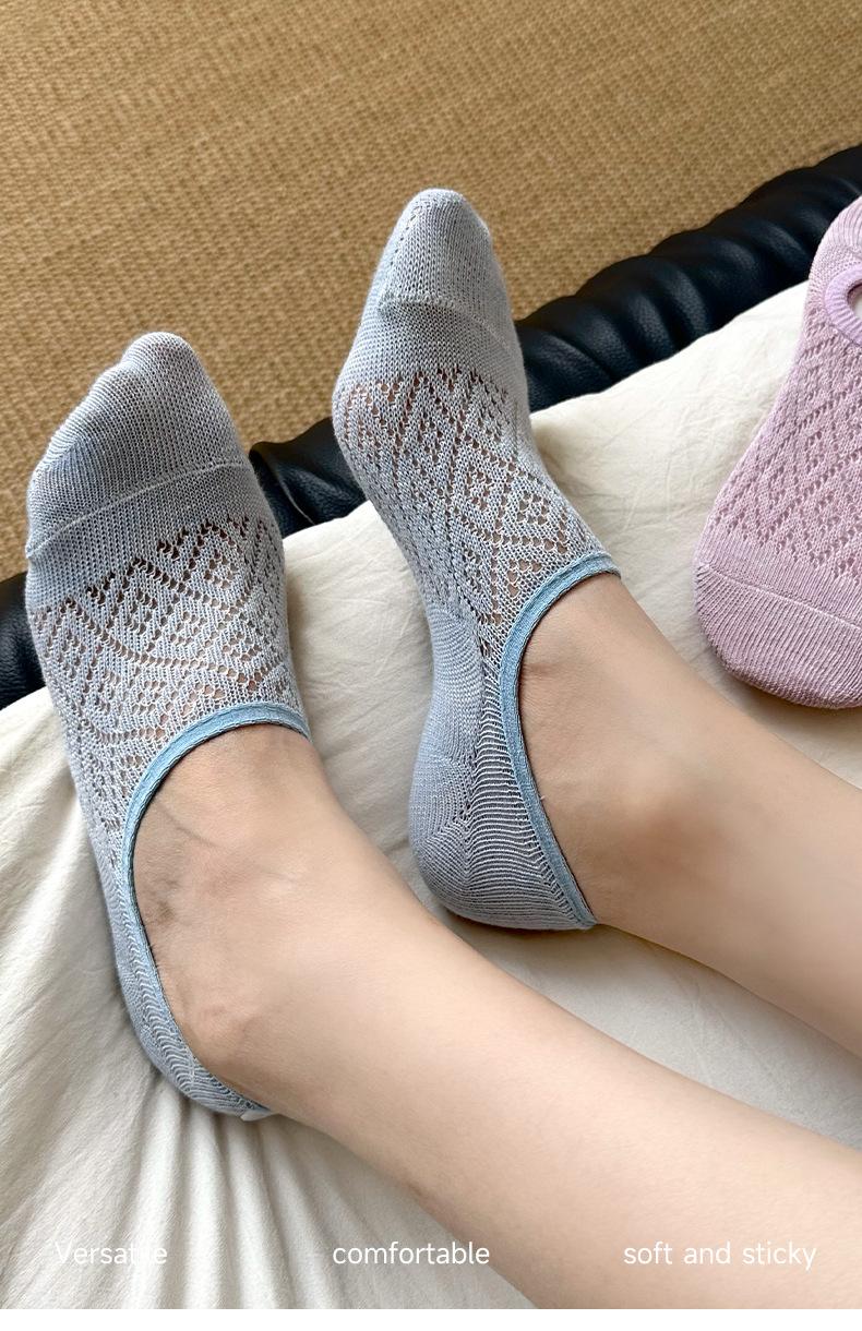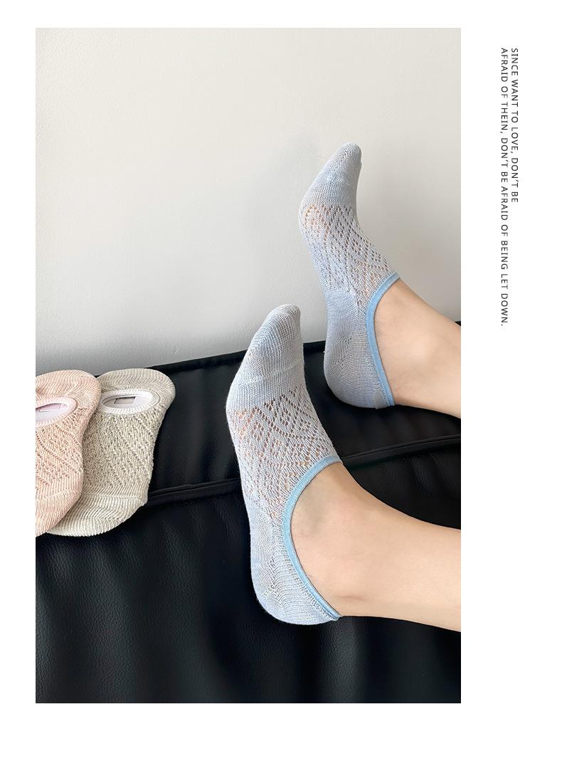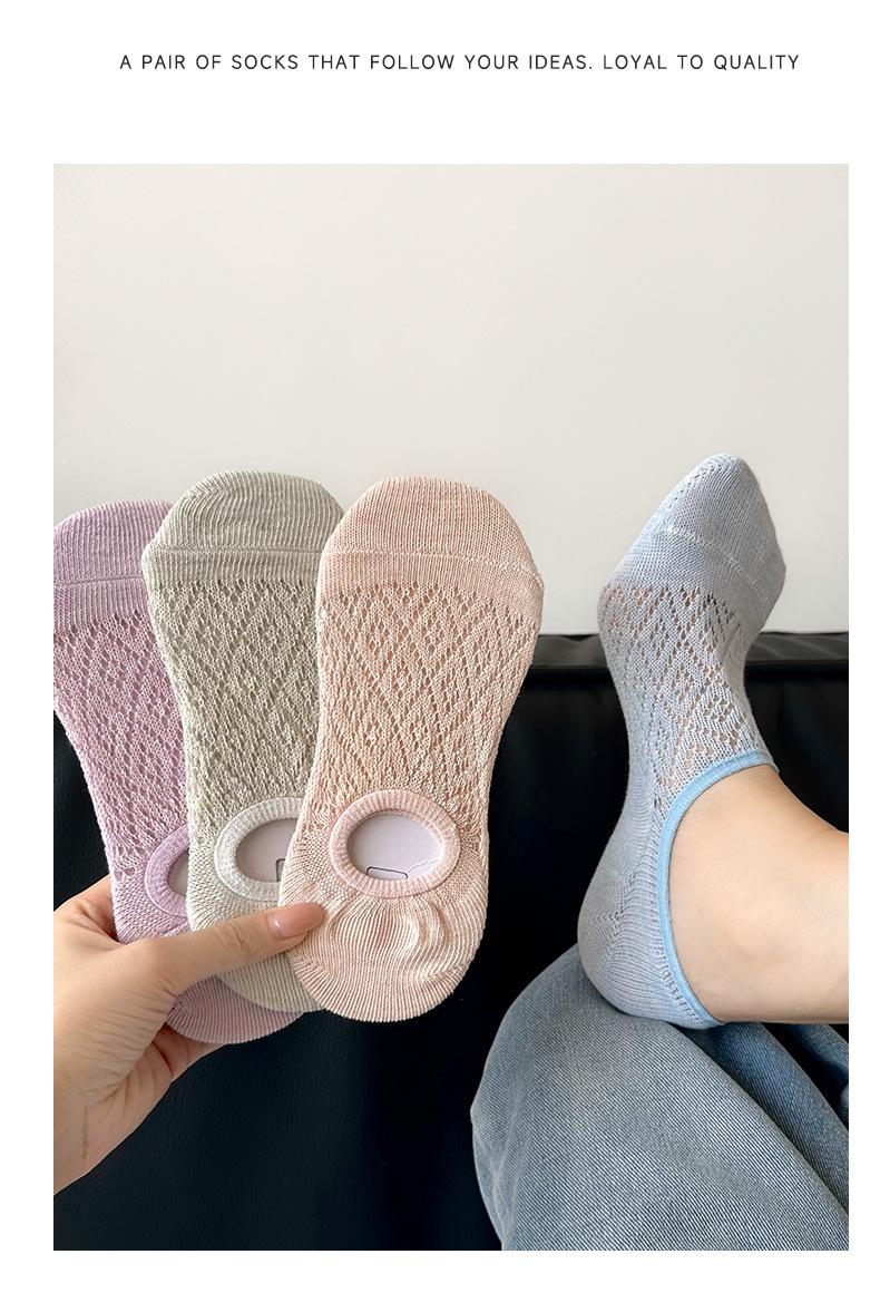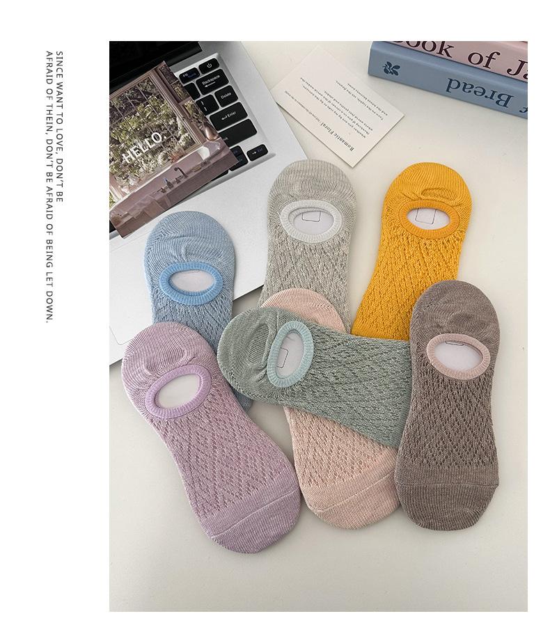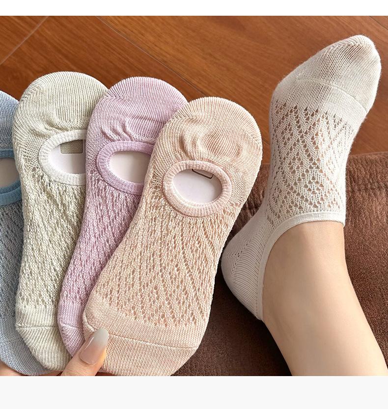 Calcetines Invisibles de Verano para Mujer de Color Sólido, Malla Hueca Fina Transpirable, Corte Bajo, Antideslizantes de Silicona, Calcetines Barco No-Show