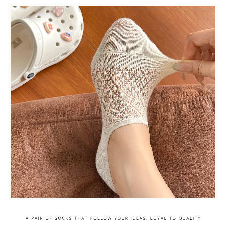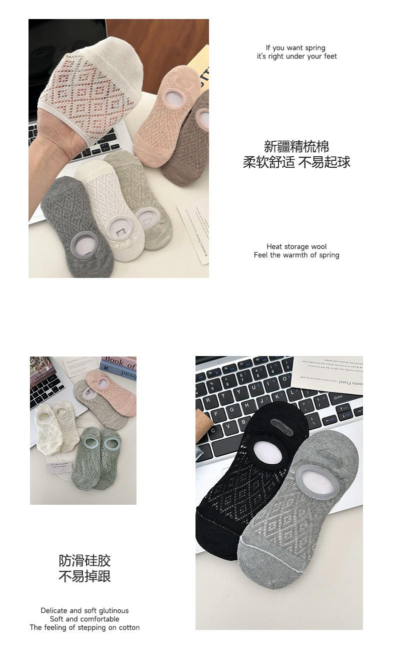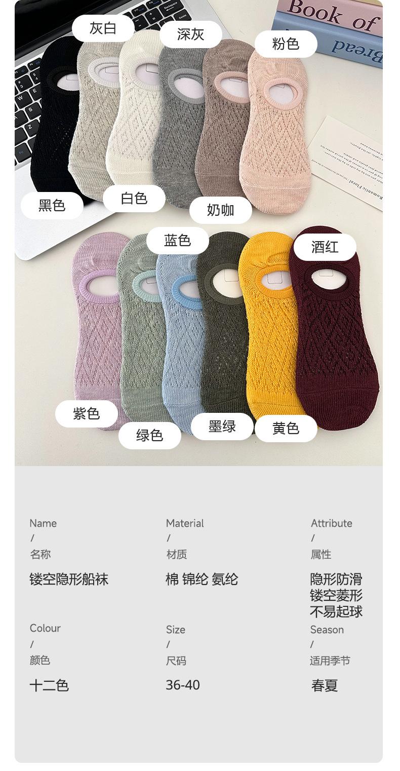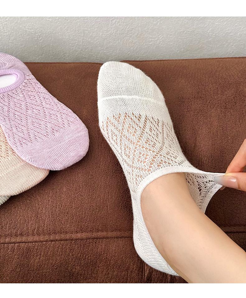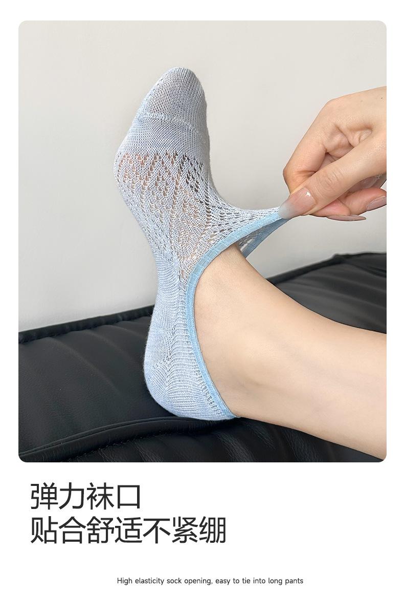 Calcetines Invisibles de Verano para Mujer de Color Sólido, Malla Hueca Fina Transpirable, Corte Bajo, Antideslizantes de Silicona, Calcetines Barco No-Show