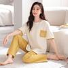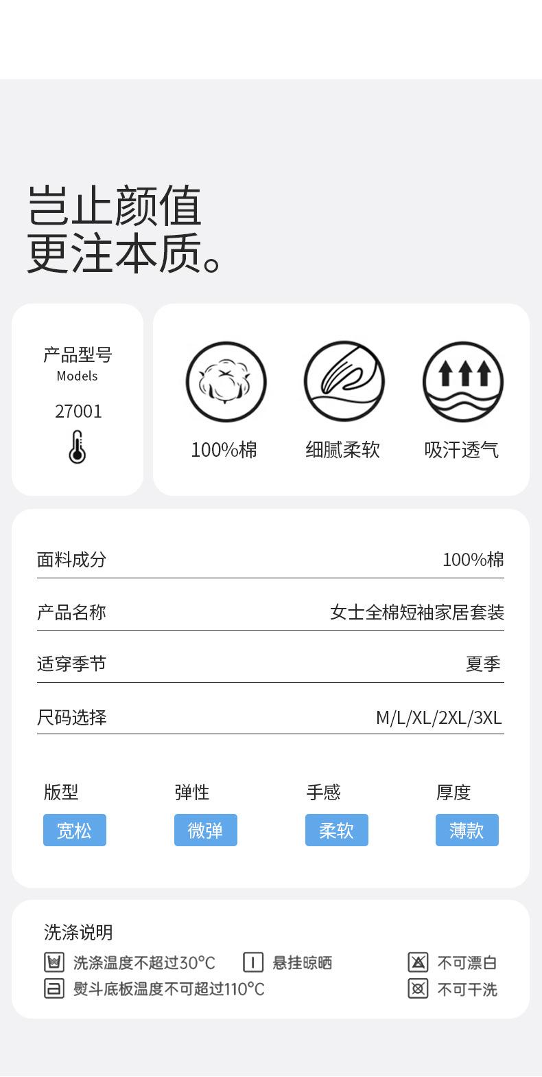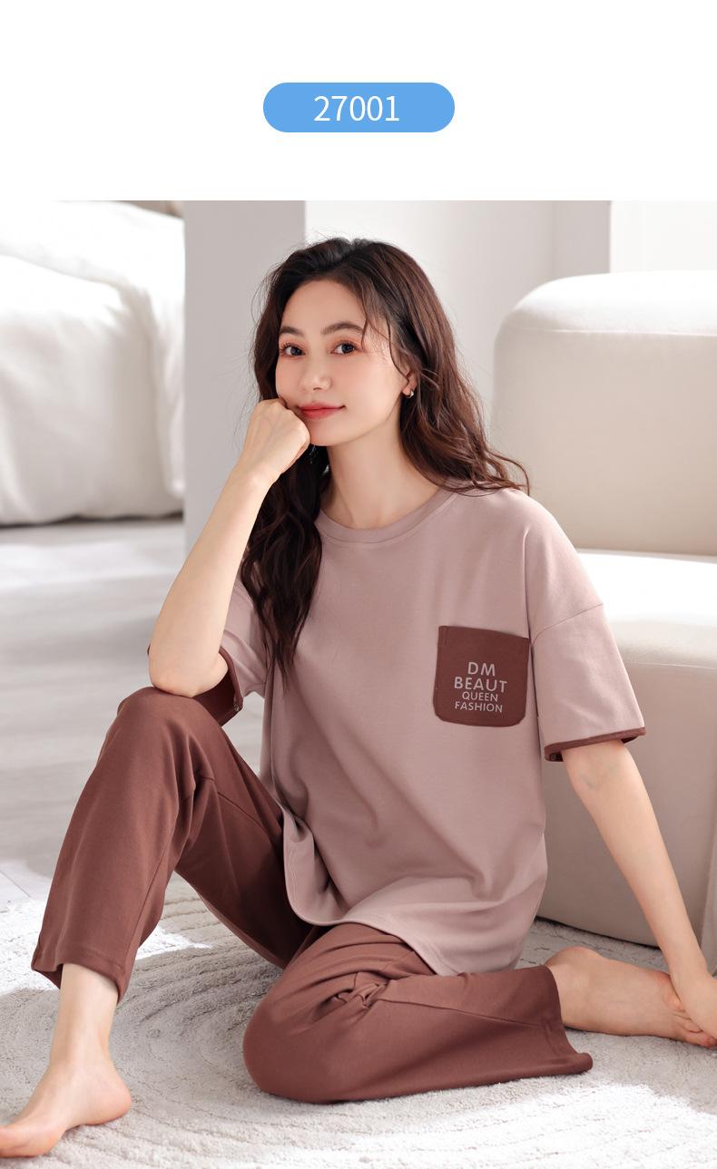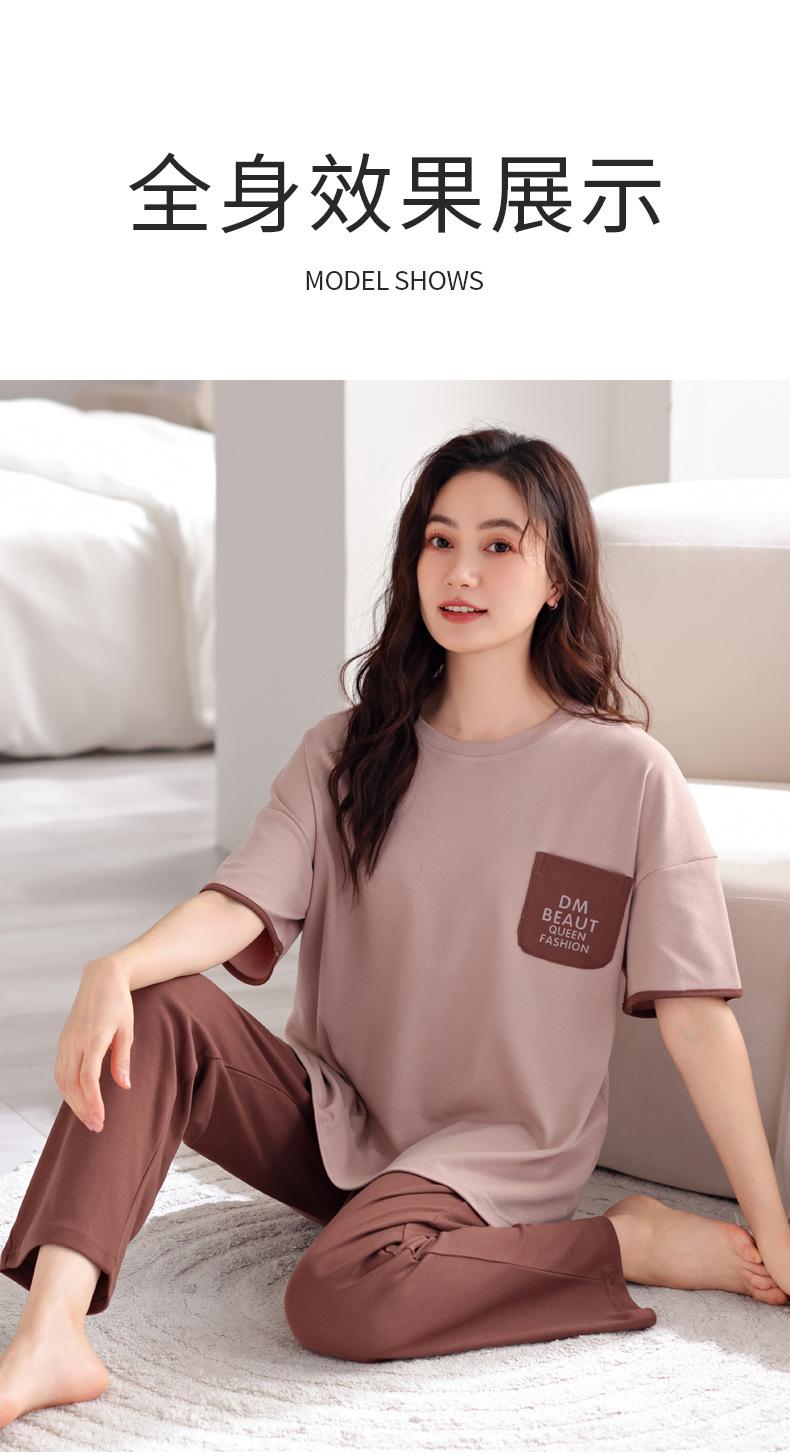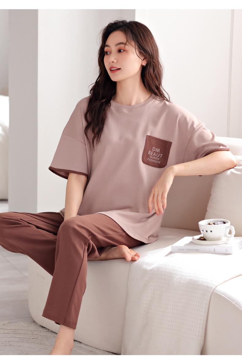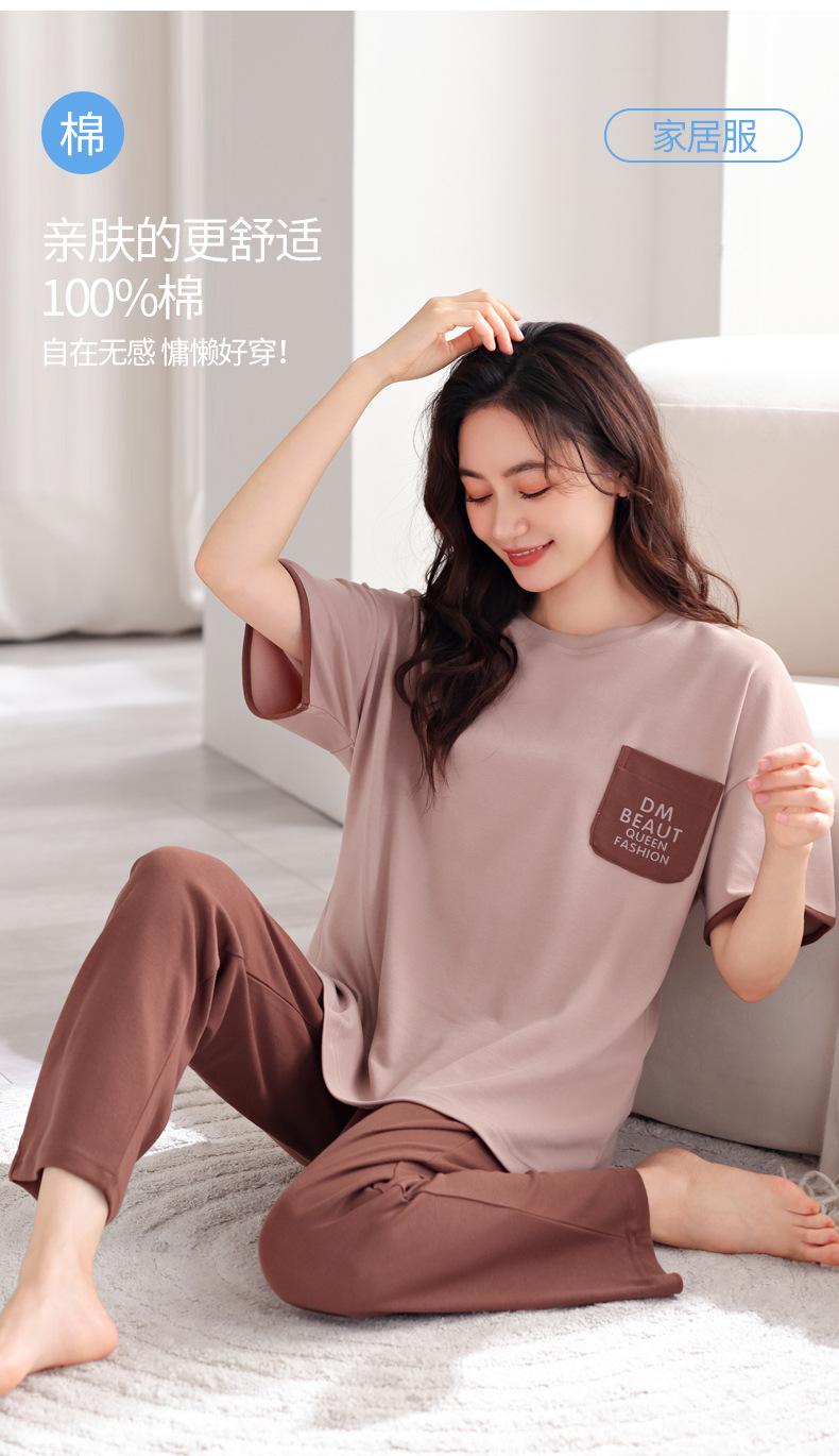 Pijamas para Mujer Verano Algodón Puro Manga Corta Pantalones Algodón Puro Delgada Verano Talla Grande Mujer Puede Usar Ropa para Casa Conjunto de Dos Piezas