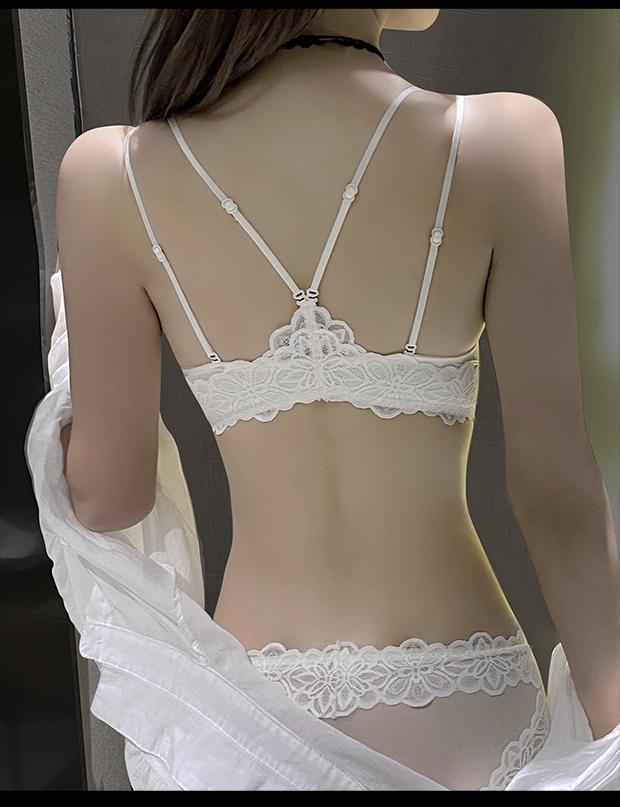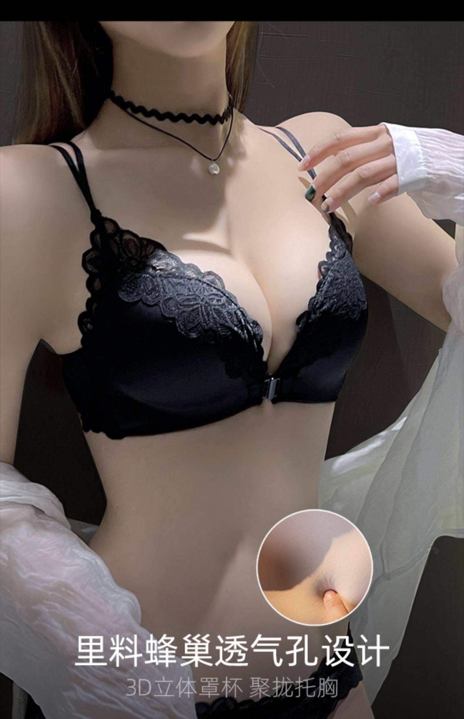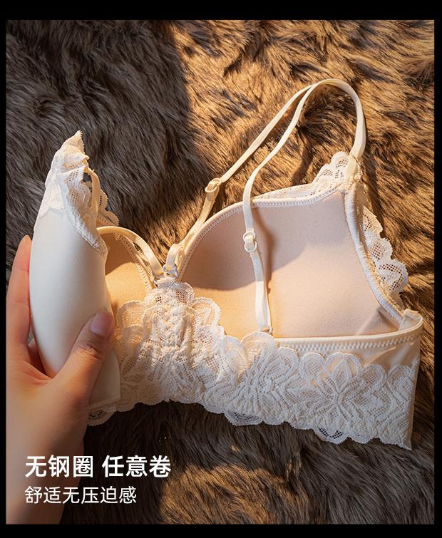 Sujetador de Botón Delantero, Push-Up para Pecho Pequeño Engrosado, Sin Aros, Sujetador Sexy de Botón Delantero, Encaje Blanco Hermoso Espalda Íntimos para Mujeres Verano