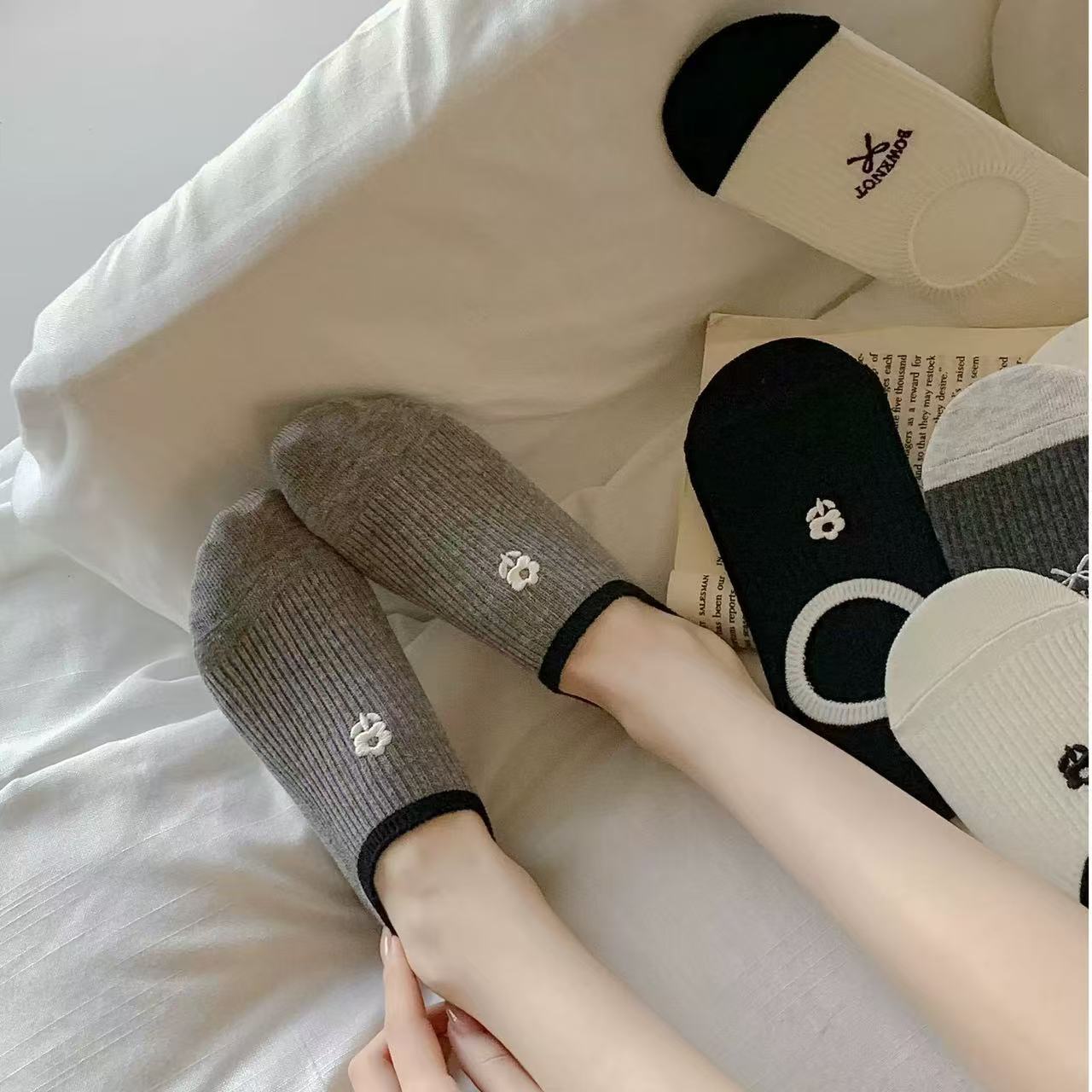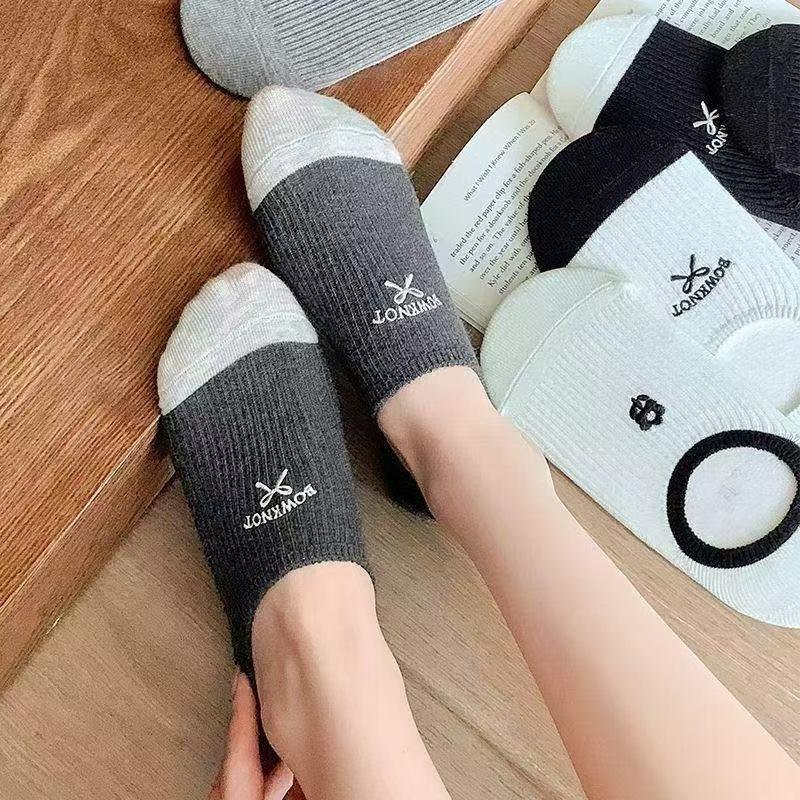 Primavera y Verano Calcetines Invisibles de Boca Baja Coreanos Silicona Antideslizante Letra Amazon Calcetines de Mujer Calcetines Casuales Calcetines de Barco Antipilling