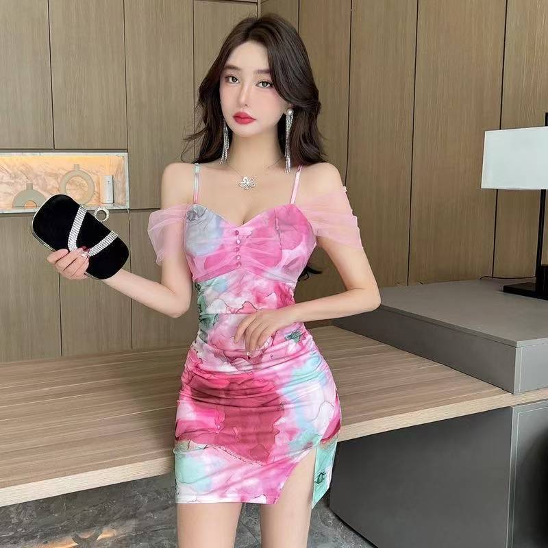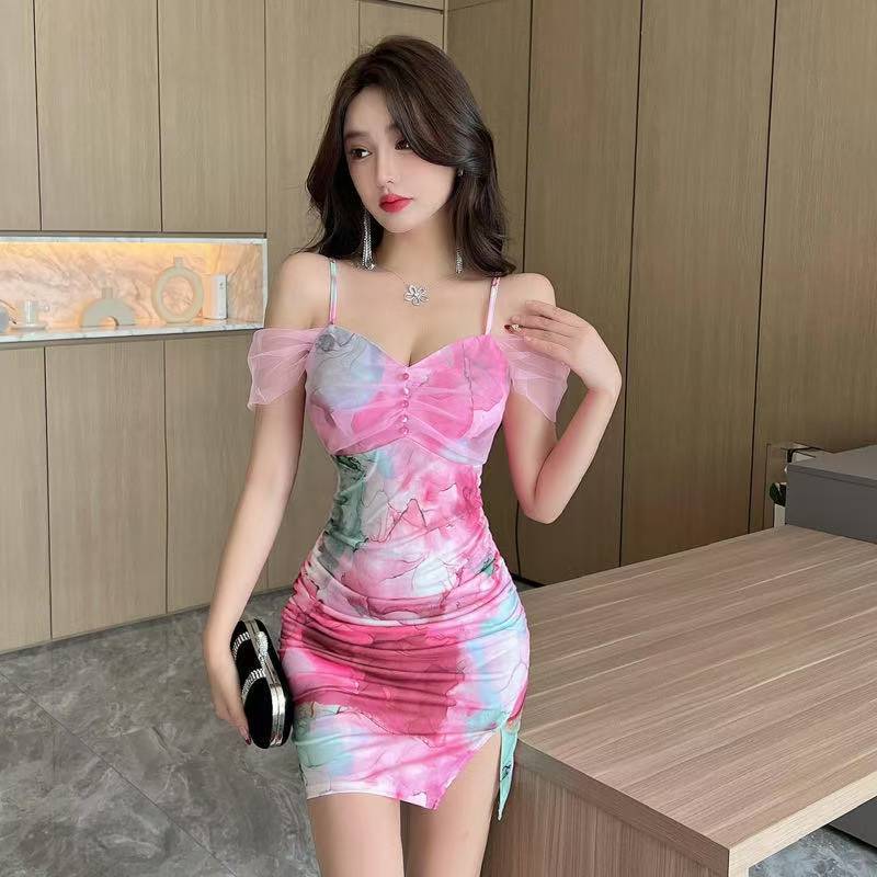 Vestido de Tirantes Yi Mengyao Pure Desire para Mujer, Nuevo Estilo de Verano, Estampado Hot Girl, Vestido Bodycon de Club Nocturno Ajustado