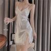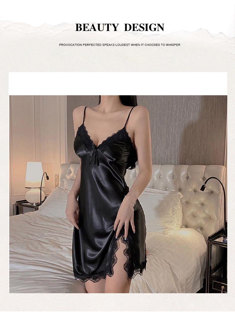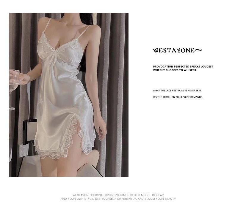 Pijama sexy de encaje para mujer, camisón de satén de gasa con tirantes, ropa de hogar de tentación, puro deseo, primavera y verano