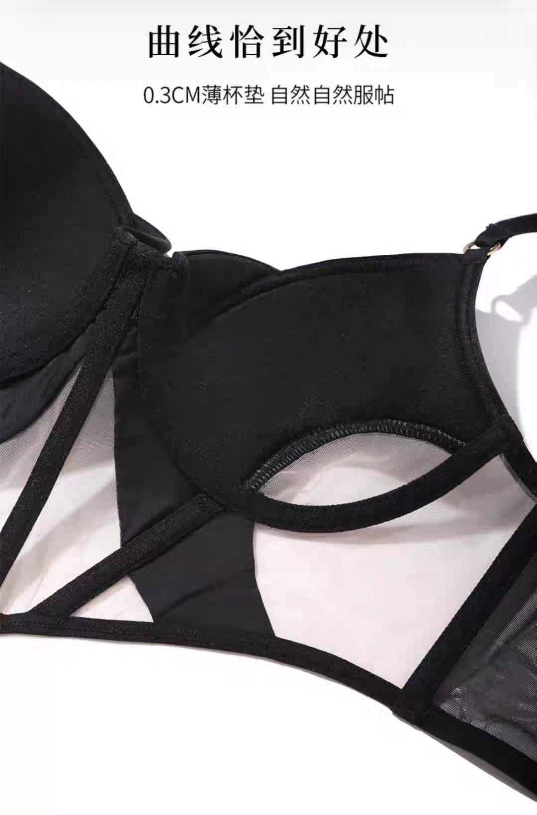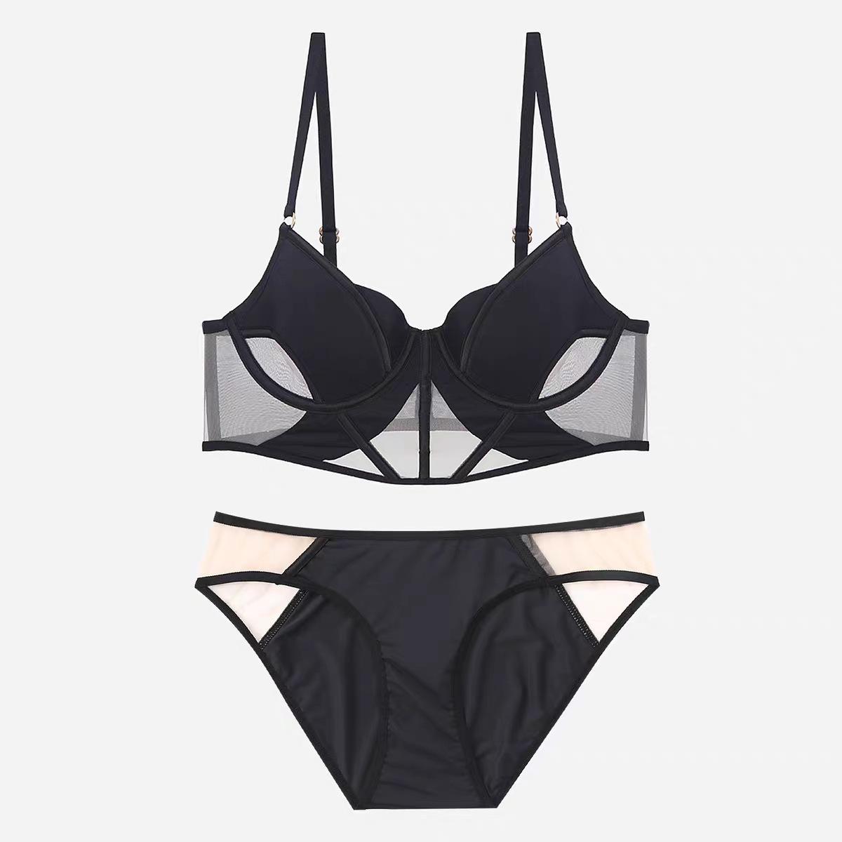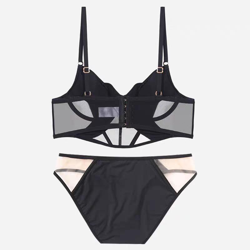 Ropa interior sexy transfronteriza para mujer, ropa interior francesa de algodón fino, malla suave, espiga de pescado, pecho grande, sujetador pequeño antiflacidez, traje