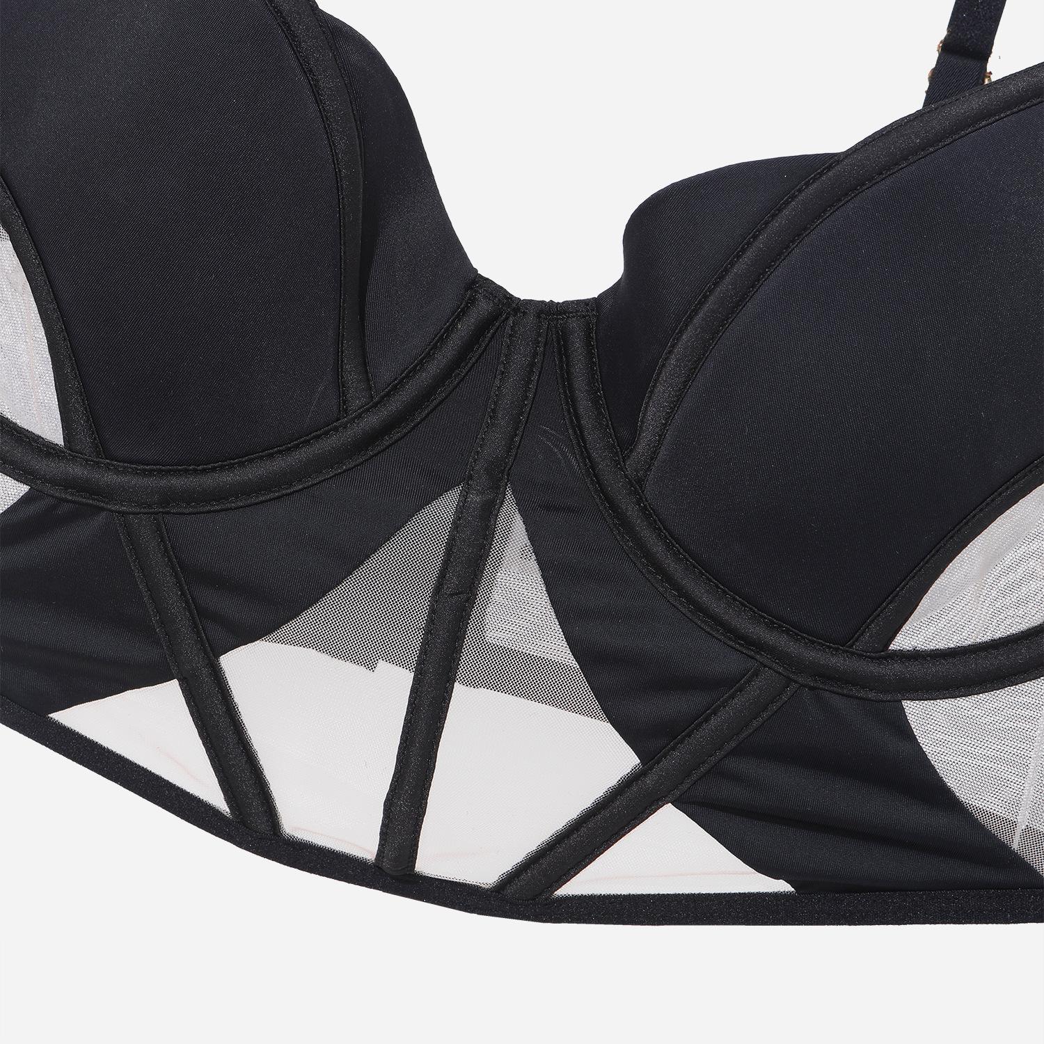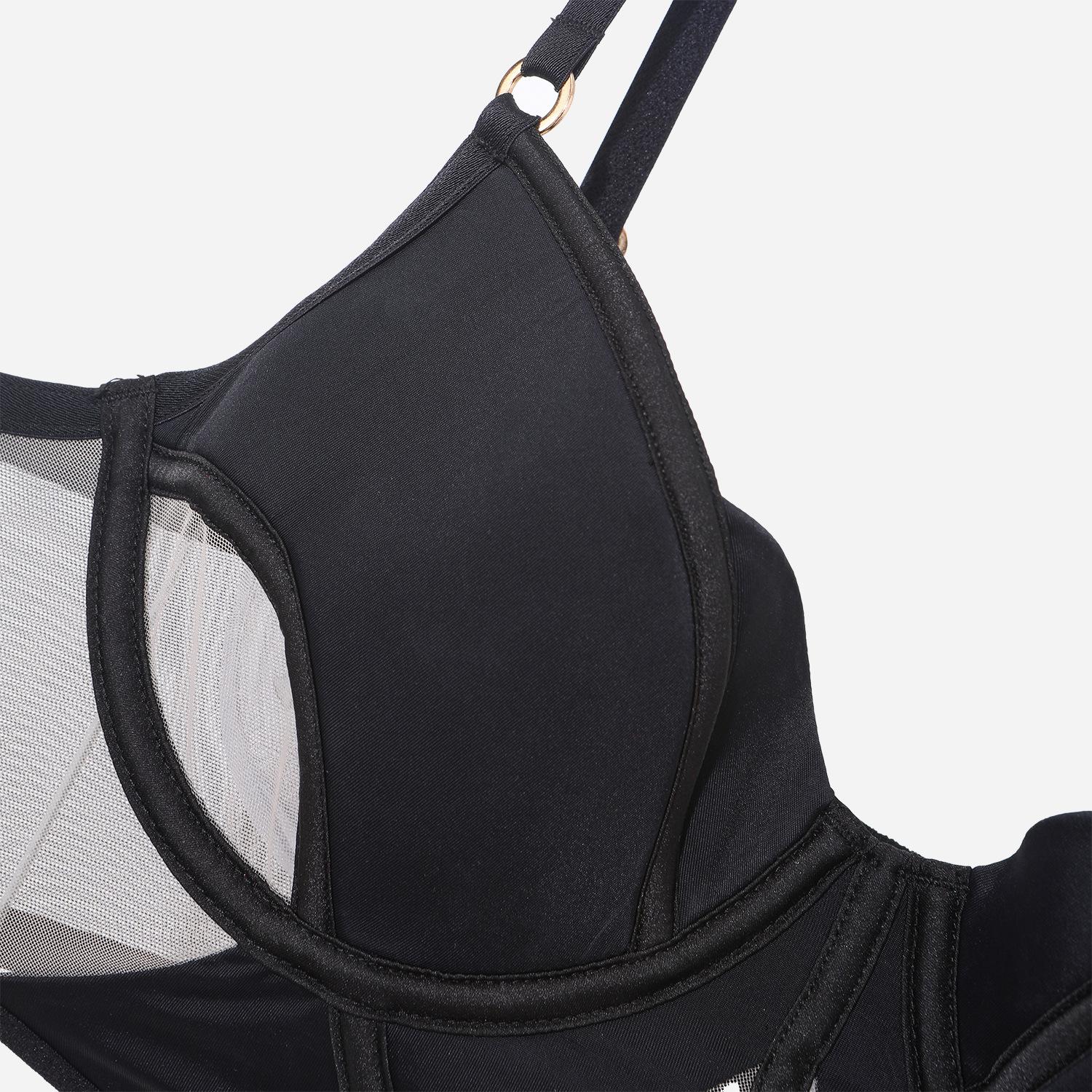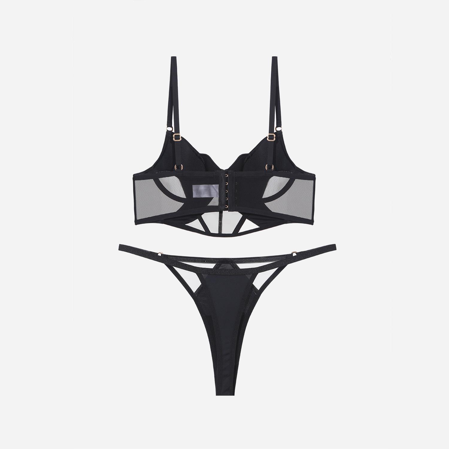 Ropa interior sexy transfronteriza para mujer, ropa interior francesa de algodón fino, malla suave, espiga de pescado, pecho grande, sujetador pequeño antiflacidez, traje