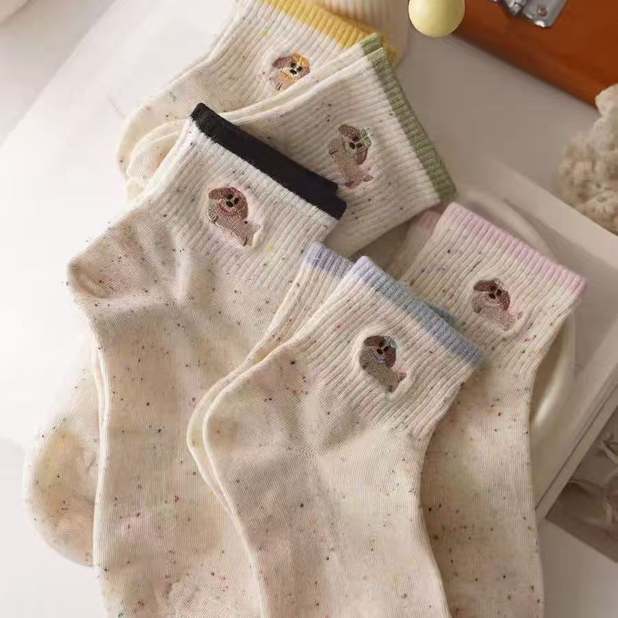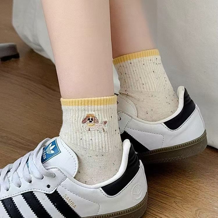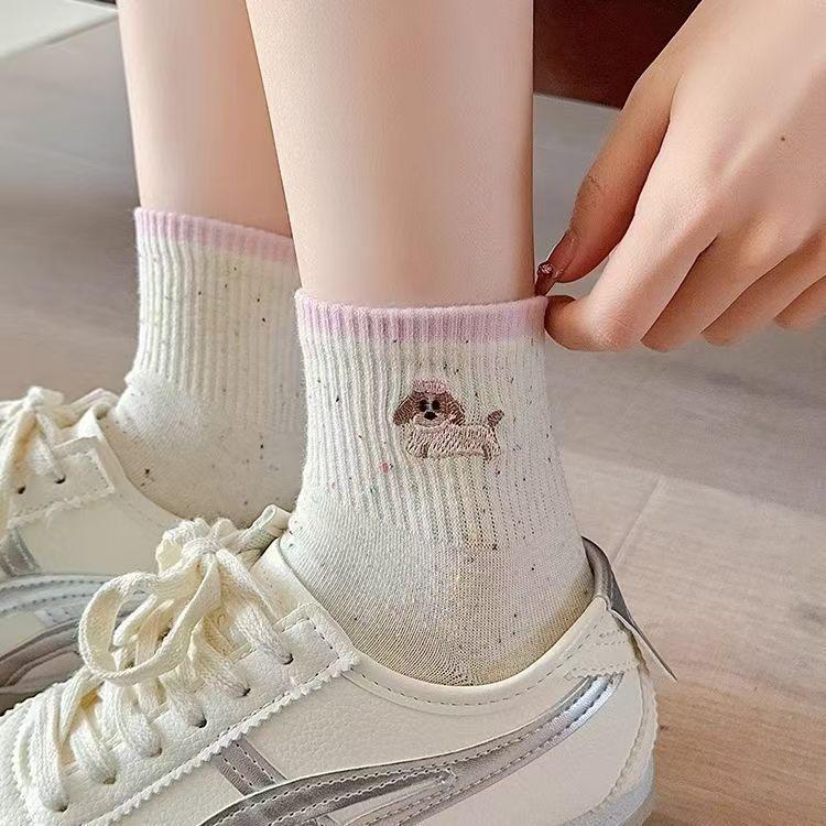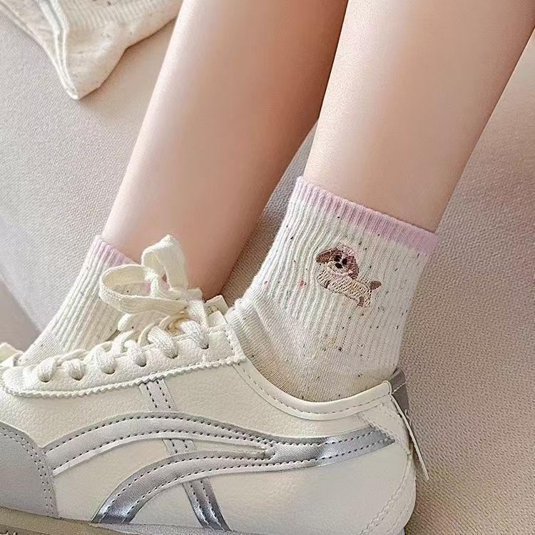 Calcetines de Mujer Primavera y Verano Calcetines Cortos Finos Cachorro de Dibujos Animados Estilo Coreano Hilo Tenue Estilo Academia Calcetines de Moda para Niñas Combinan con Todo Calcetines de Estudiante