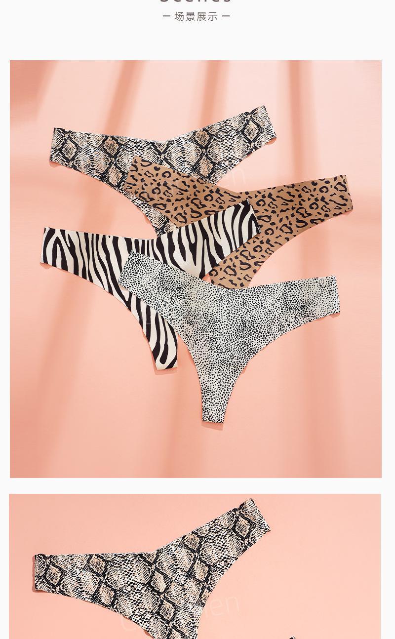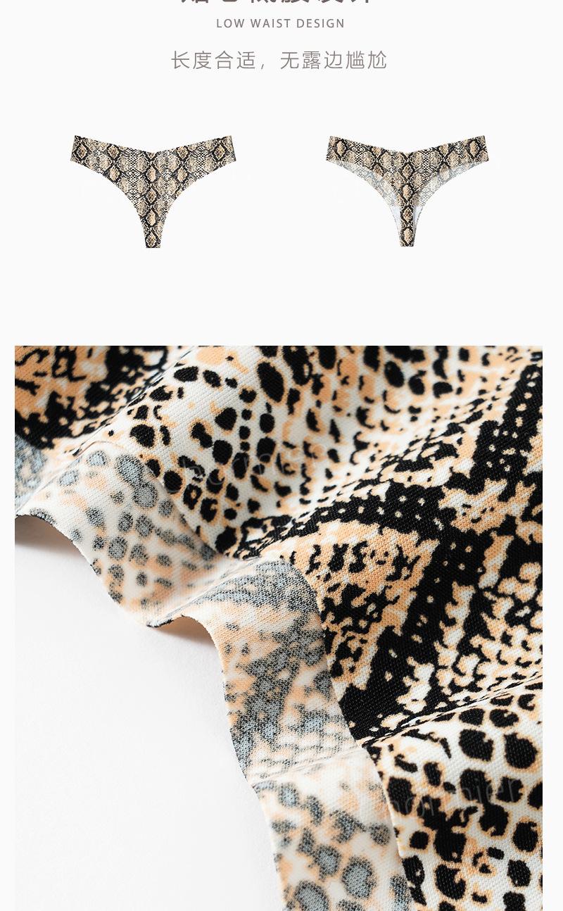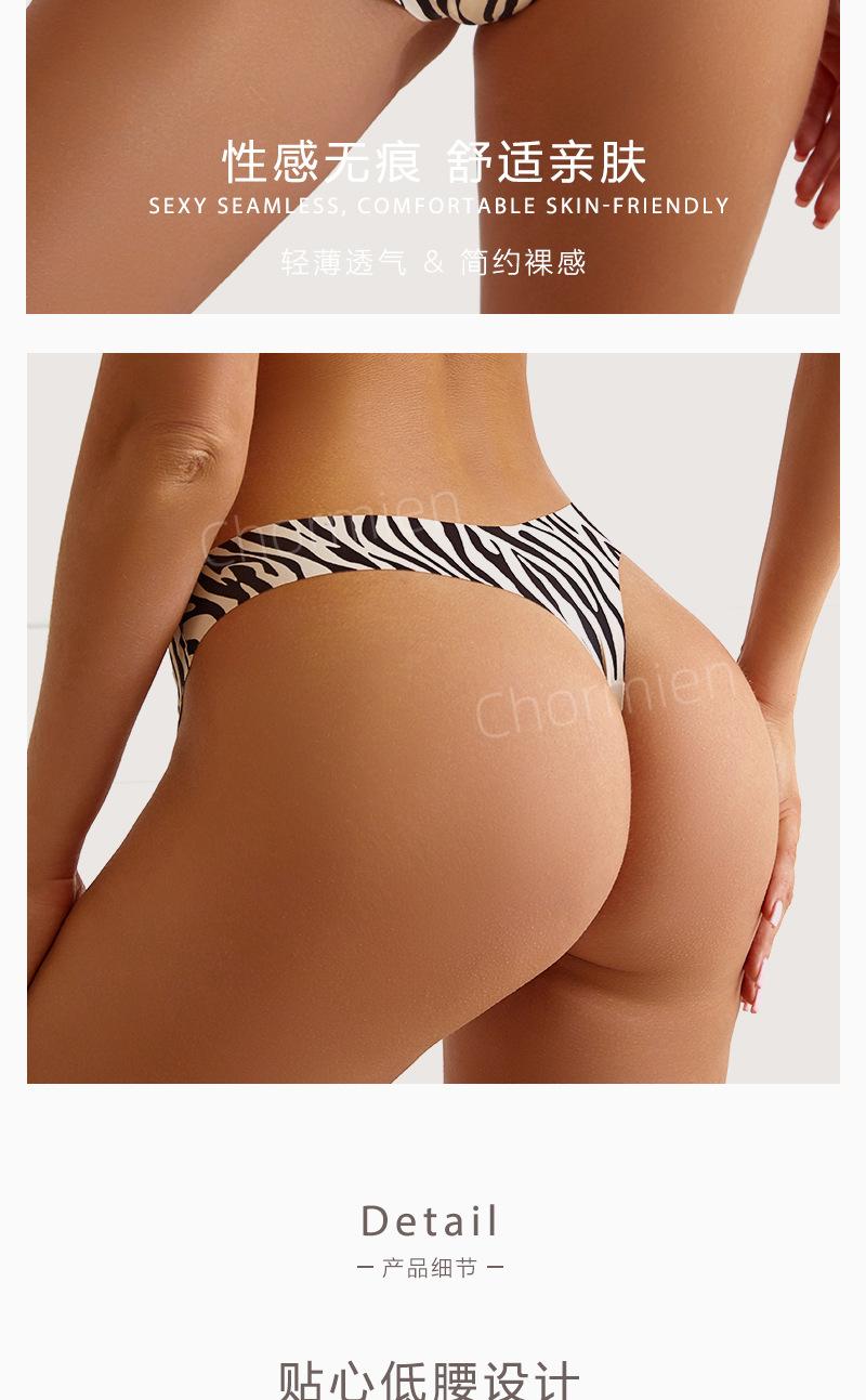 Ropa interior sin costuras estampada de tiro bajo transfronteriza europea y americana para mujer, Tanga de una pieza en forma de T pegada de seda de hielo nude para mujer