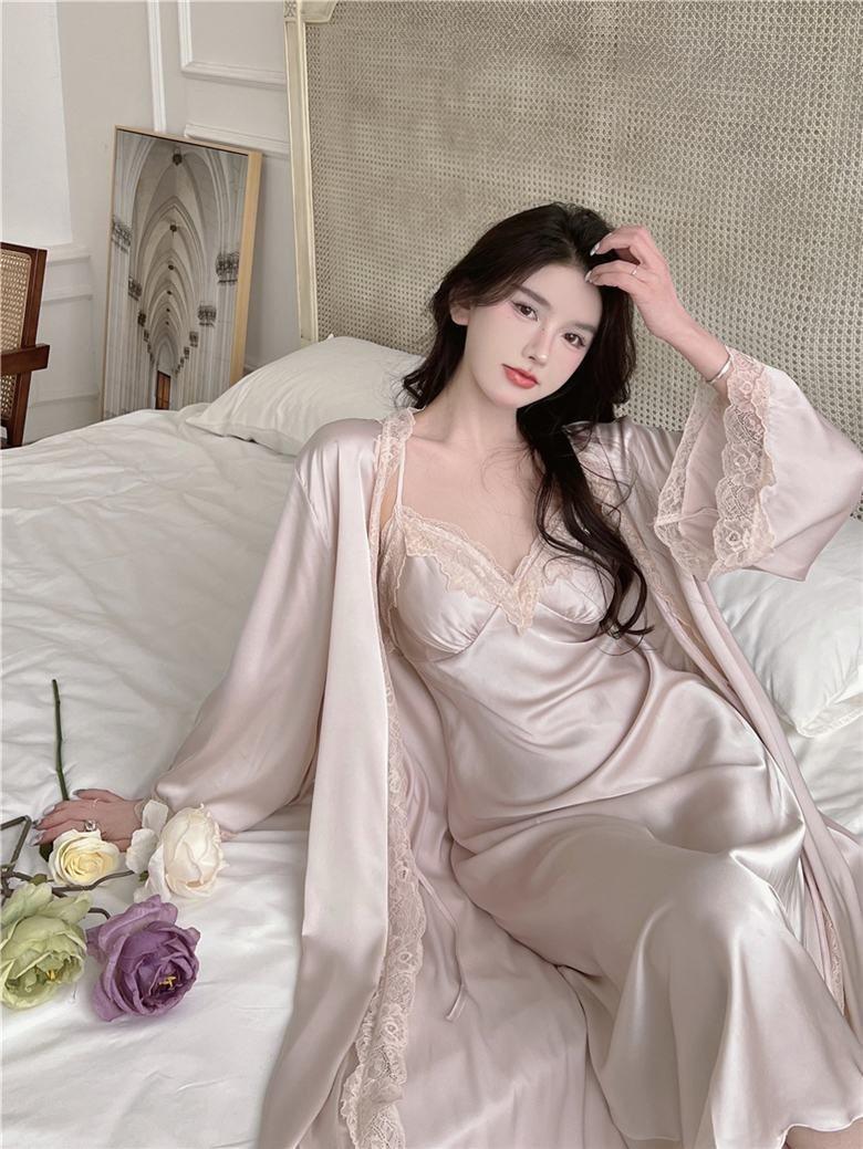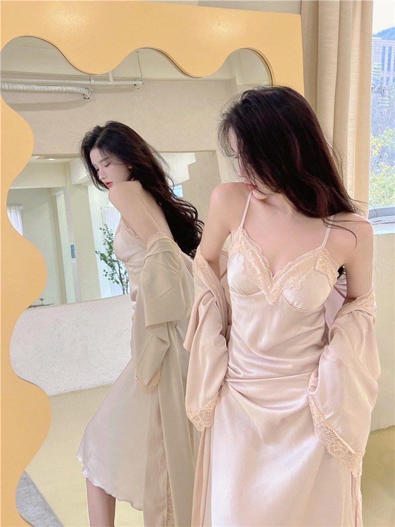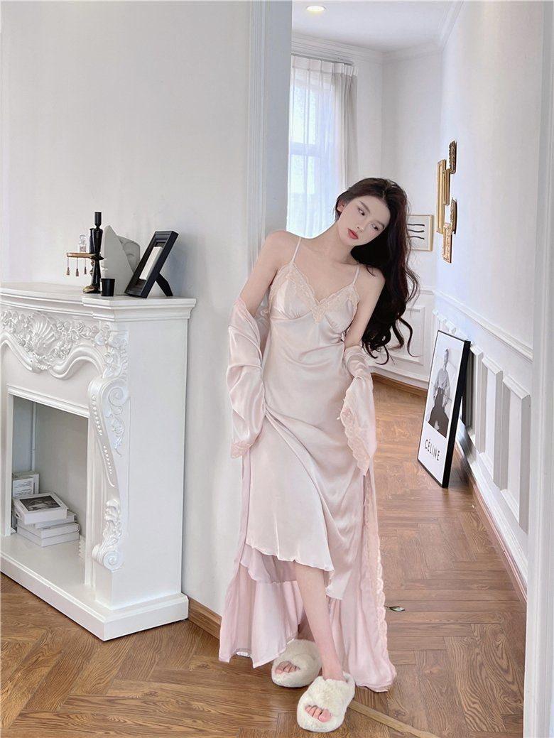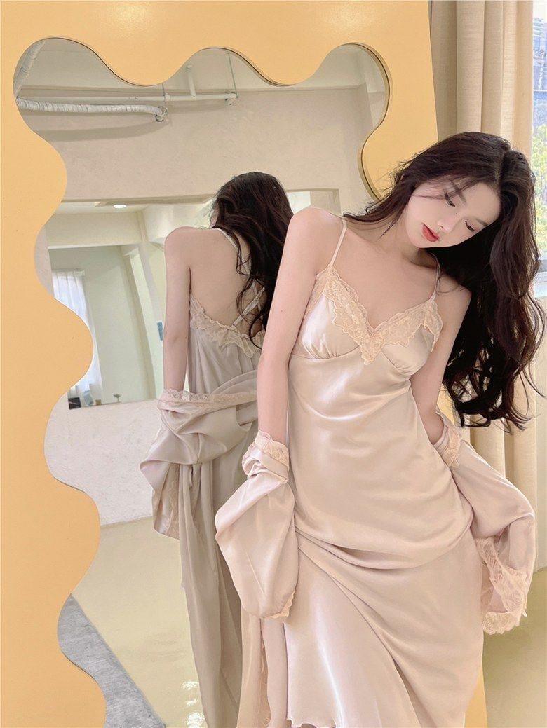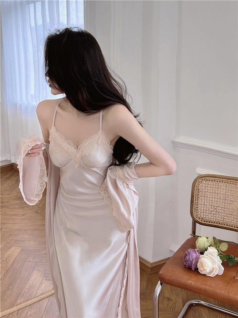 Pijamas Sexy de Tirantes para Mujer Verano 2022 Nuevo Seda de Hielo de Alta Gama Estilo Puro Lujuria Camisón con Almohadillas en el Busto Conjunto de Dos Piezas