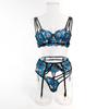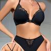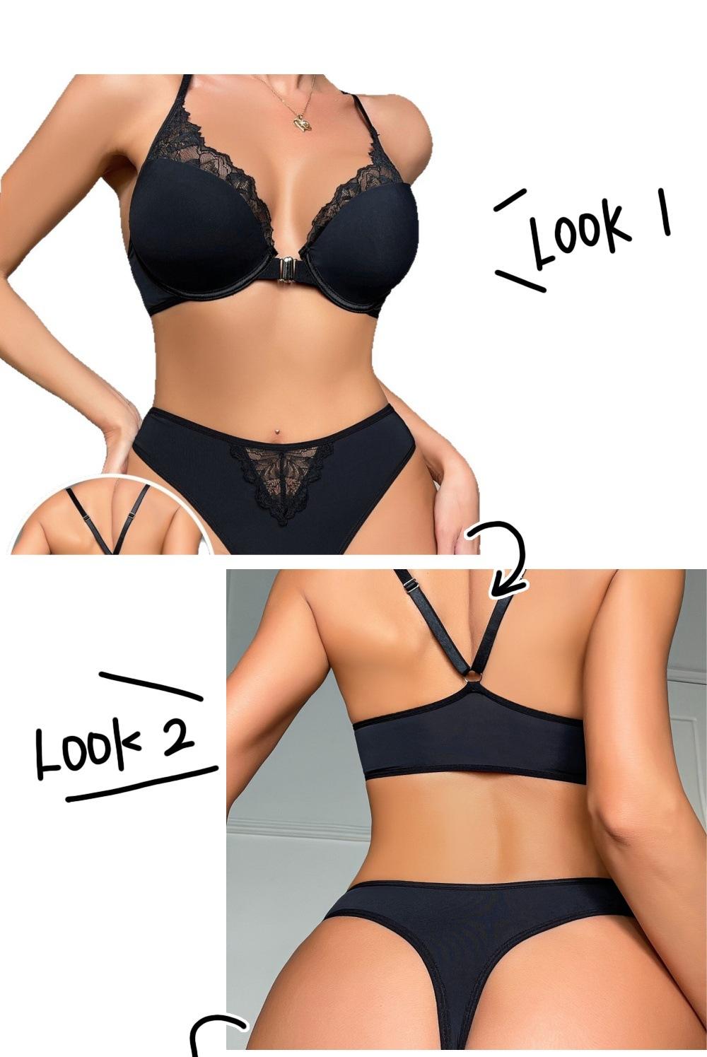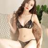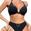 Amazon Transfronterizo Botón Delantero Negro Profundo V Sexy Conjunto de Lencería Encaje Sexy Conjunto de Lencería Estilo Tres Puntos