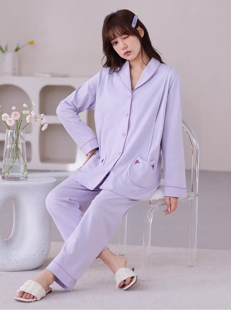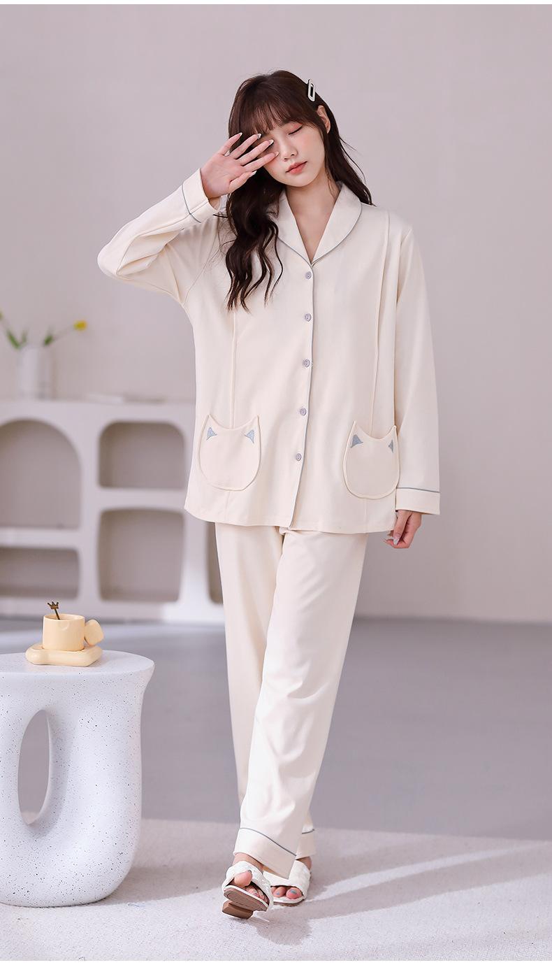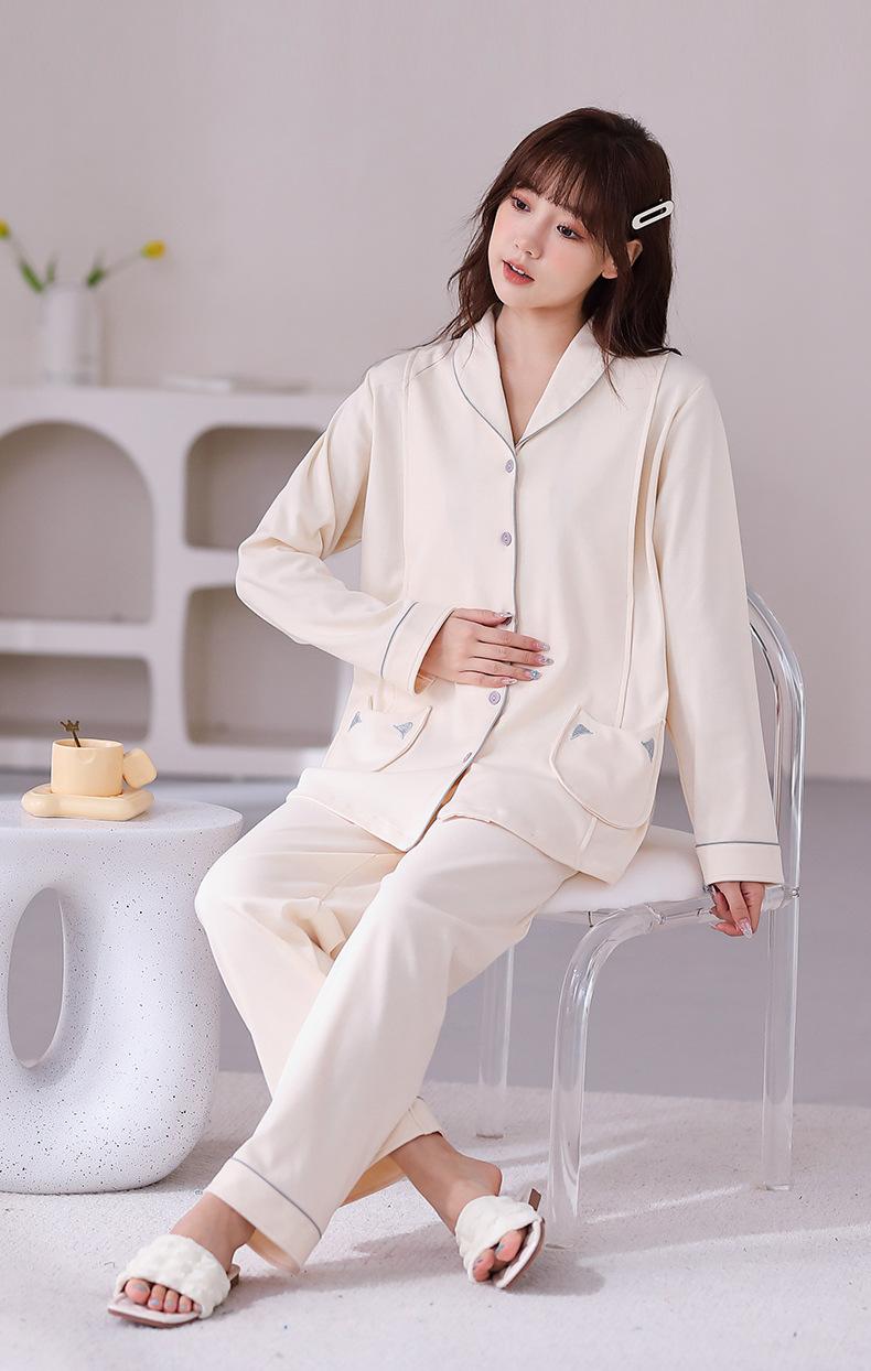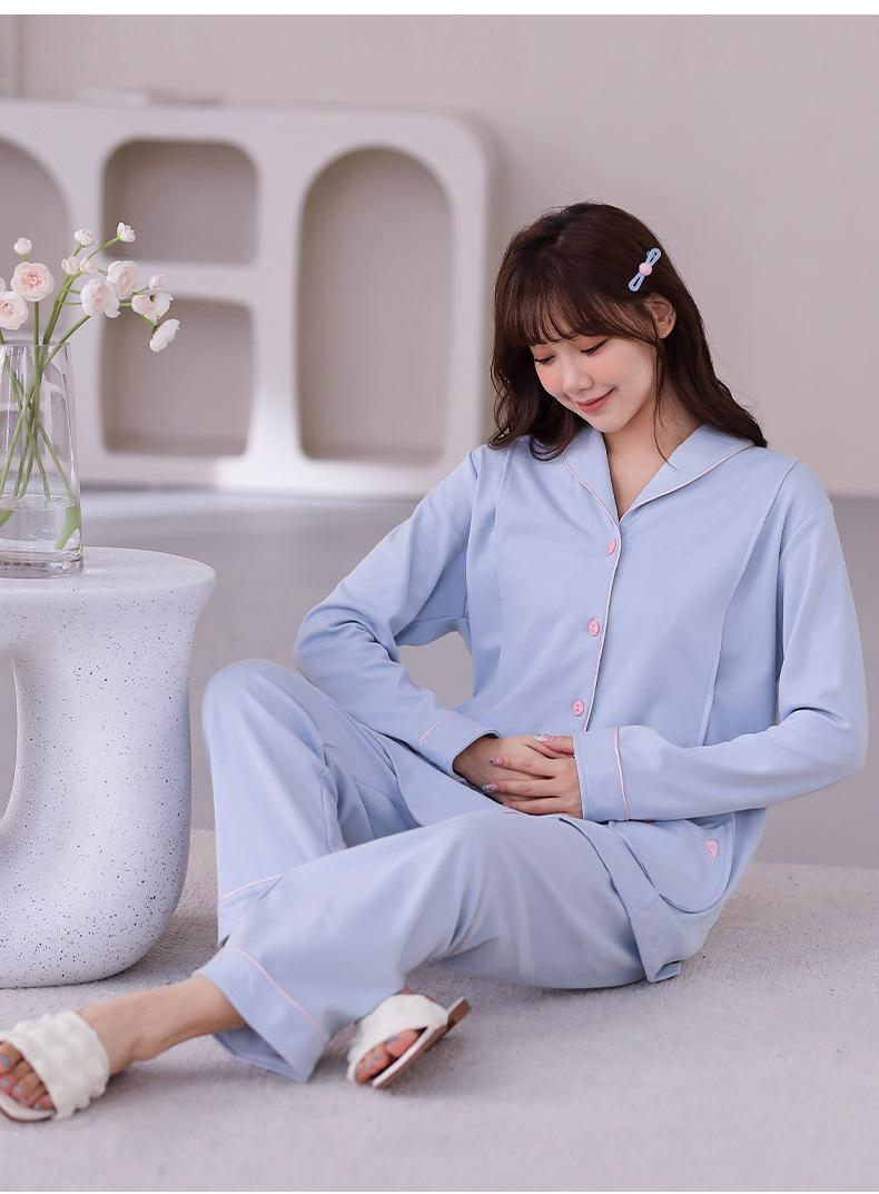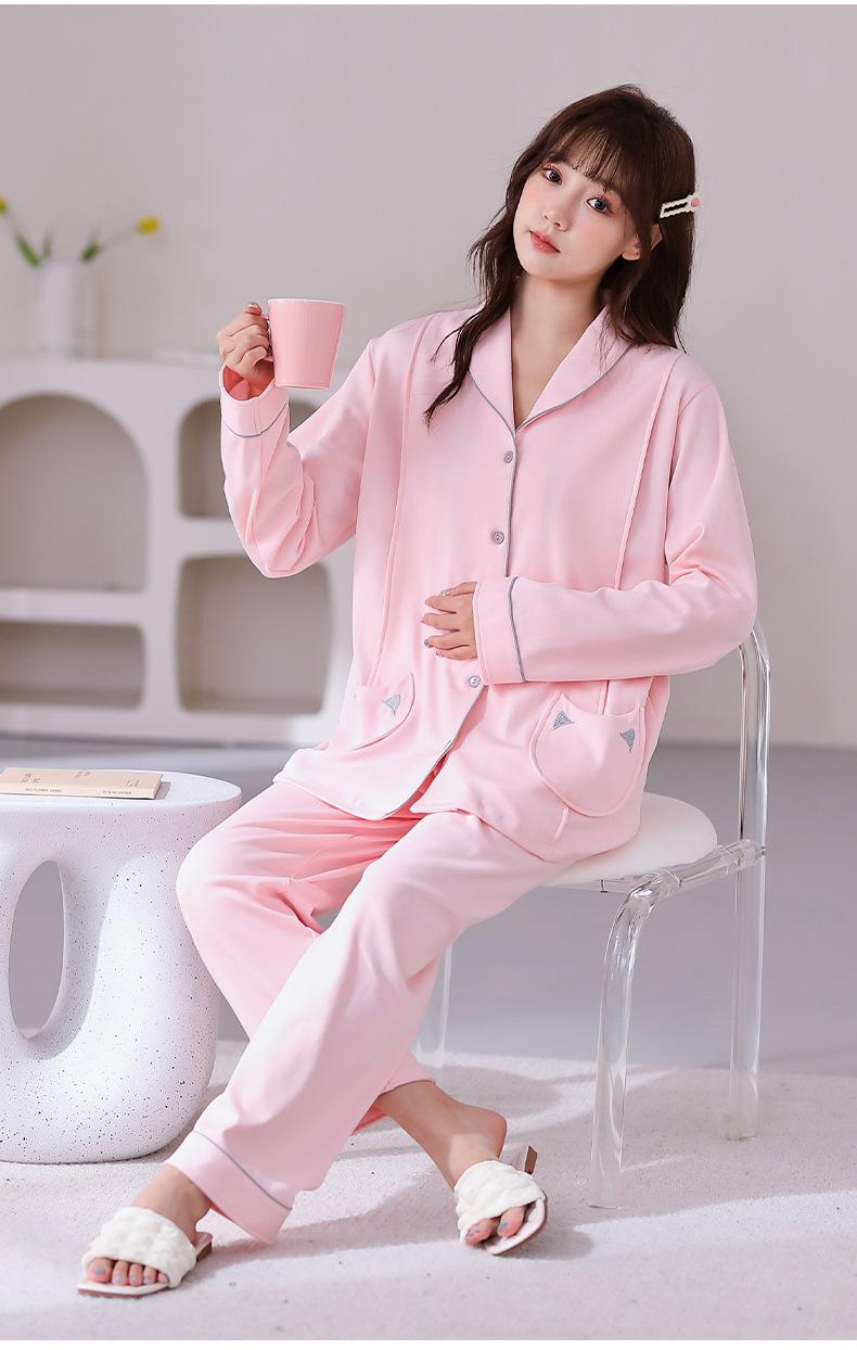 Ropa de Algodón Puro para Después del Parto Verano Delgada Pijama de Lactancia para Después del Parto Cárdigan Transpirable Pijama de Maternidad Lactancia Manga Larga Ropa para el Hogar