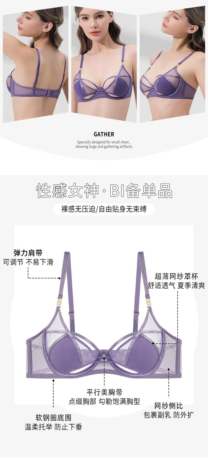 Estilo Francés Sexy Encaje Deseo Puro Ropa Interior Pecho Grande Poco Recogido Anticaída Delgado Transpirable Conjunto de Sostén