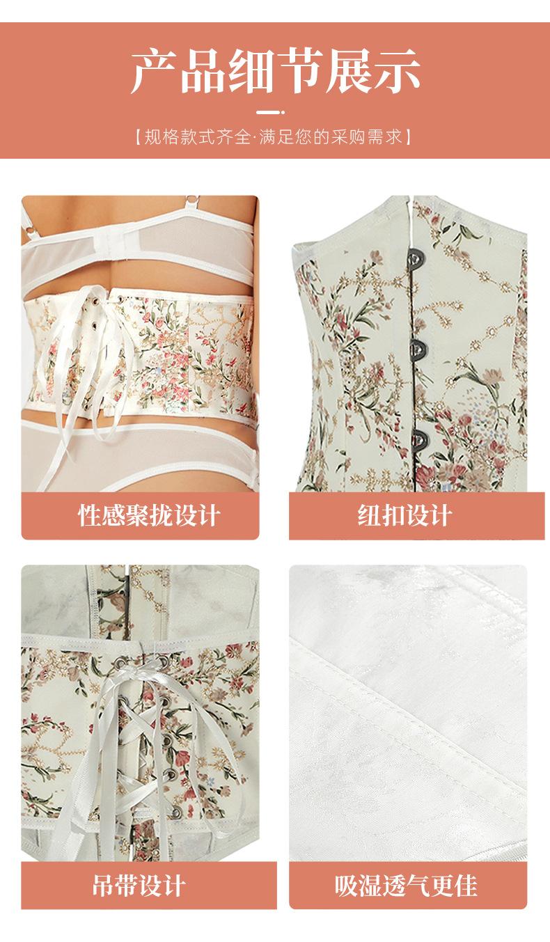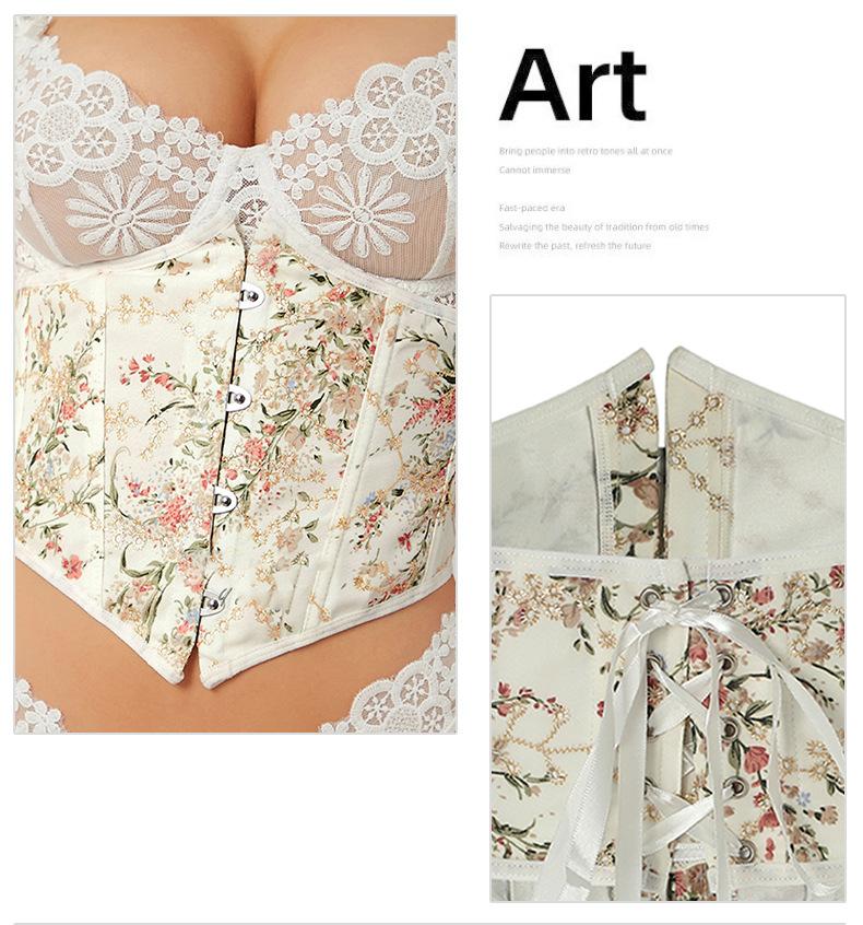 Corsé Corto Europeo y Americano Corsé Palacio Chaleco Faja Moldeadora Estampada Retro Cinturón Abdominal Correa Ajustada Faja para Mujer