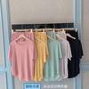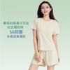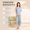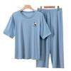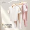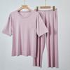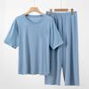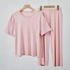 Pijama Modal para Mujer Verano Manga Corta Conjunto Ropa de Casa Pantalones Capri Seda de Hielo Color Puro Cuello Redondo Casual Traje Fresco