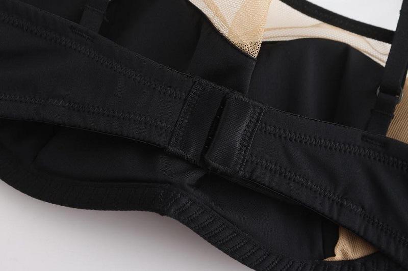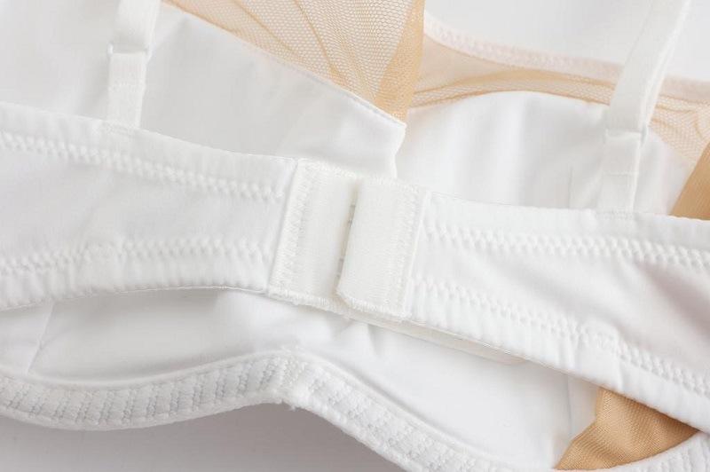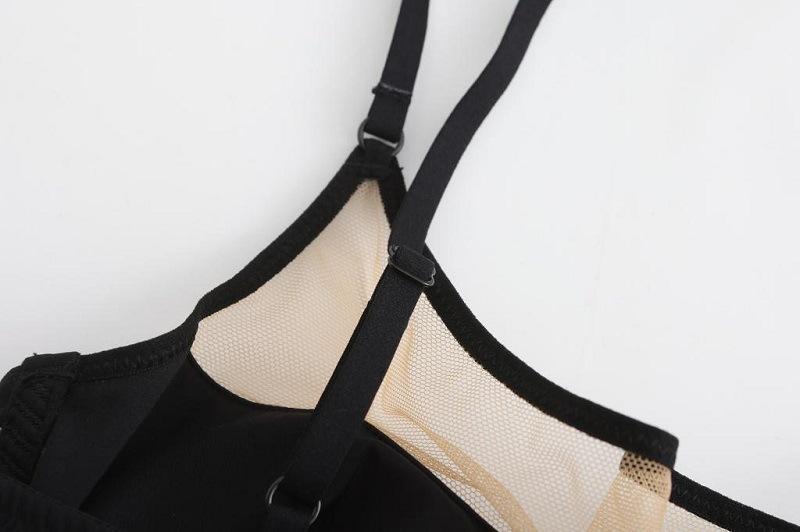 Hebilla de doble fila en la espalda, tirantes fijos y ajustables.