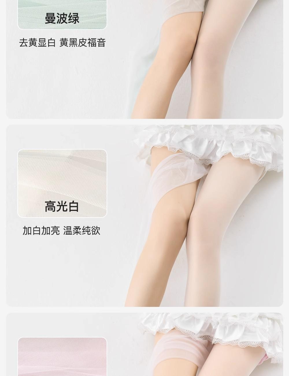 Mint green, Cherry blossom powder, Natural skin, Bare leg skin, Jet black, Fairy white