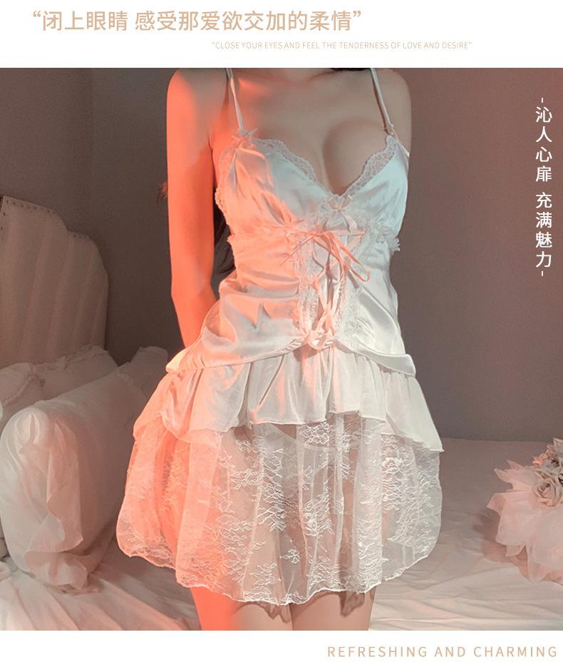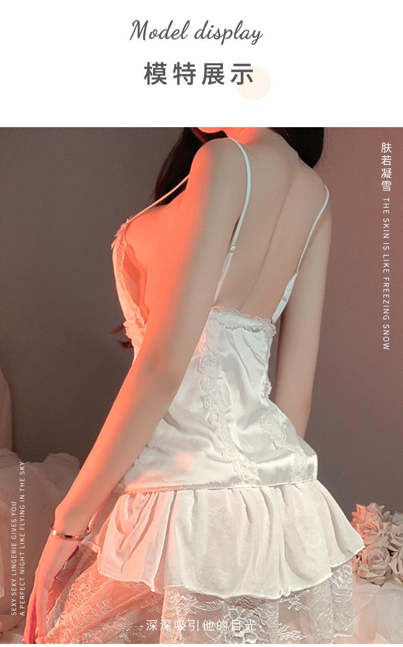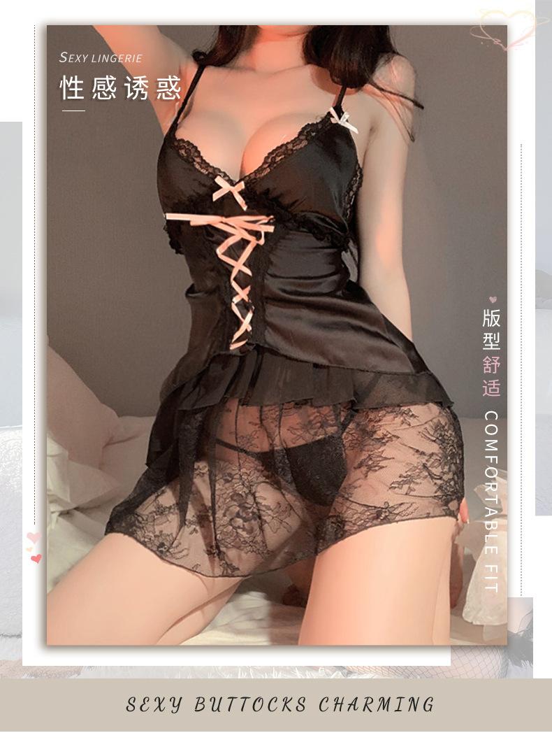 Lencería Sexy Estilo Pure Lust Encaje Transparente Camisón Corte Profundo en V Tentación Malla Recortada Pijama Lindo Camisón Sexy para Mujer