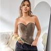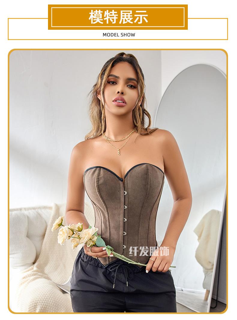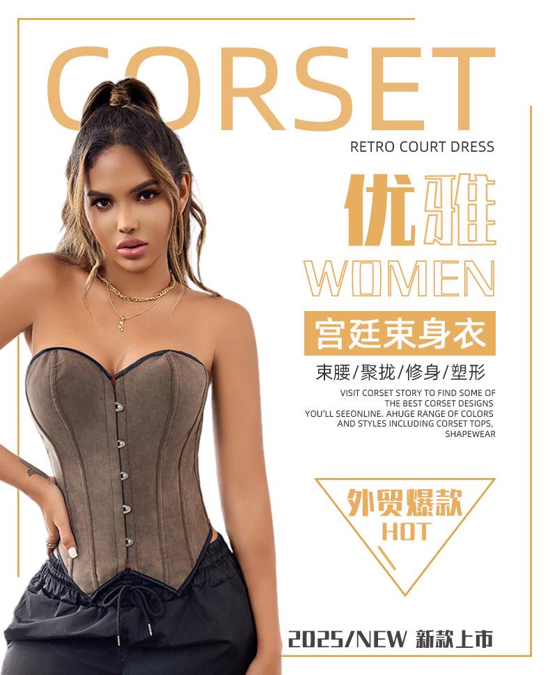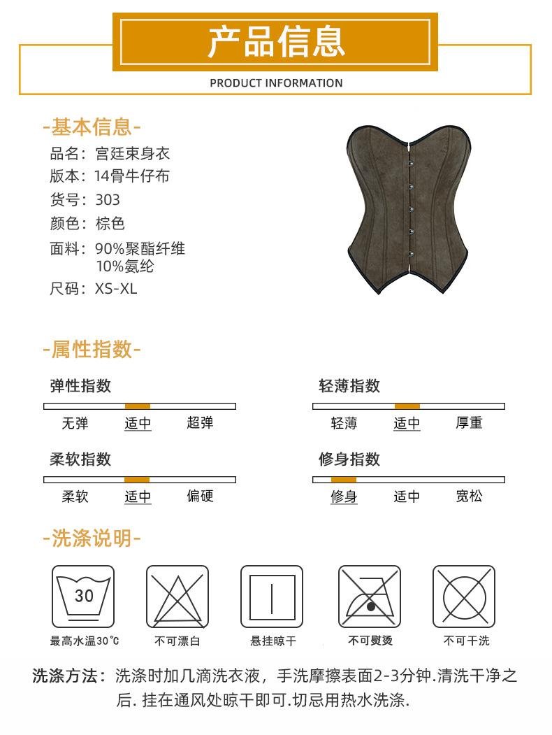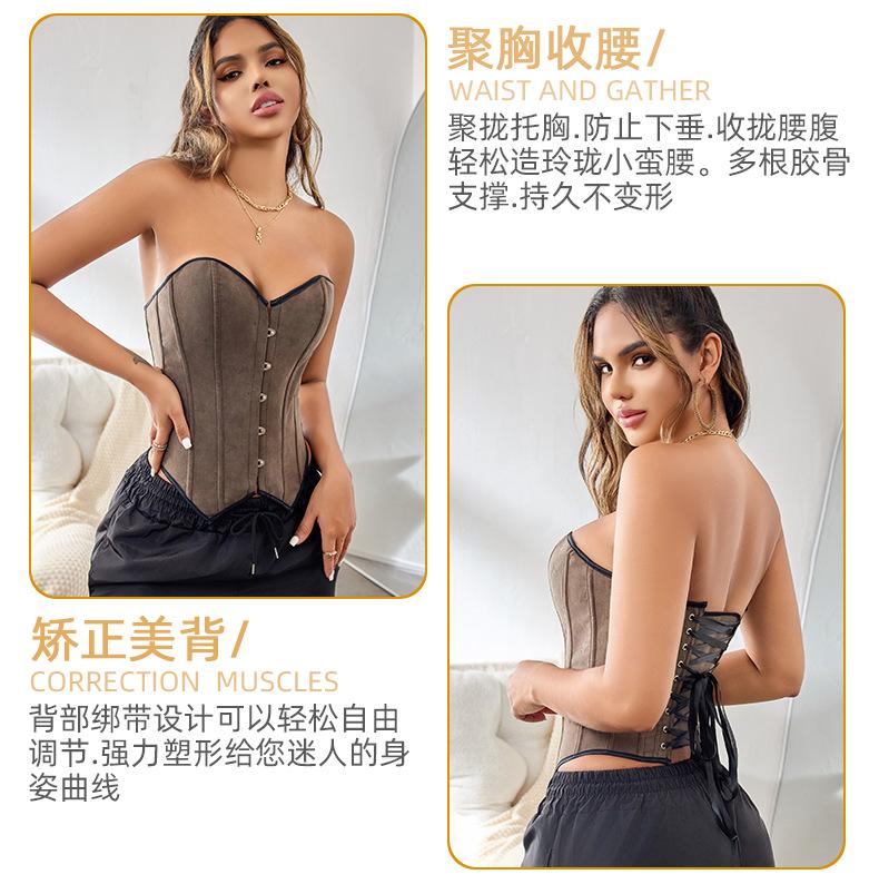 Corsé Gótico de Mezclilla Occidental Estilo Chica Salvaje Caliente Sin Encaje Moldeador Abdominal de Hueso de Plástico Top de Ballena