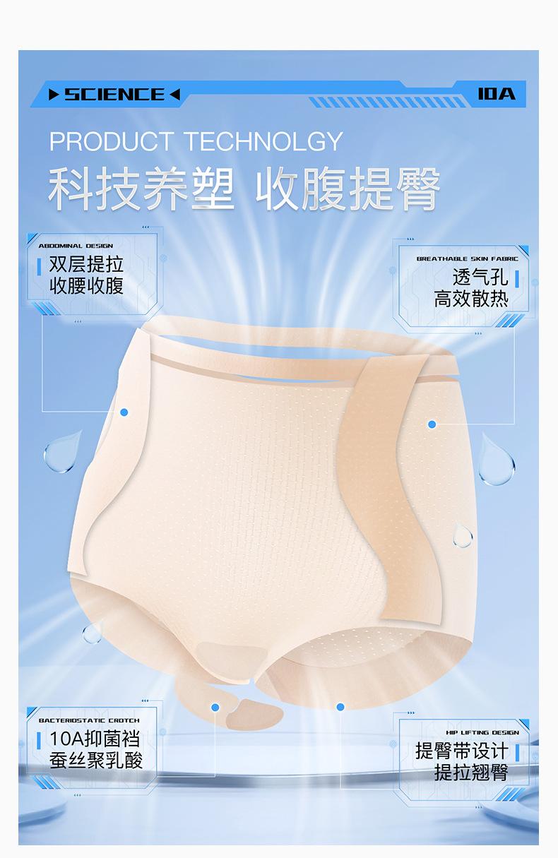 Pantalones Abdominales de Presión Ligera Hielo Sin Marcas Moldeadores de Vientre de Cintura Alta Naked Ropa Interior Moldeadora de Cintura y Cadera Antibacteriana 10A