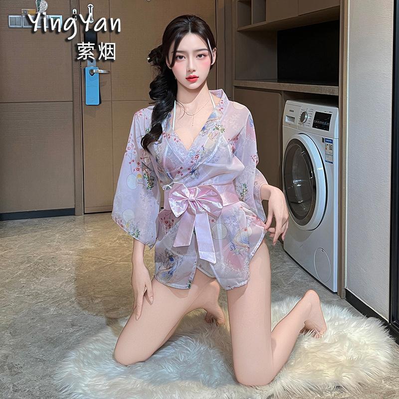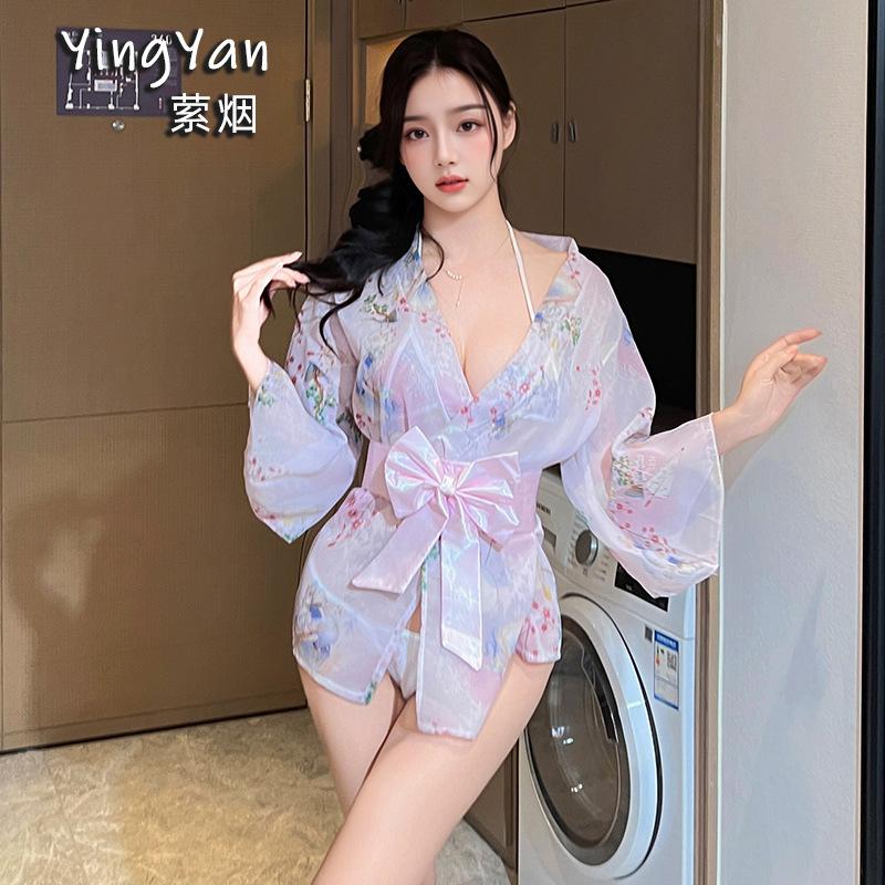 Conjunto Sexy de Lencería Kimono Bata Uniforme Tentación Estampado Lazo Japonés Pijama Japonés Sexy Nuevo Estilo