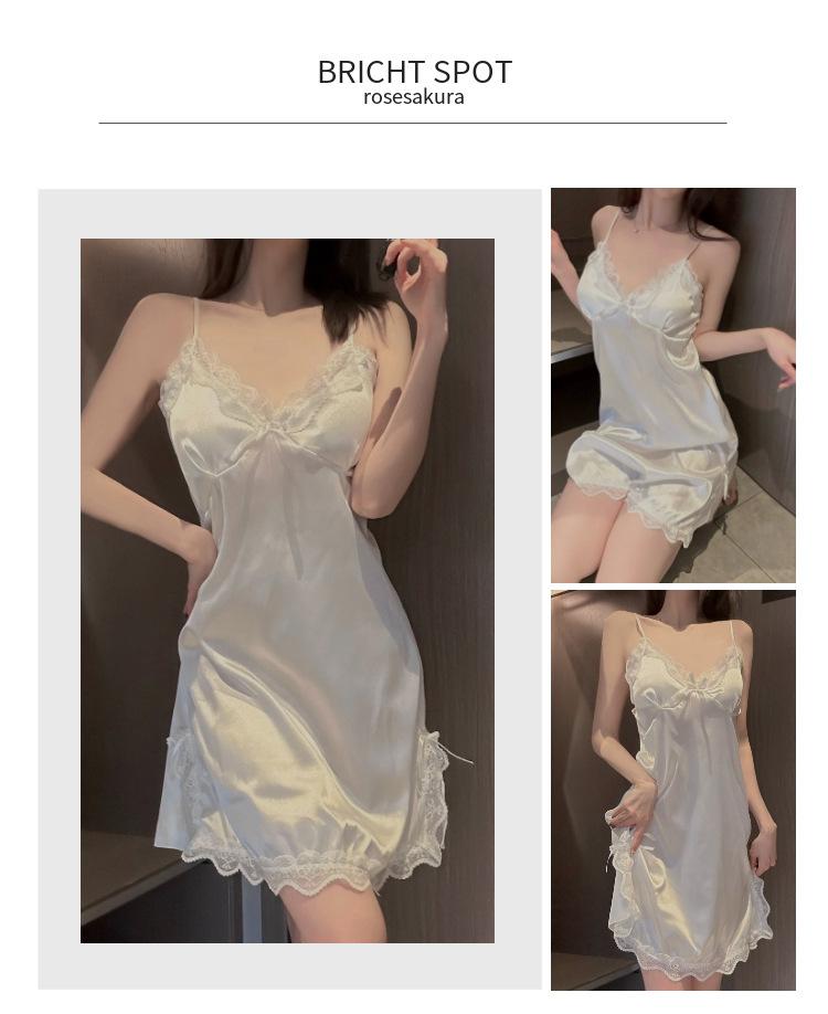 Camisón Sexy Tirantes Encaje Deseo Puro Verano Seda de Hielo Fino Sexy Caliente Camisón Sexy