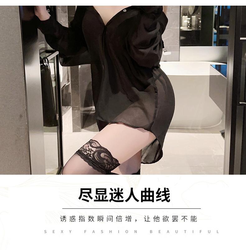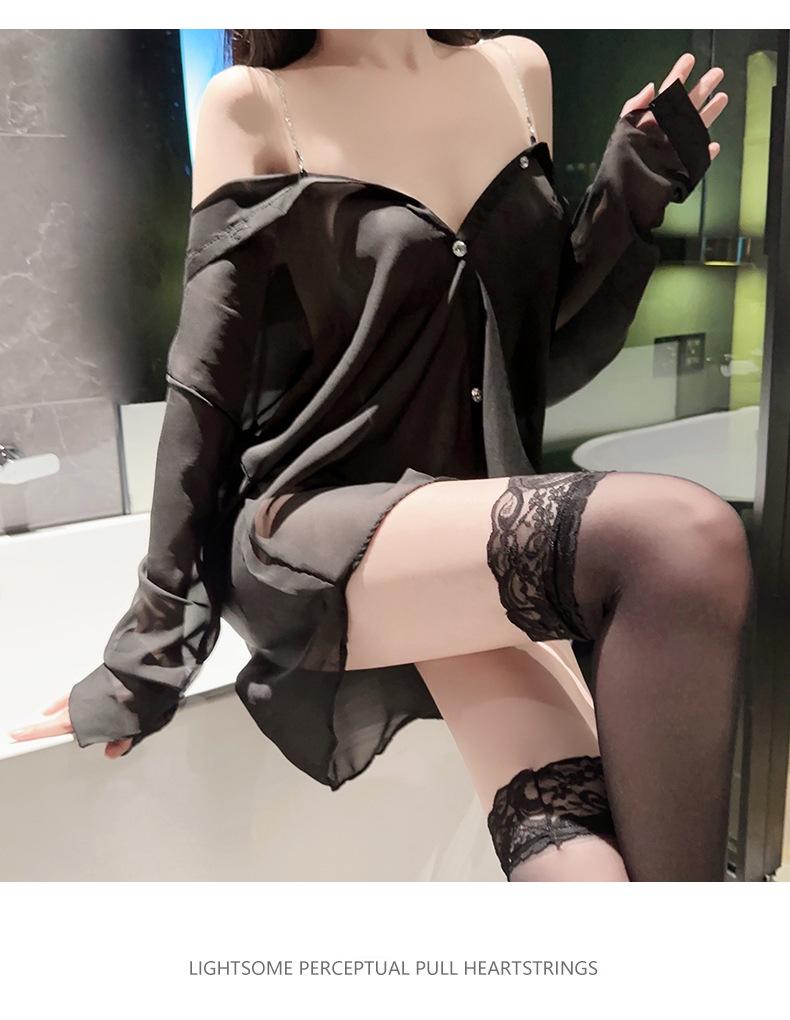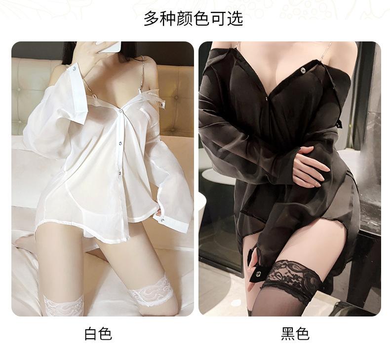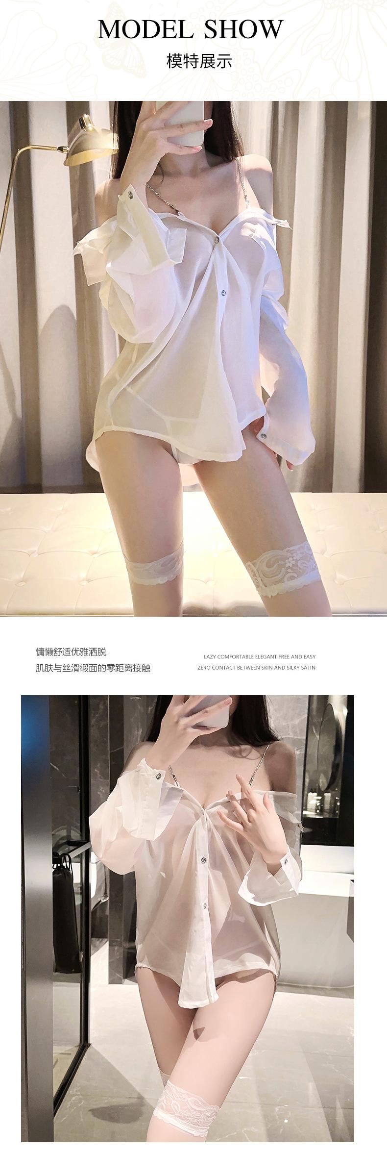 Compra Ropa interior sexy talla grande Vestido de tirantes de gasa para mujer Camisa blanca estilo novio Pijama de perspectiva en el hombro Traje de tentación al por mayor en Joom.pro