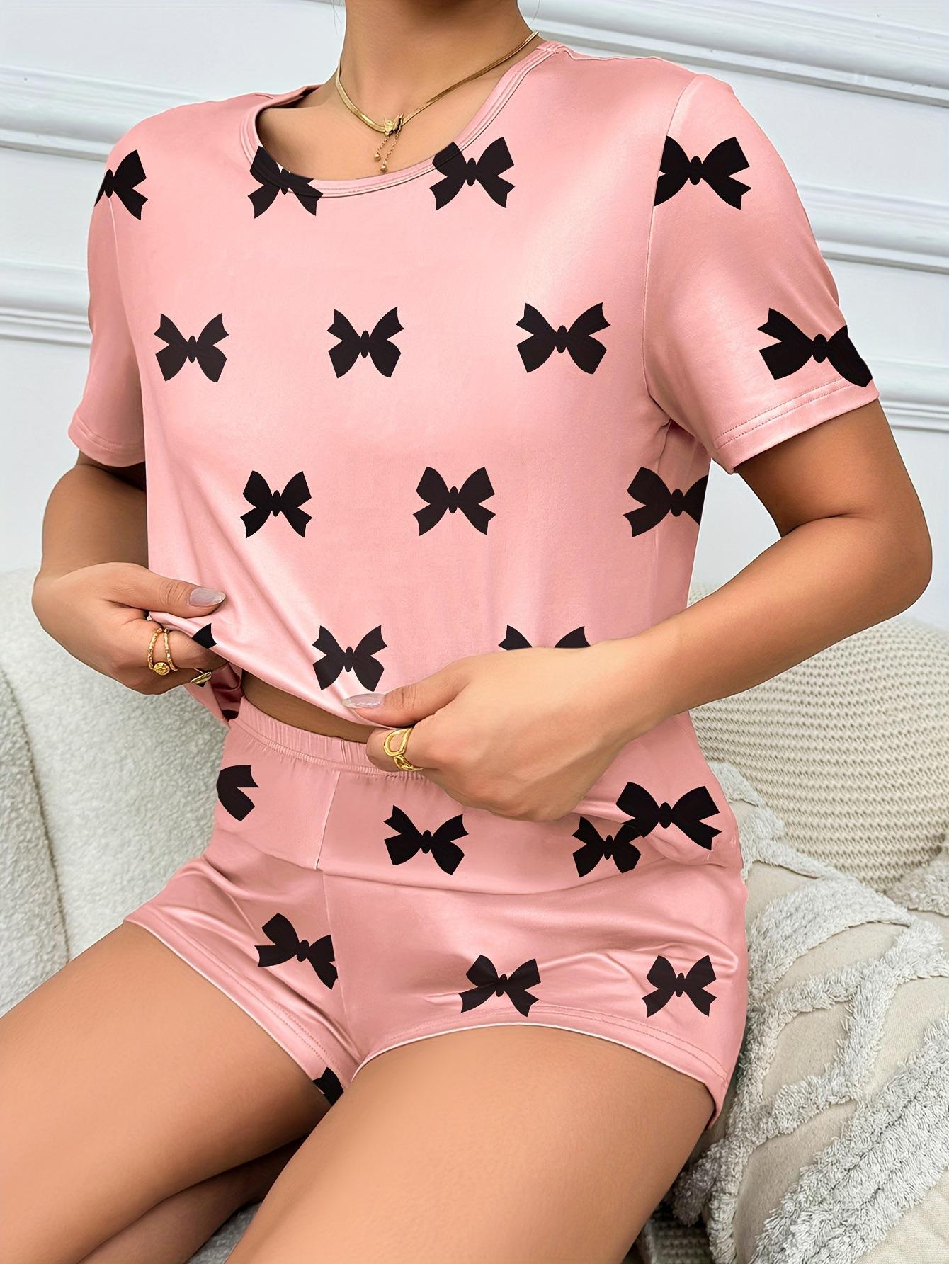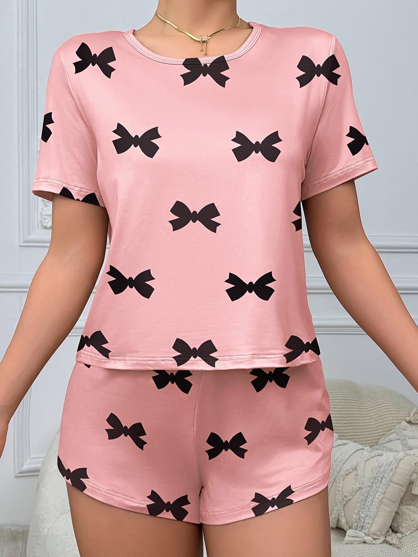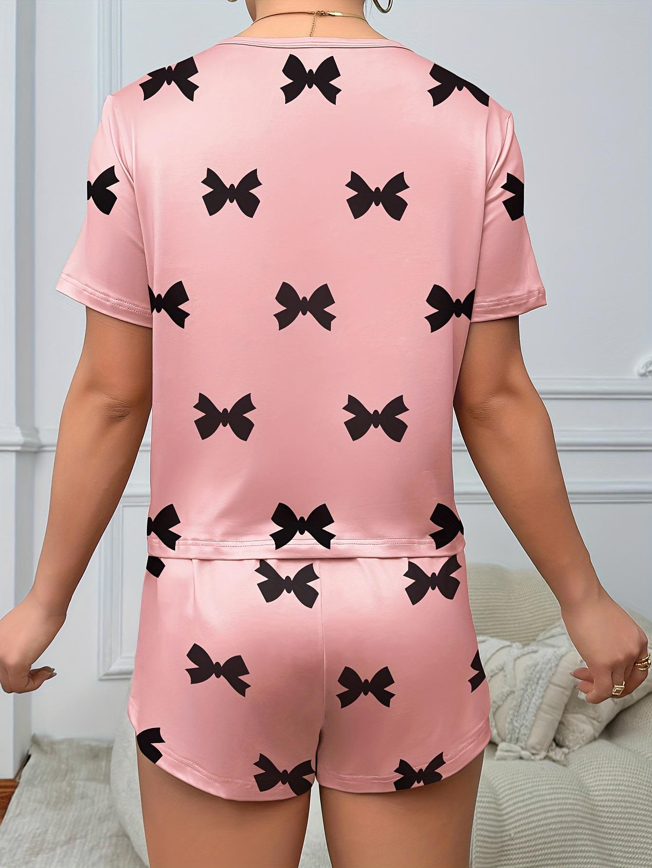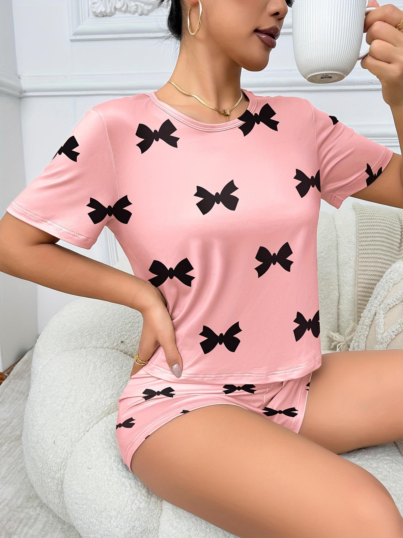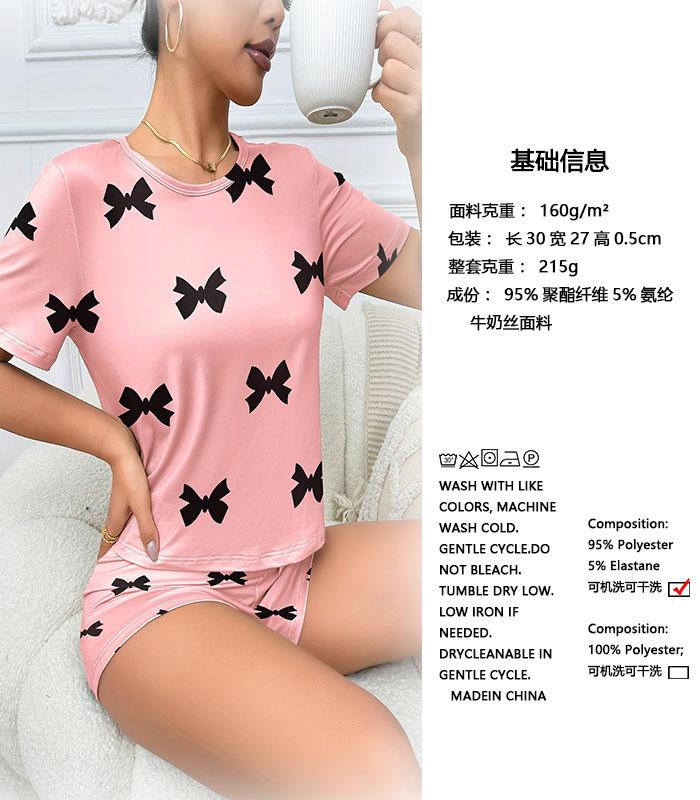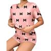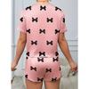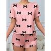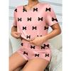 Comercio Exterior Transfronterizo Europeo y Americano Ropa de Casa Estampado de Lazo Manga Corta Shorts Dulce Casual Suelto Pijama de Dos Piezas para Mujer