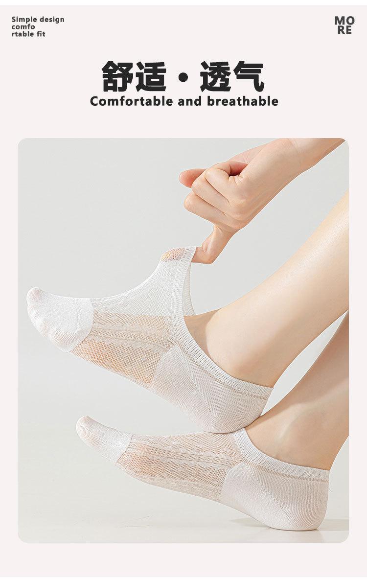 Calcetines de Barco Finos de Verano para Mujer con Seda de Morera, Silicona Antideslizante, Invisibles, Malla Transpirable Sin Costuras, Calcetines Invisibles