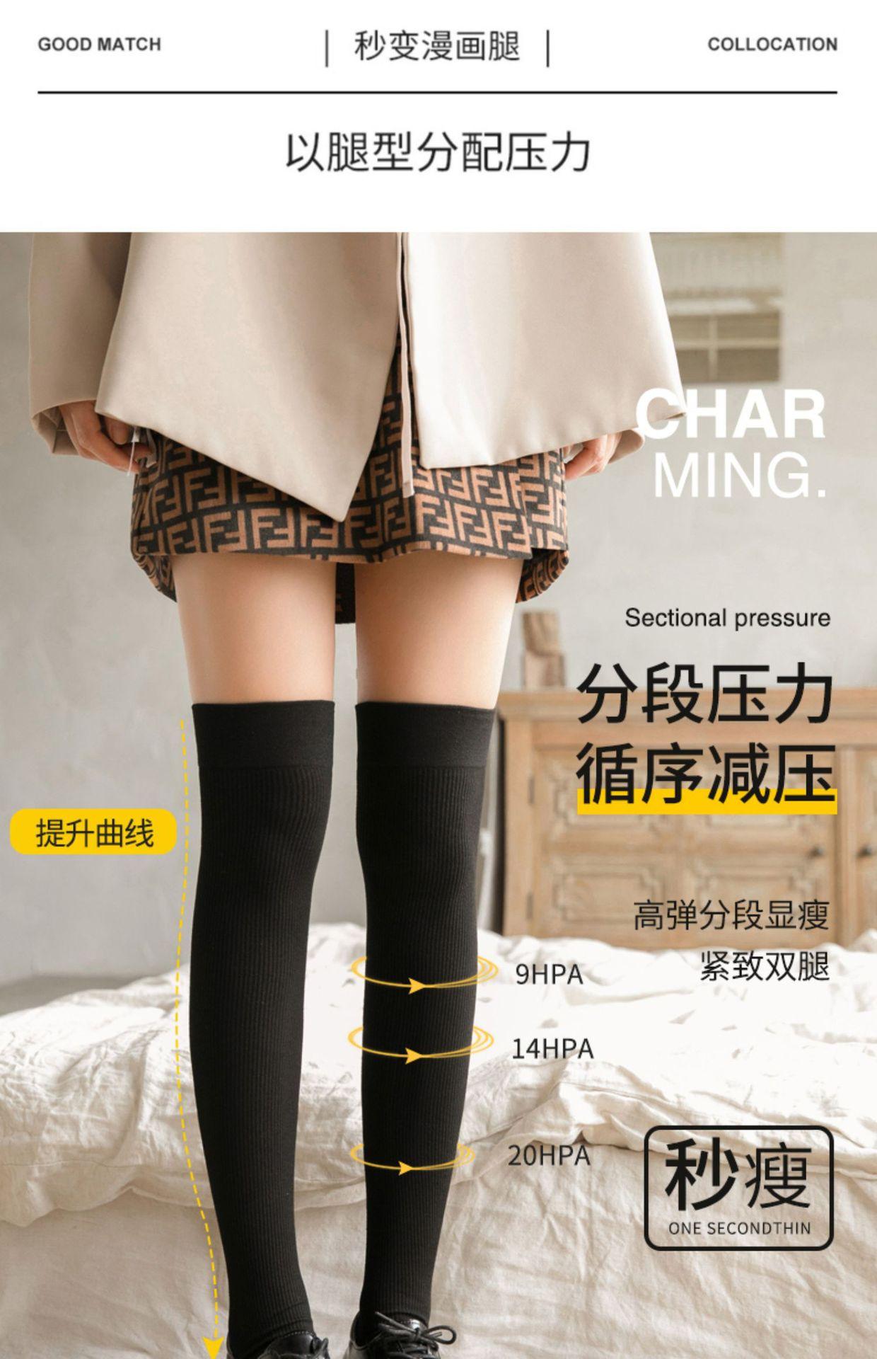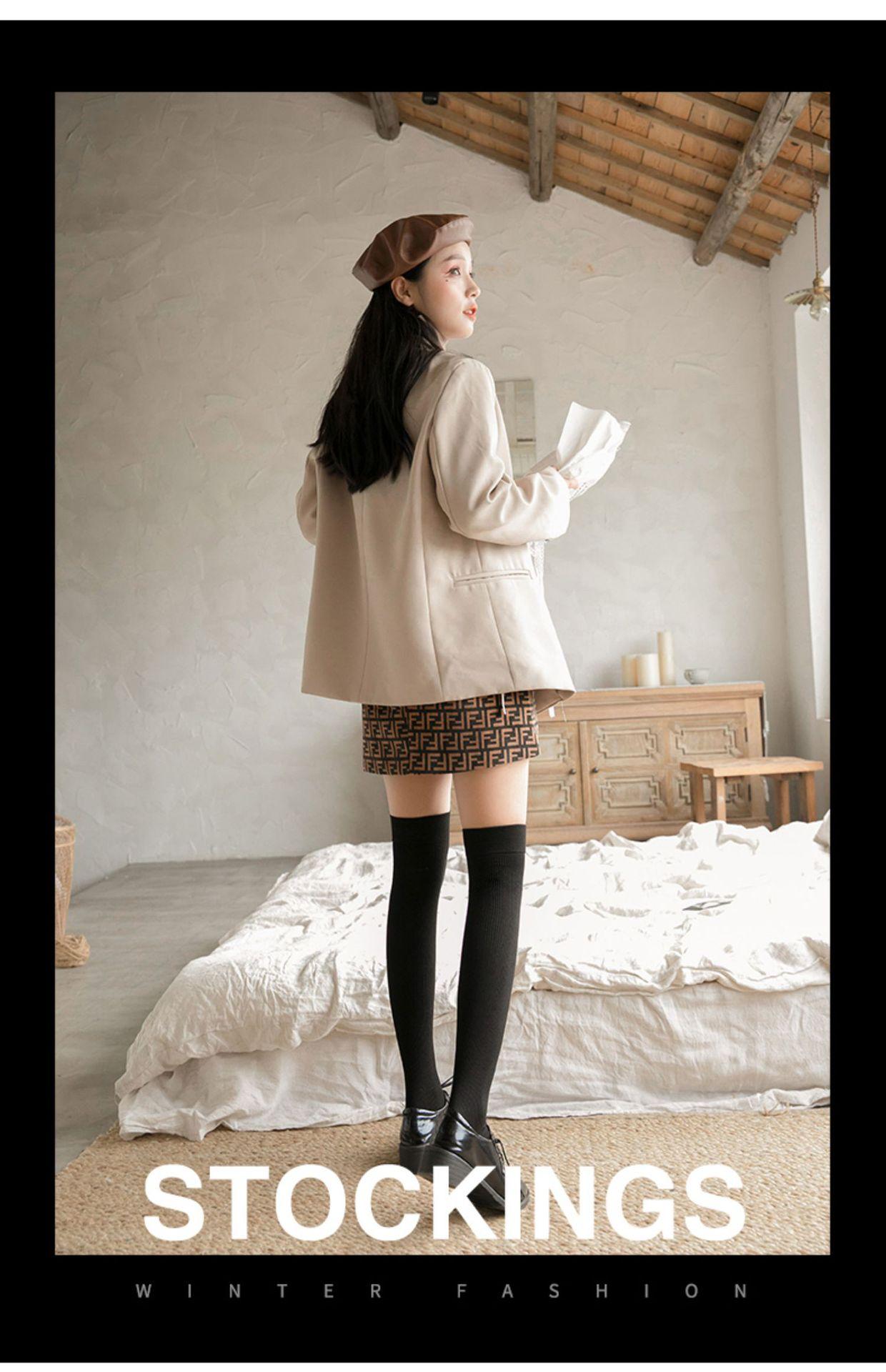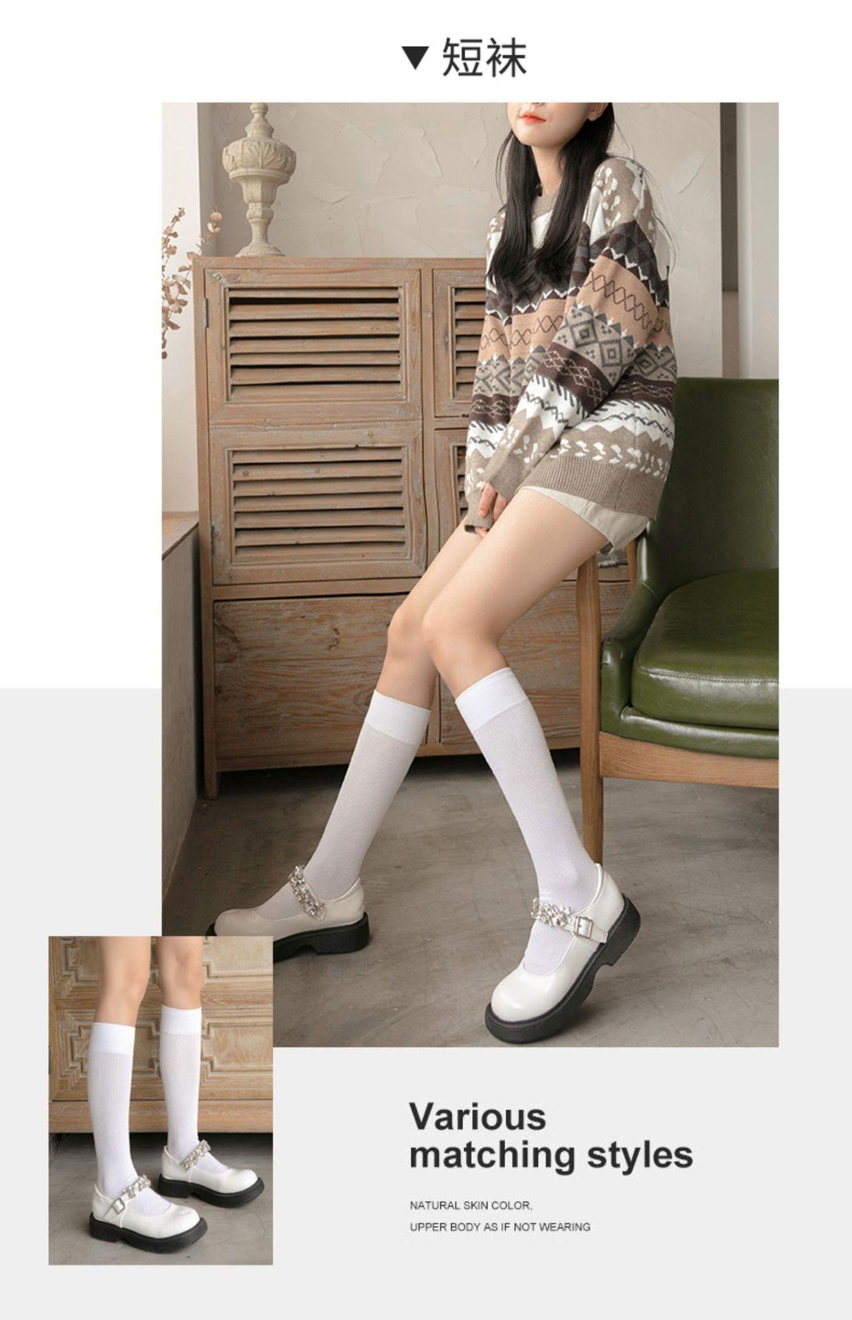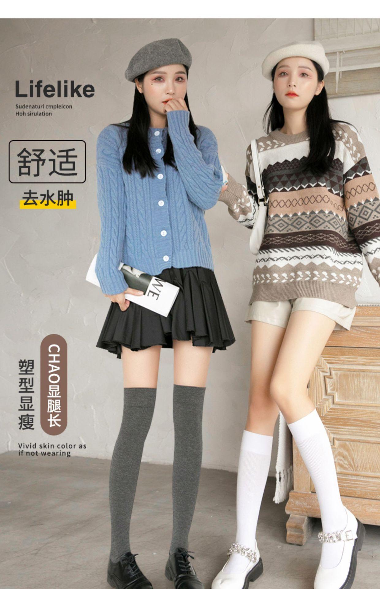 906 Calcetines de Bienestar para Pantorrilla para Mujer Primavera, Otoño e Invierno Calcetines Jk Hasta la Rodilla Calcetines Modernos de Media Caña Altos Negros de Presión Adelgazantes