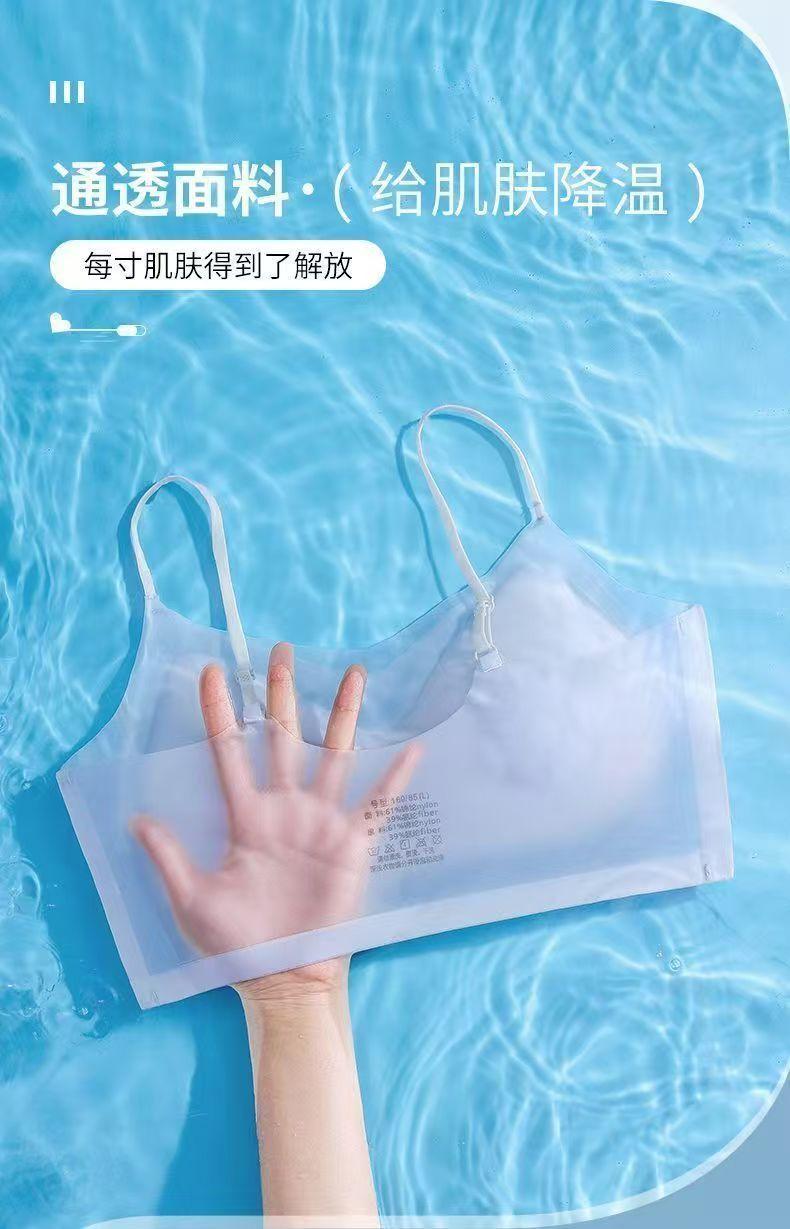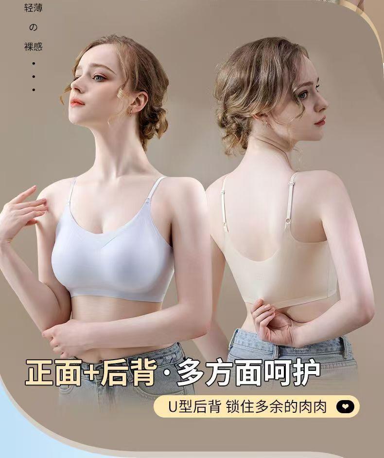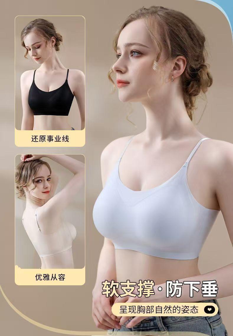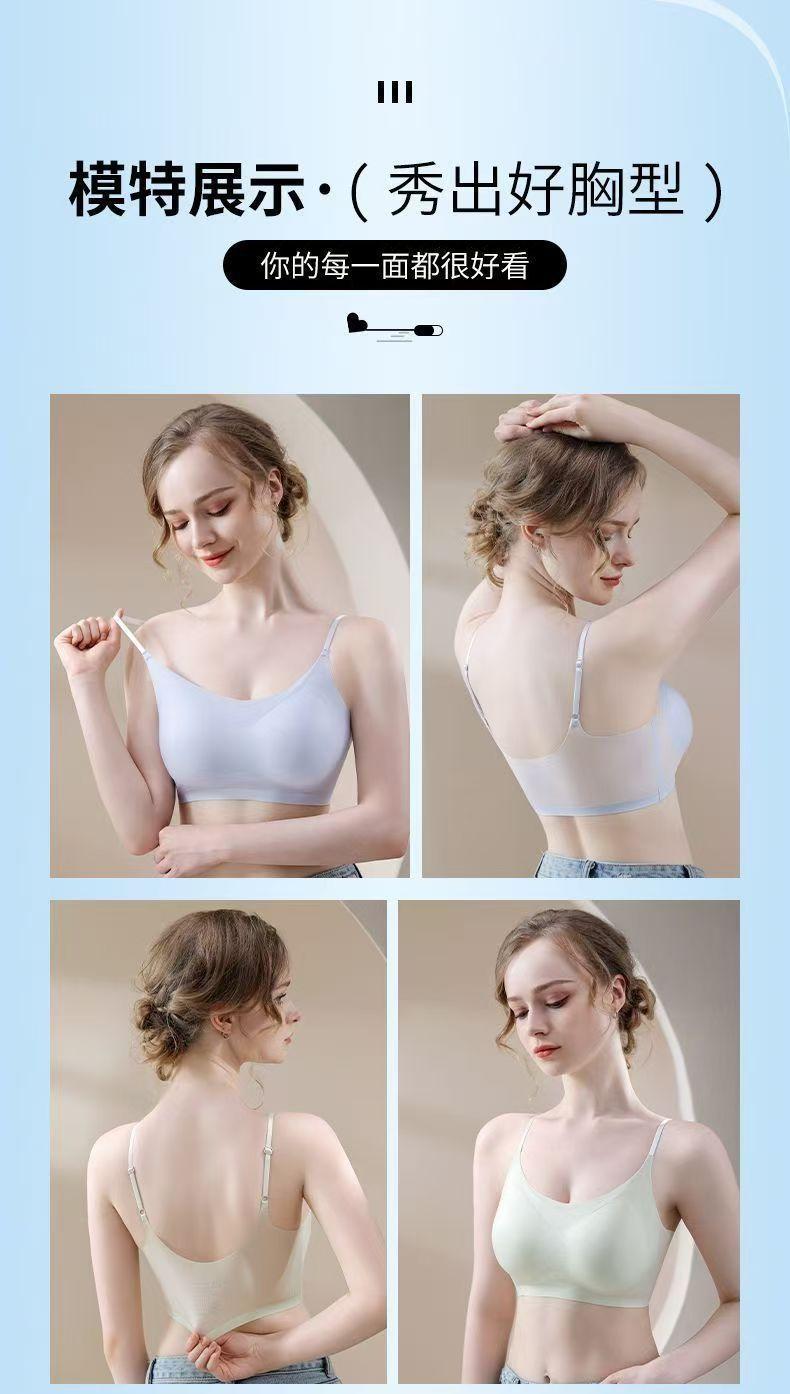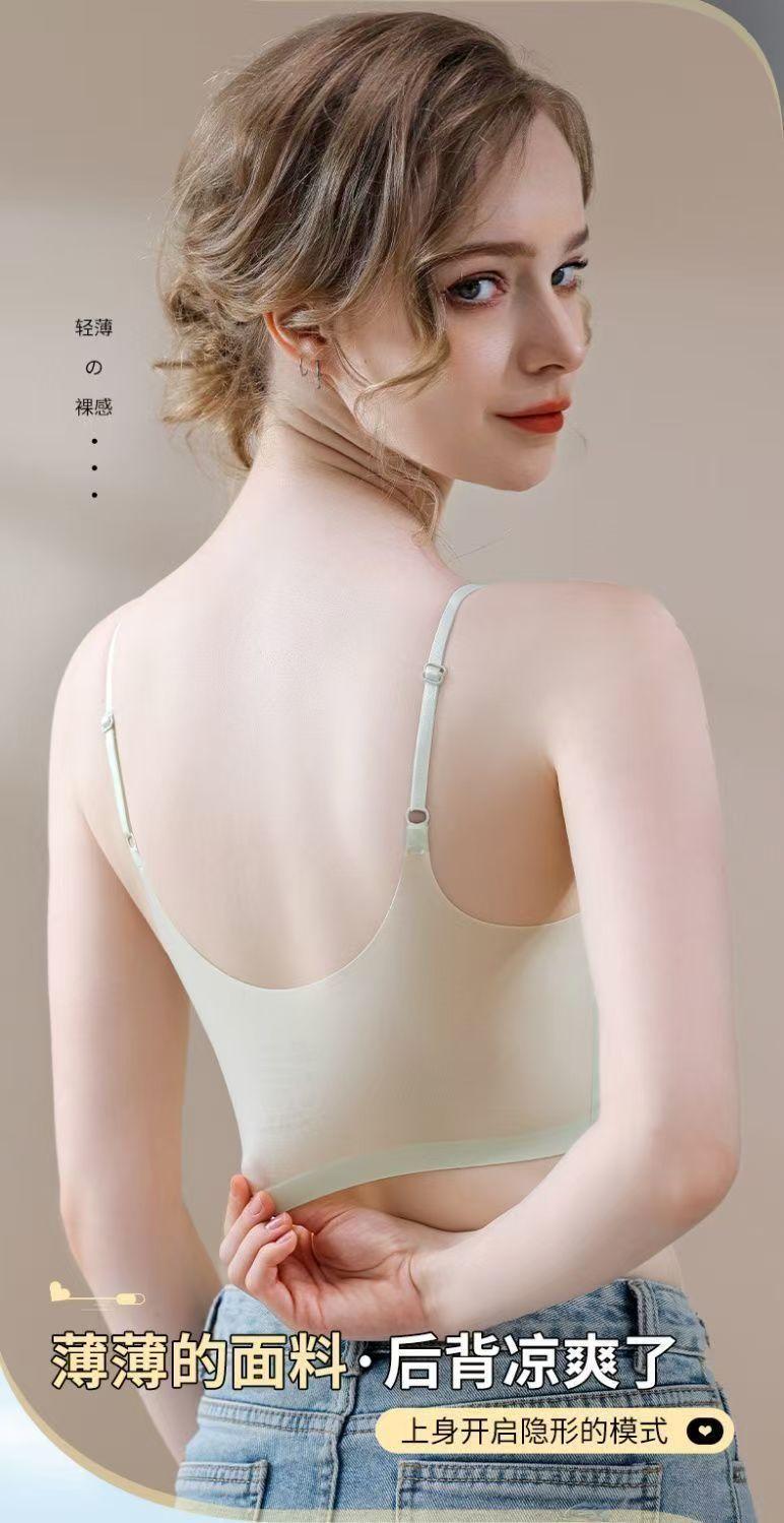 Verano Nuevo Estilo Seda de Hielo Hermoso Espalda Descubierta Sling Wrap Pecho Chaleco Sujetador para Mujer Push-Up Copa Fija Sin Costuras Sujetador para Dormir