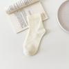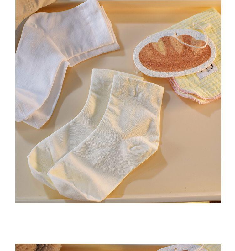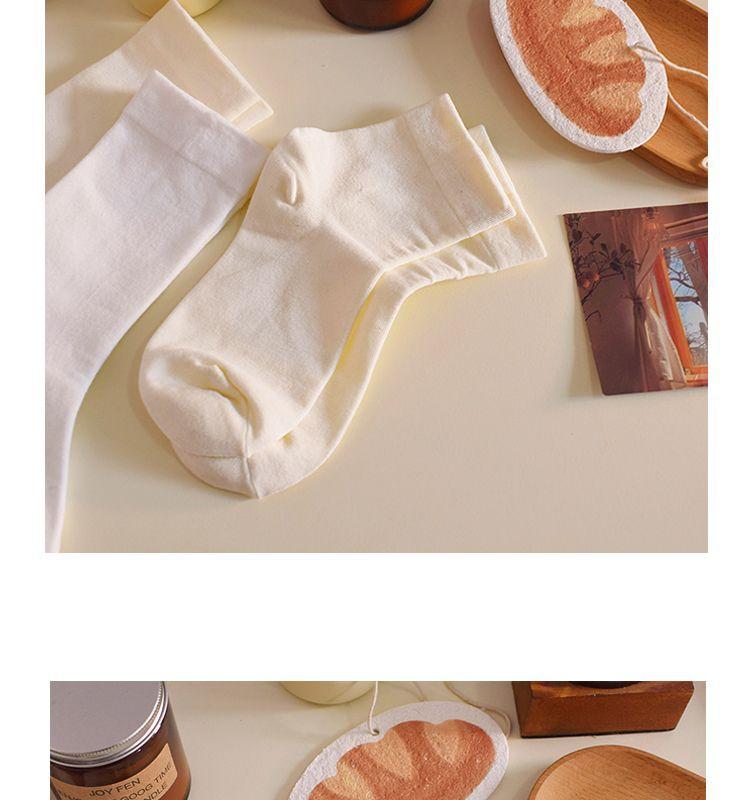 Calcetines Blancos Calcetines de Media Caña para Mujer Ins Modernos Versátiles Puros de Algodón Calcetines de Rizo Estilo Japonés Color Puro Sencillos Medias Estilo Preppy