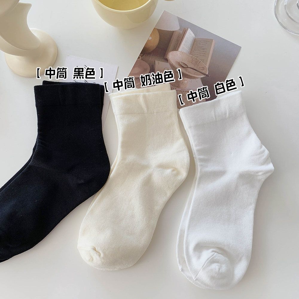 Black mid-calf socks, White mid-calf socks, Cream white mid-calf socks, White high socks, Black high socks, Cr...