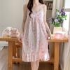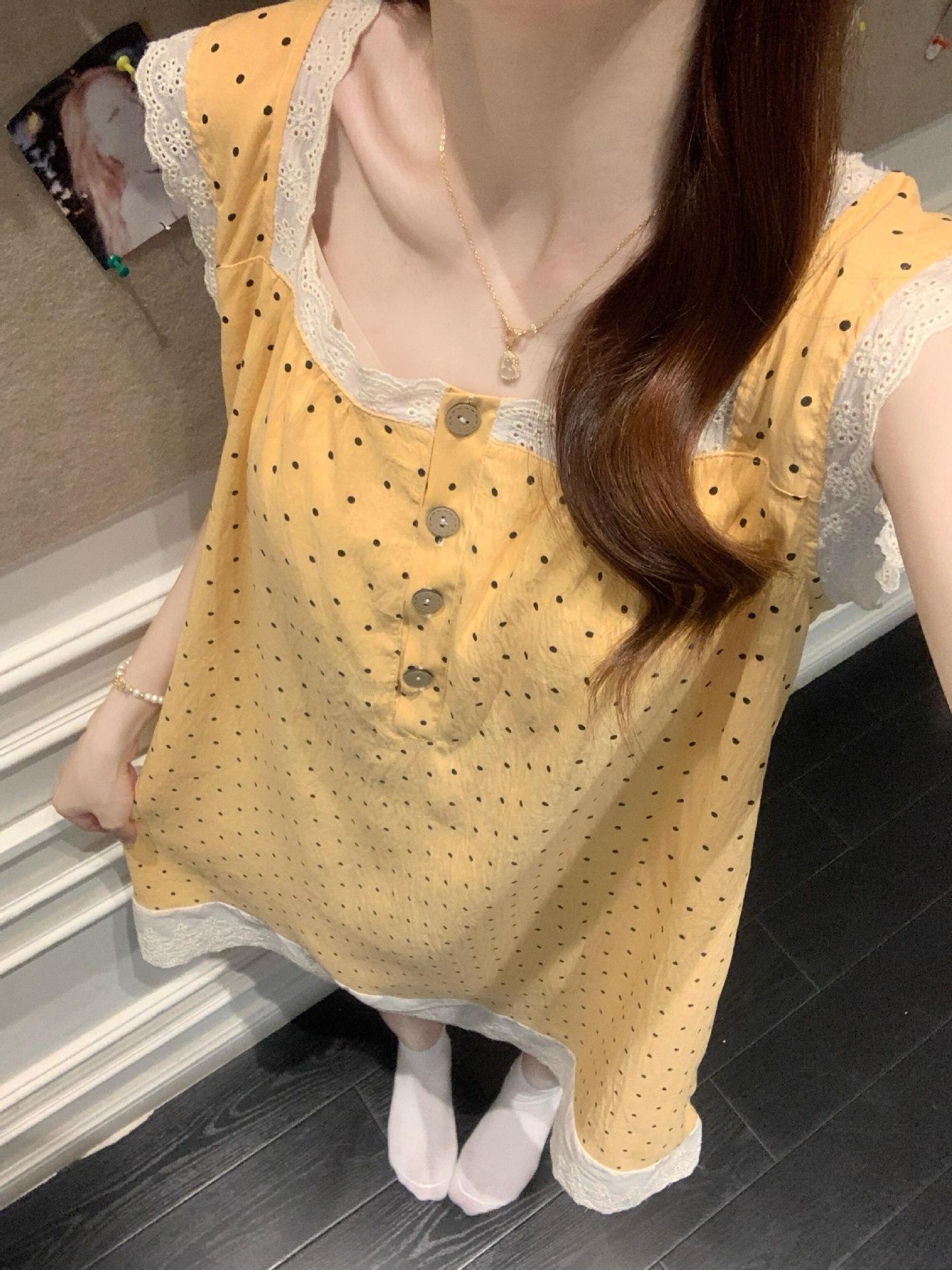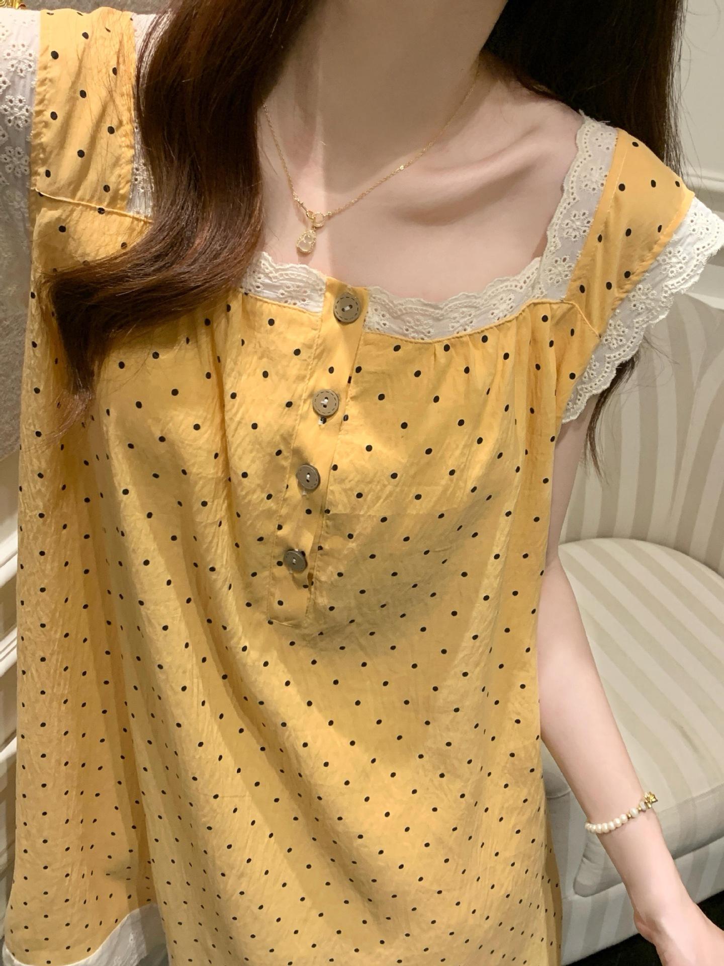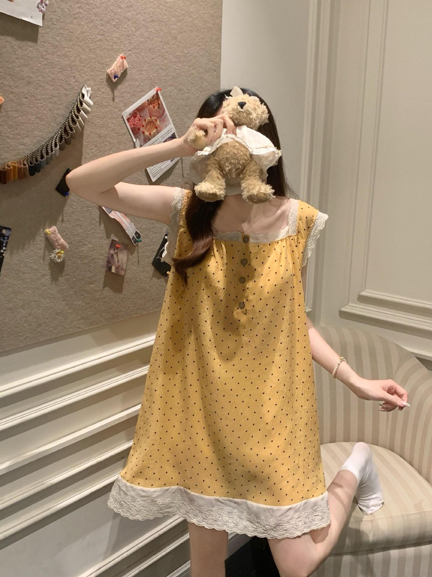 Camisola de Verano con Almohadillas para el Busto, Estilo Coreano Dulce Encaje Algodón Nube Estilo Princesa Pijama, Ropa para el Hogar y para Exterior