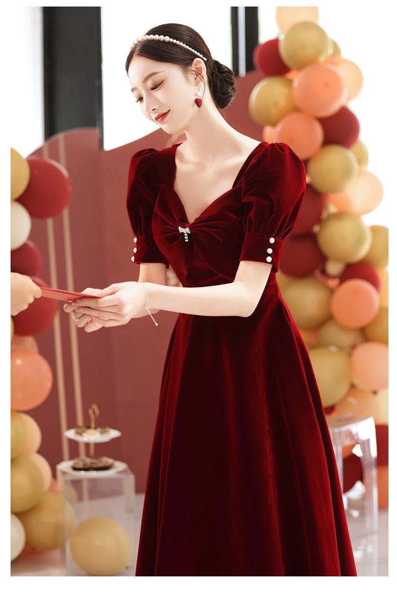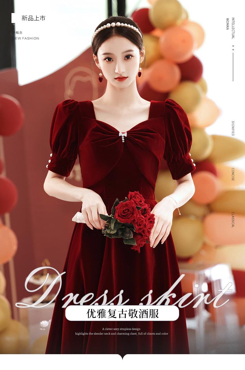 Vestido de Terciopelo para Brindis para Novia 2025 Nuevo Otoño Recepción de Boda Compromiso Uso Diario Vestido de Noche para Mujeres