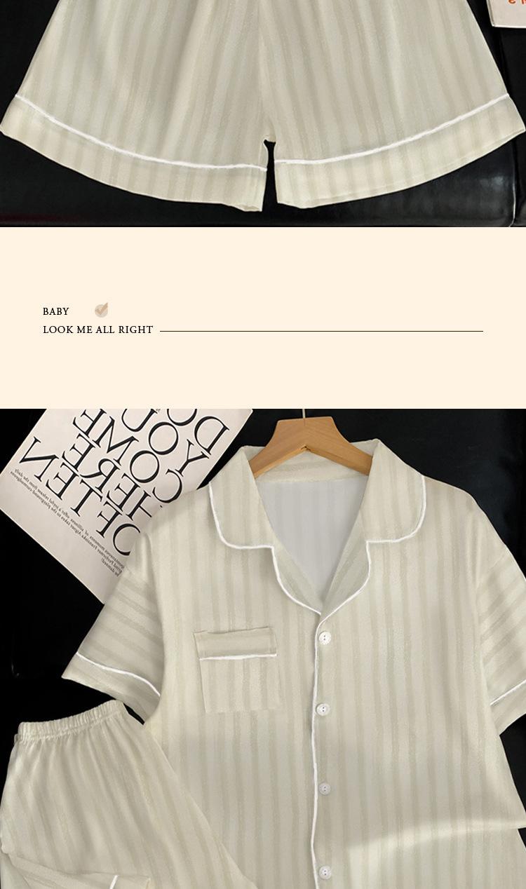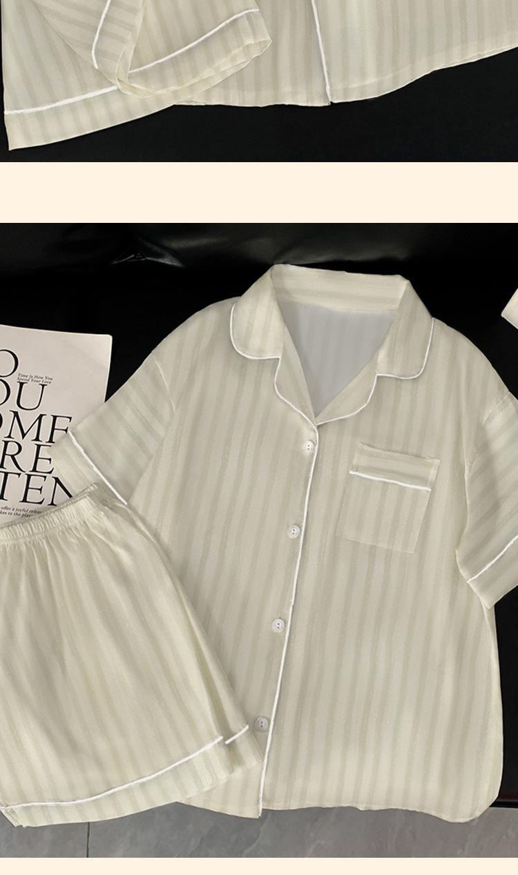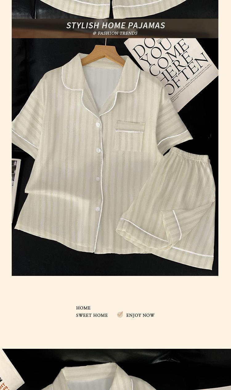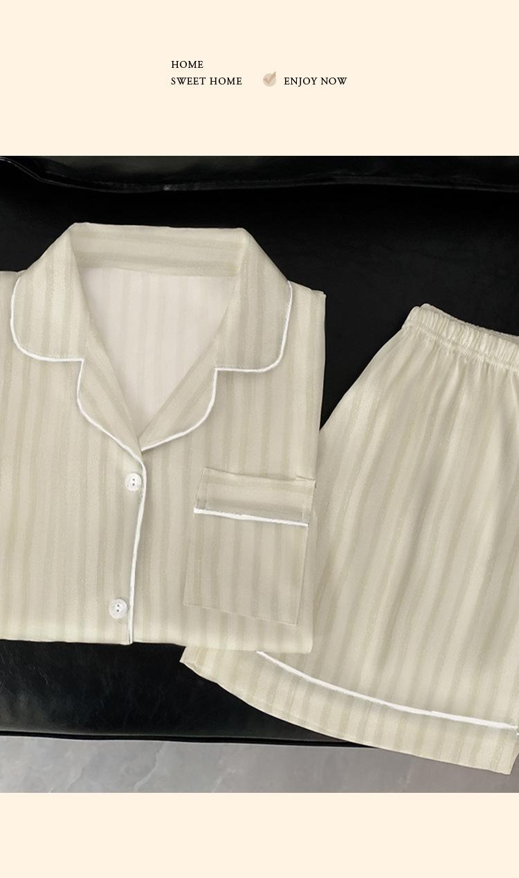 Pijama de Verano de Manga Corta para Mujer Sencillo a Rayas de Alta Calidad Satén Seda de Hielo Ropa de Exterior Traje para el Hogar Venta al por Mayor