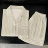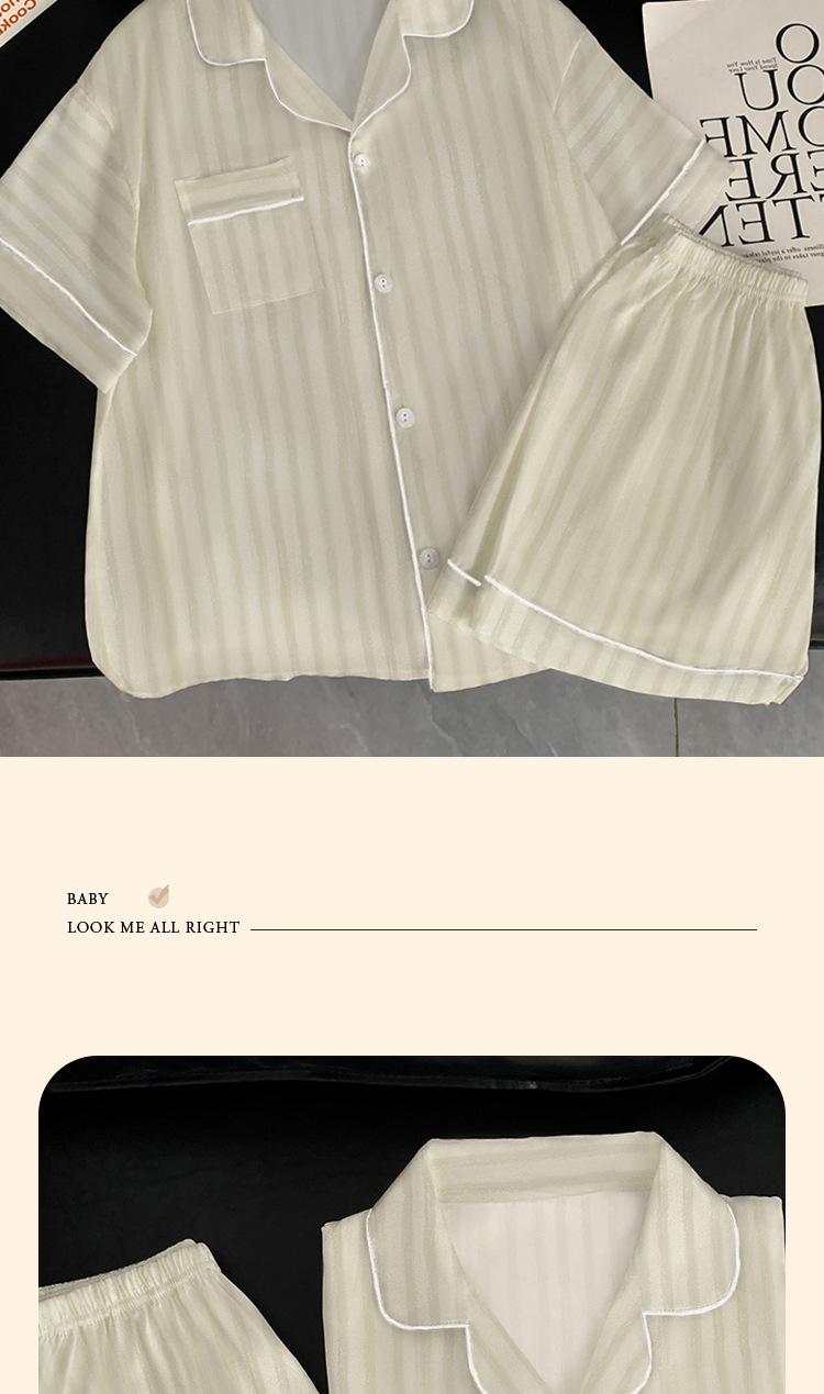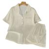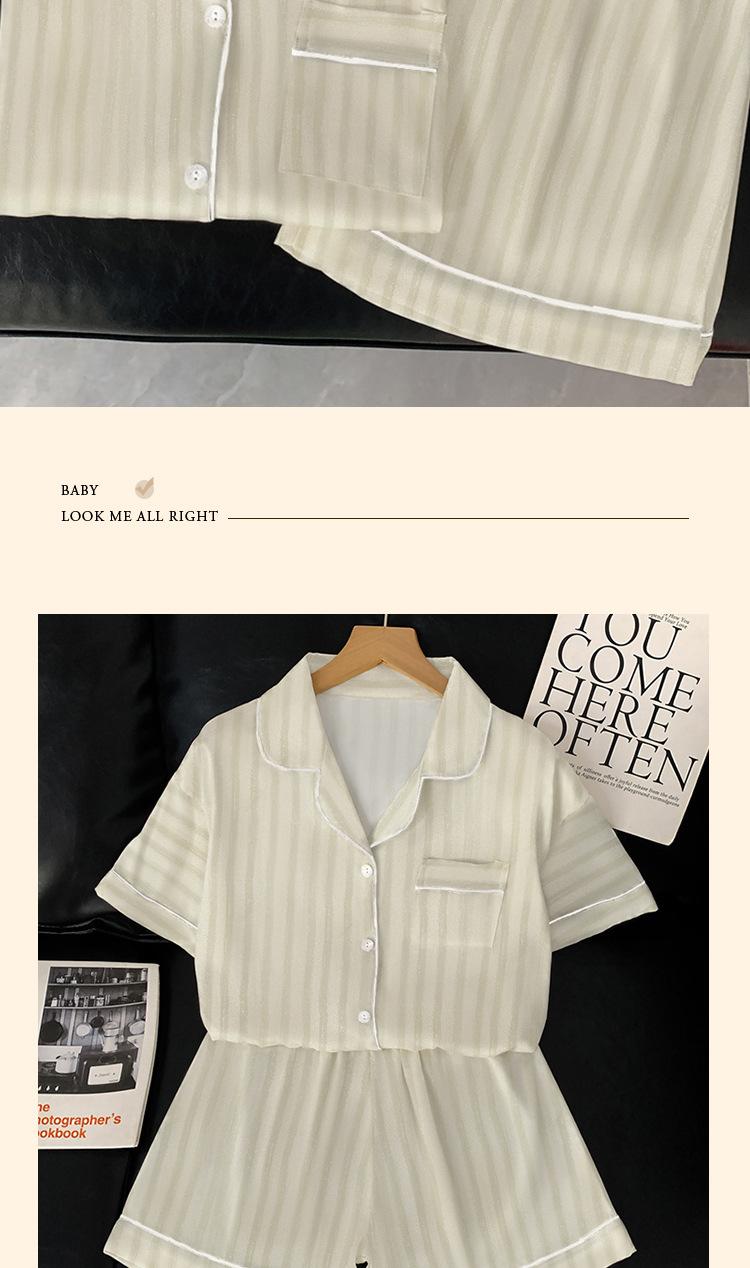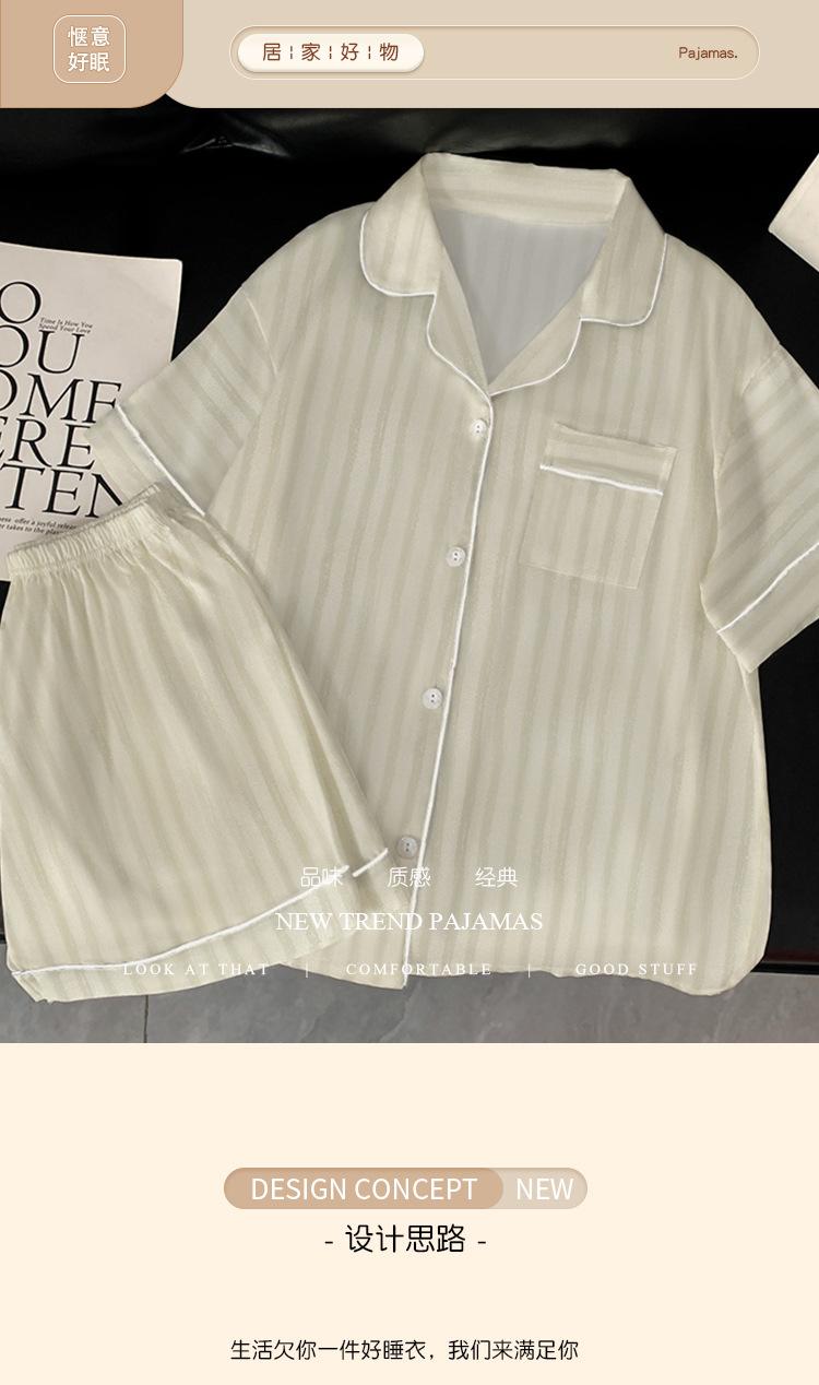 Pijama de Verano de Manga Corta para Mujer Sencillo a Rayas de Alta Calidad Satén Seda de Hielo Ropa de Exterior Traje para el Hogar Venta al por Mayor