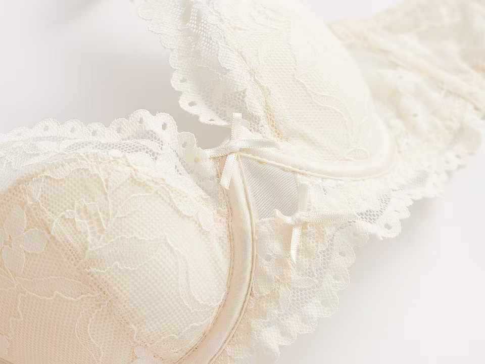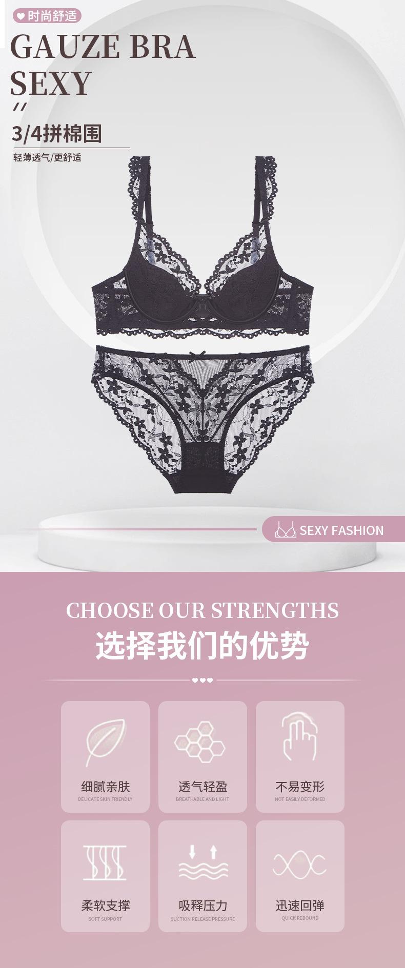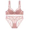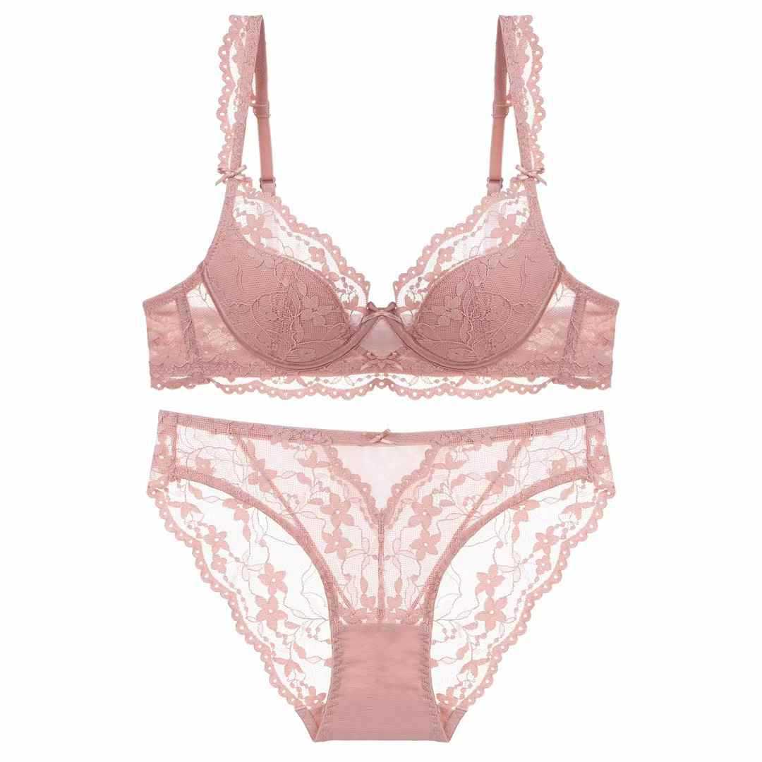 Nueva Ropa Interior Sexy de Encaje Pecho Pequeño Push-up Ligero con Aro de Acero Transpirable Copa Delgada Encaje Pequeño Tirante Volador Traje de Brasier