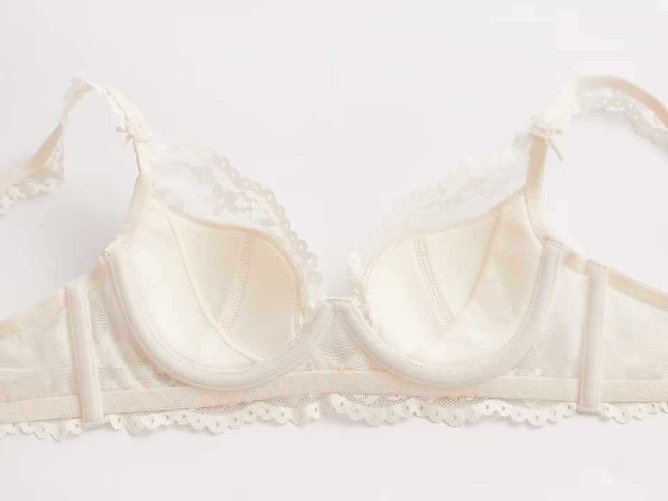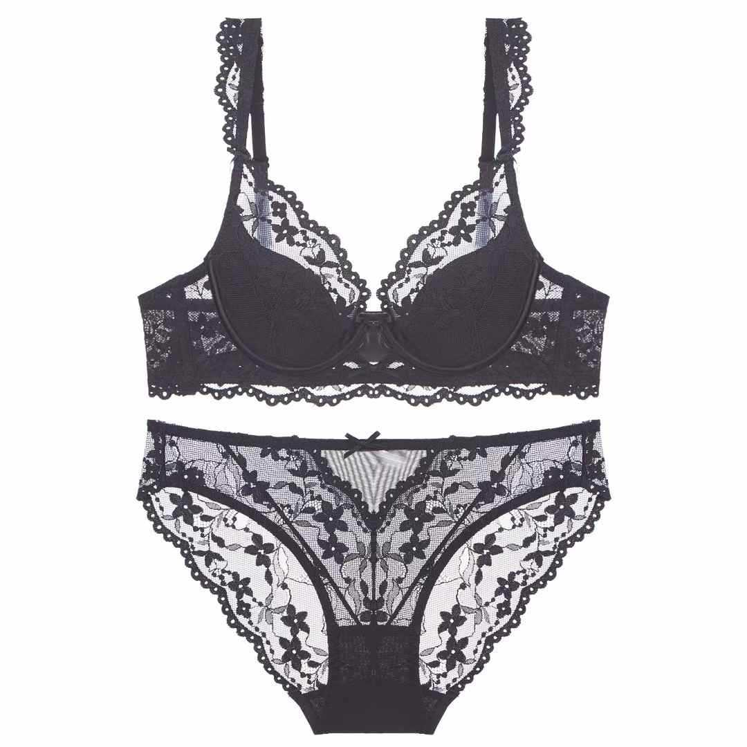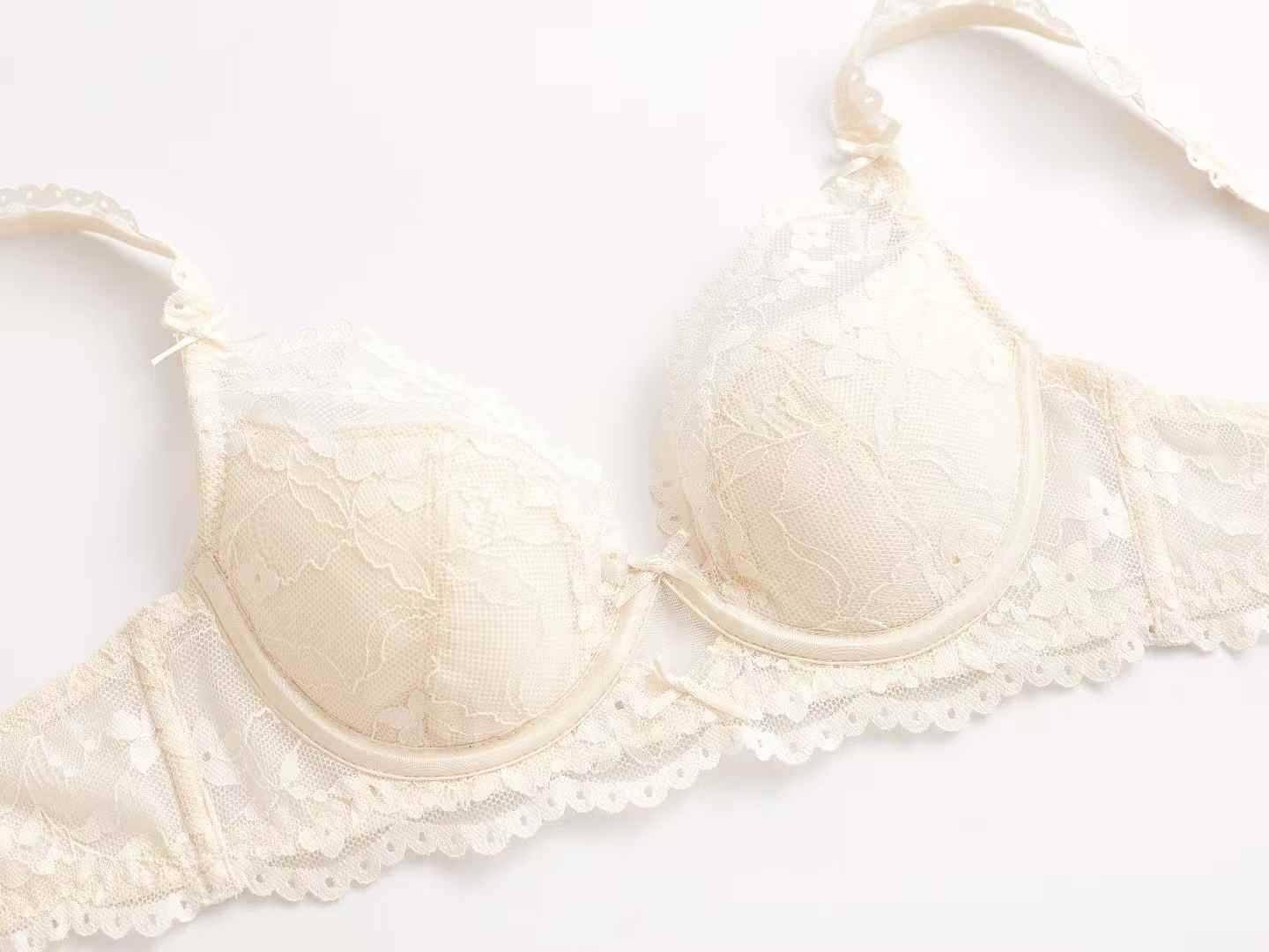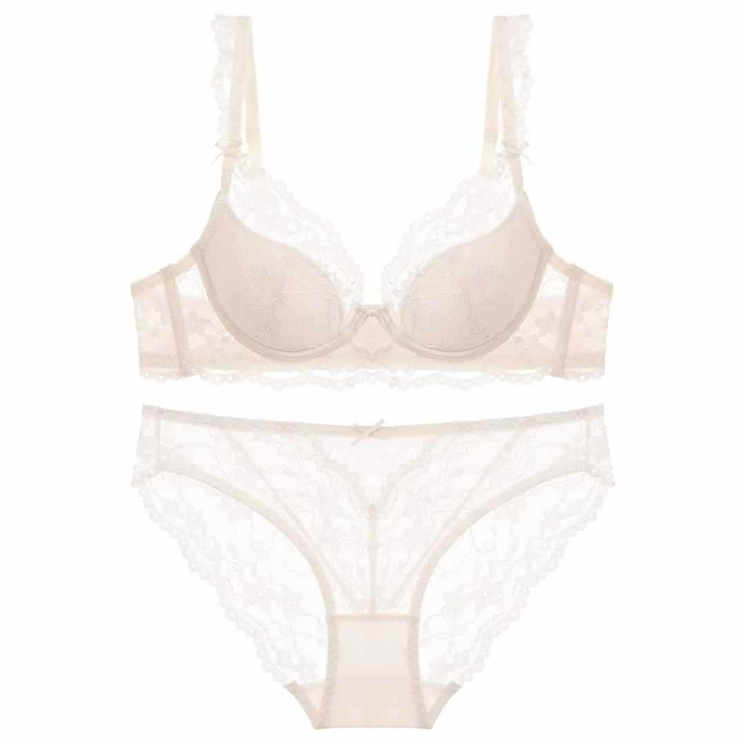 Nueva Ropa Interior Sexy de Encaje Pecho Pequeño Push-up Ligero con Aro de Acero Transpirable Copa Delgada Encaje Pequeño Tirante Volador Traje de Brasier