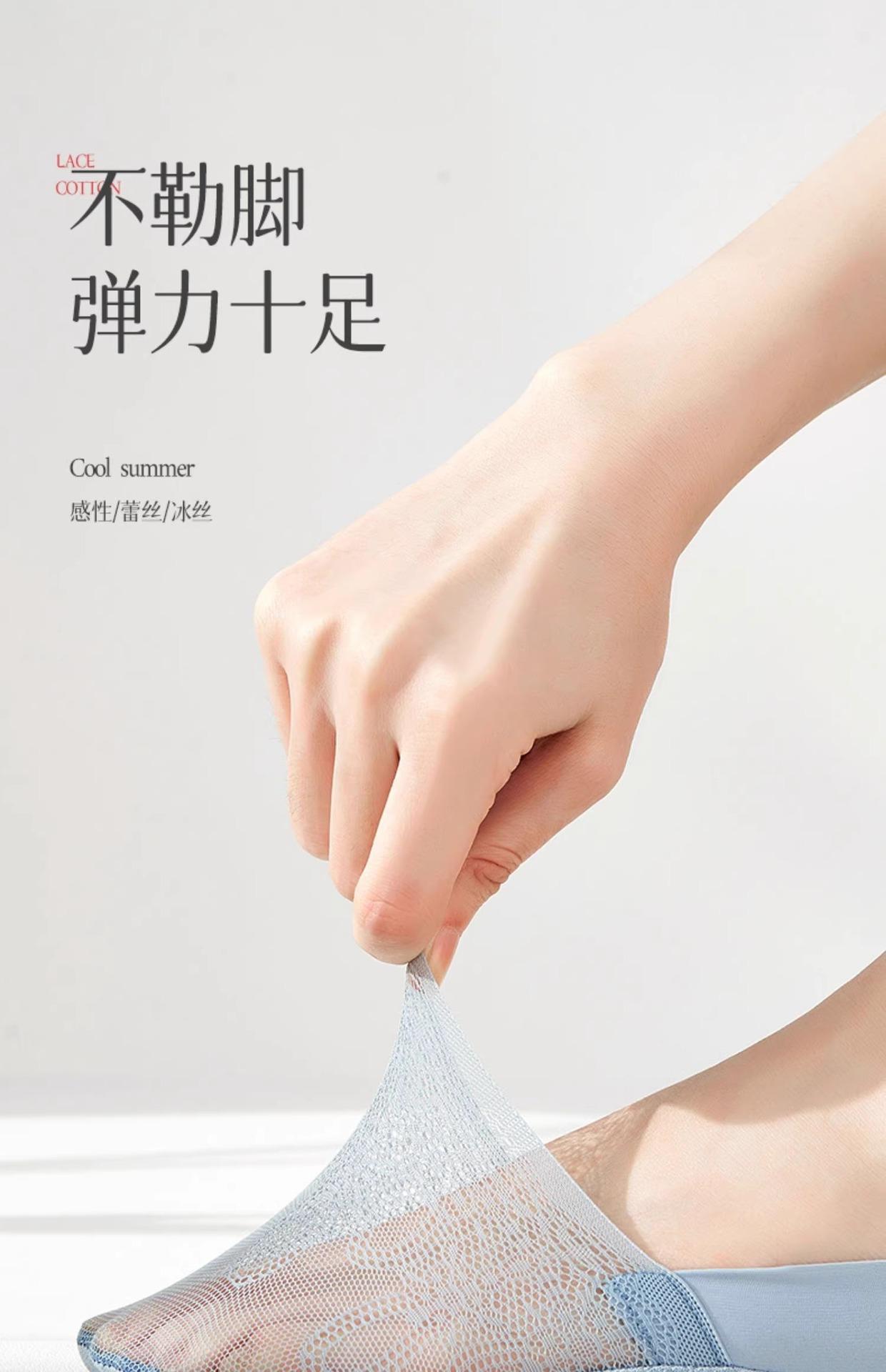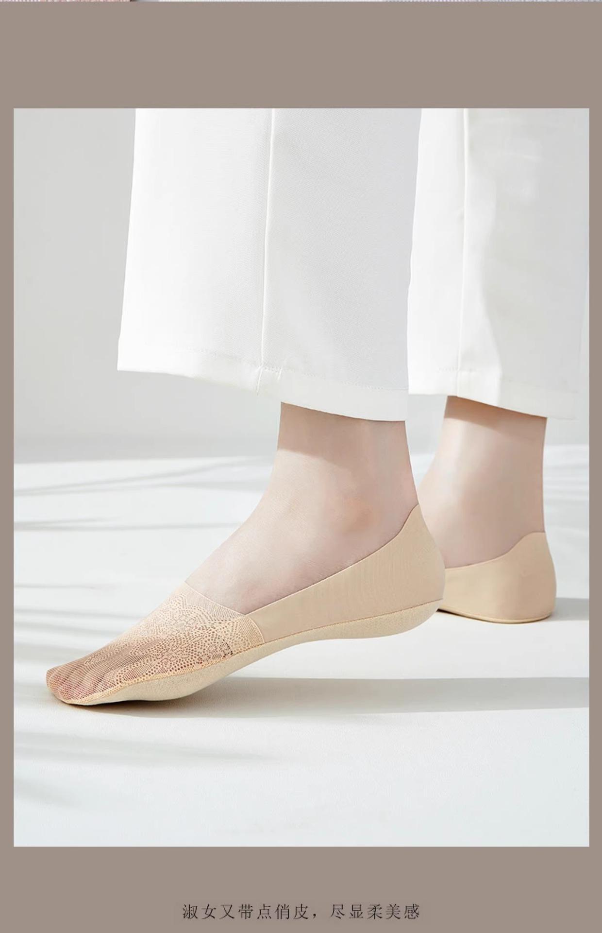 Calcetines de Barco para Mujer, Calcetines de Malla de Encaje Finos de Verano, Antideslizantes, No se Caen, Calcetines Invisibles de Boca Baja para Tacones Altos, Calcetines de Seda de Hielo