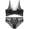 Conjunto de Brasier Push-Up de Encaje Estilo Francés con Varilla Inferior para Busto Pequeño con Parte Superior Delgada e Inferior Gruesa para Recoger los Senos Laterales y Prevenir la Caída