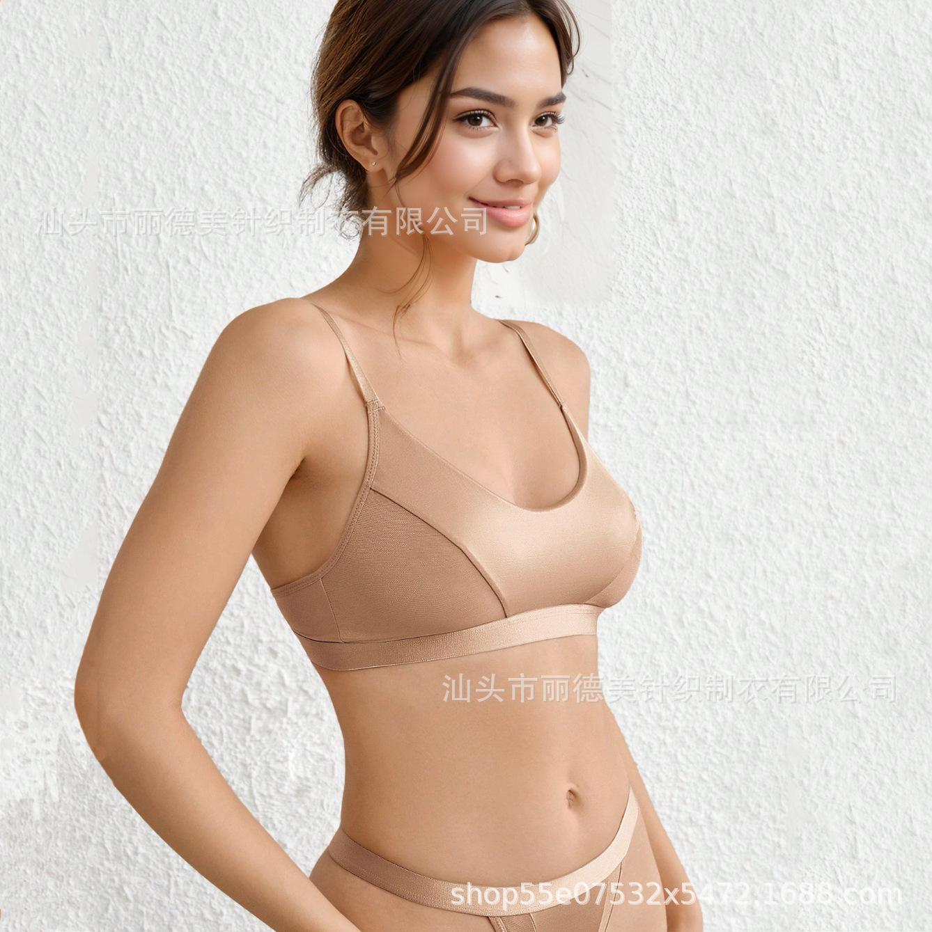 Traje de brasier delgado para mujer transfronterizo de Europa y Estados Unidos sin aro de acero, traje de ropa interior en stock al por mayor, traje de brasier para mujer