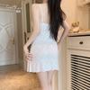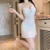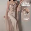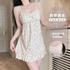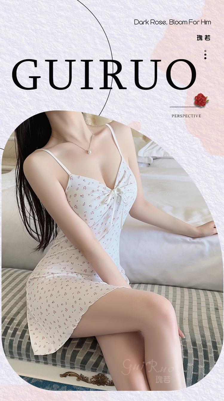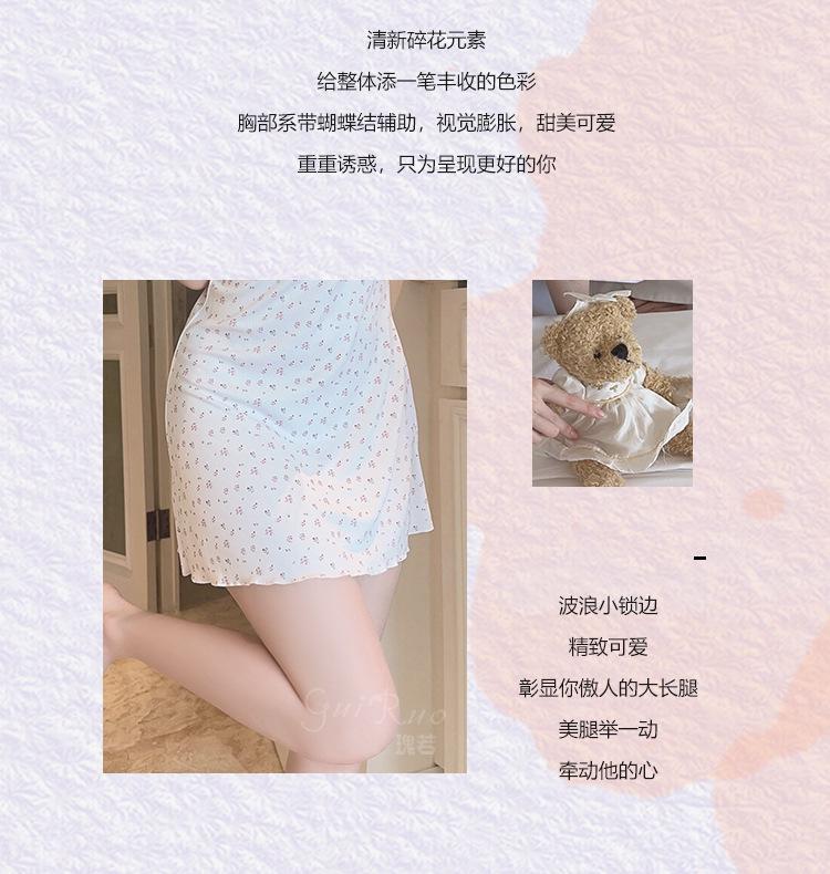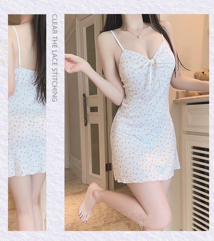 Guiruo Ropa Interior de Seda de Hielo de Deseo Puro para Mujer Escote en V Profundo Push up con Almohadilla para el Busto Dulce Camisón Estampado Conjunto de Ropa para el Hogar 5841