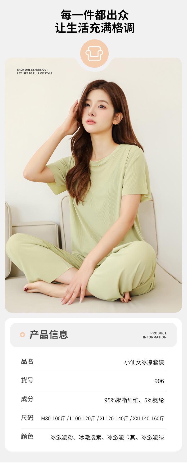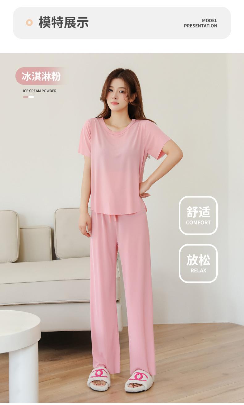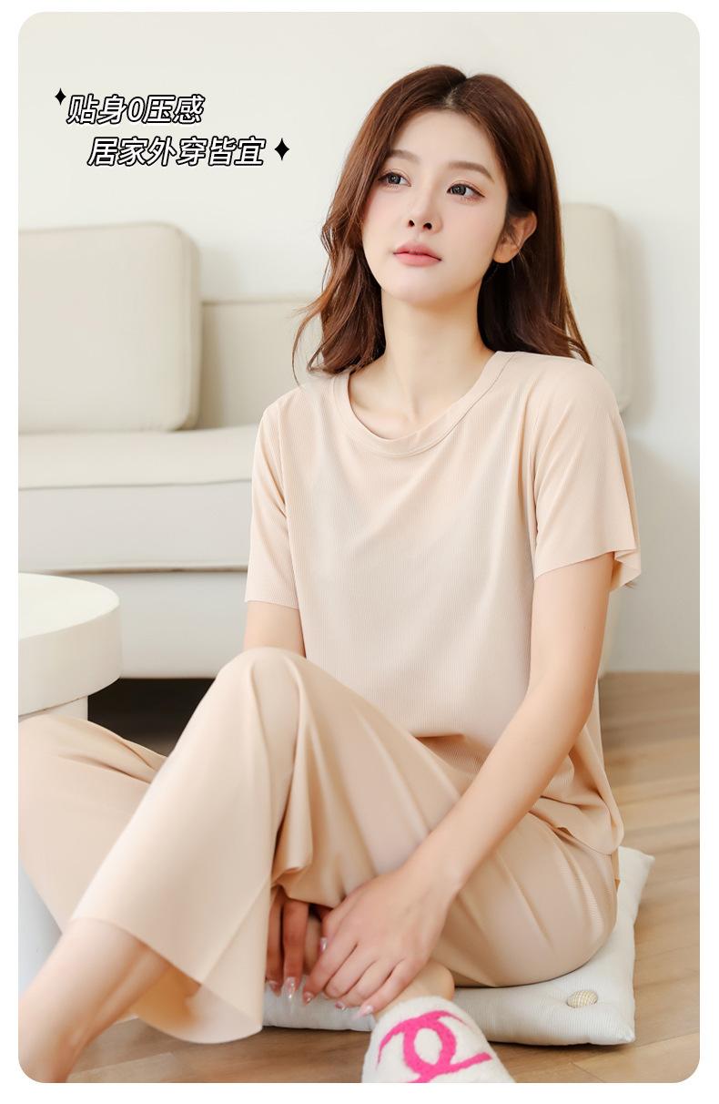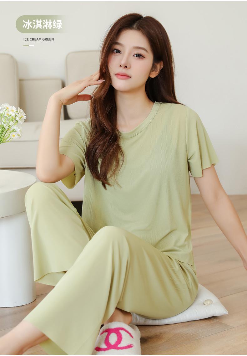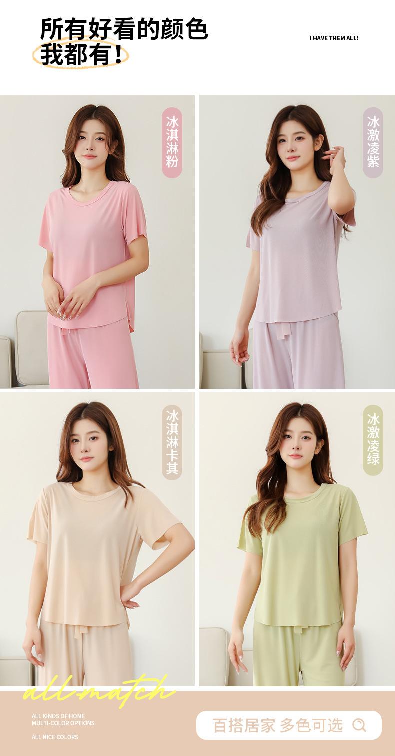 Summer couple pajamas for women breathable ice silk pants short sleeves