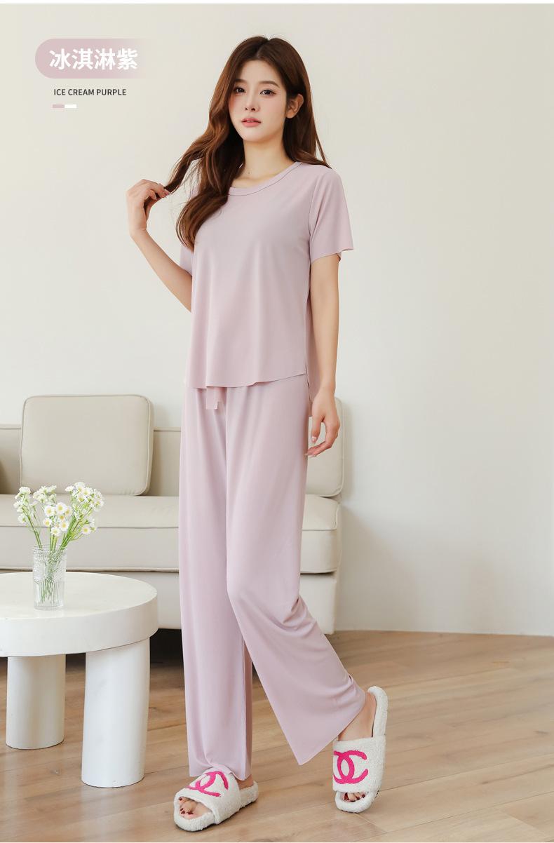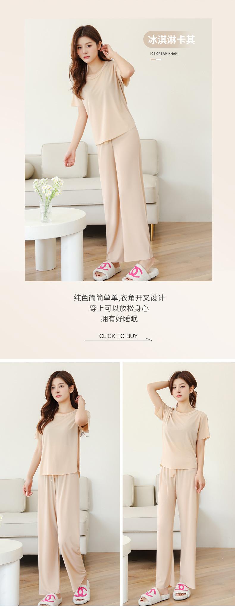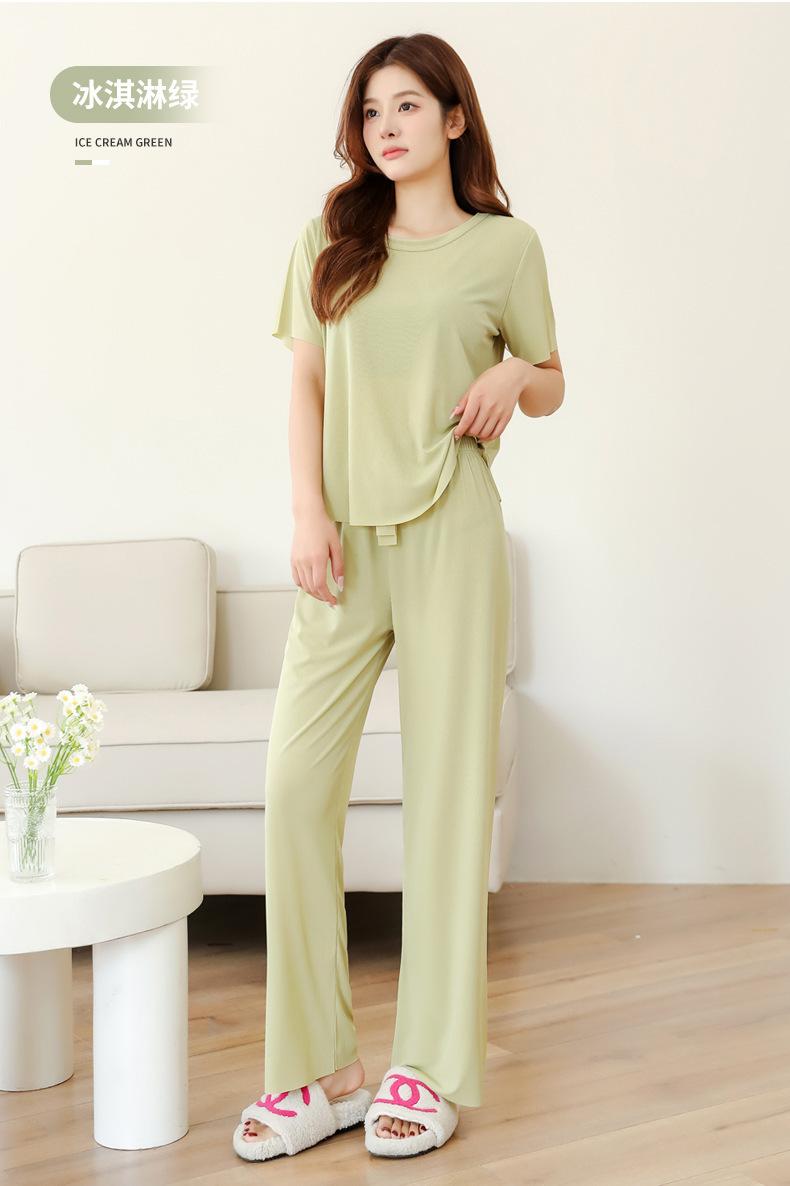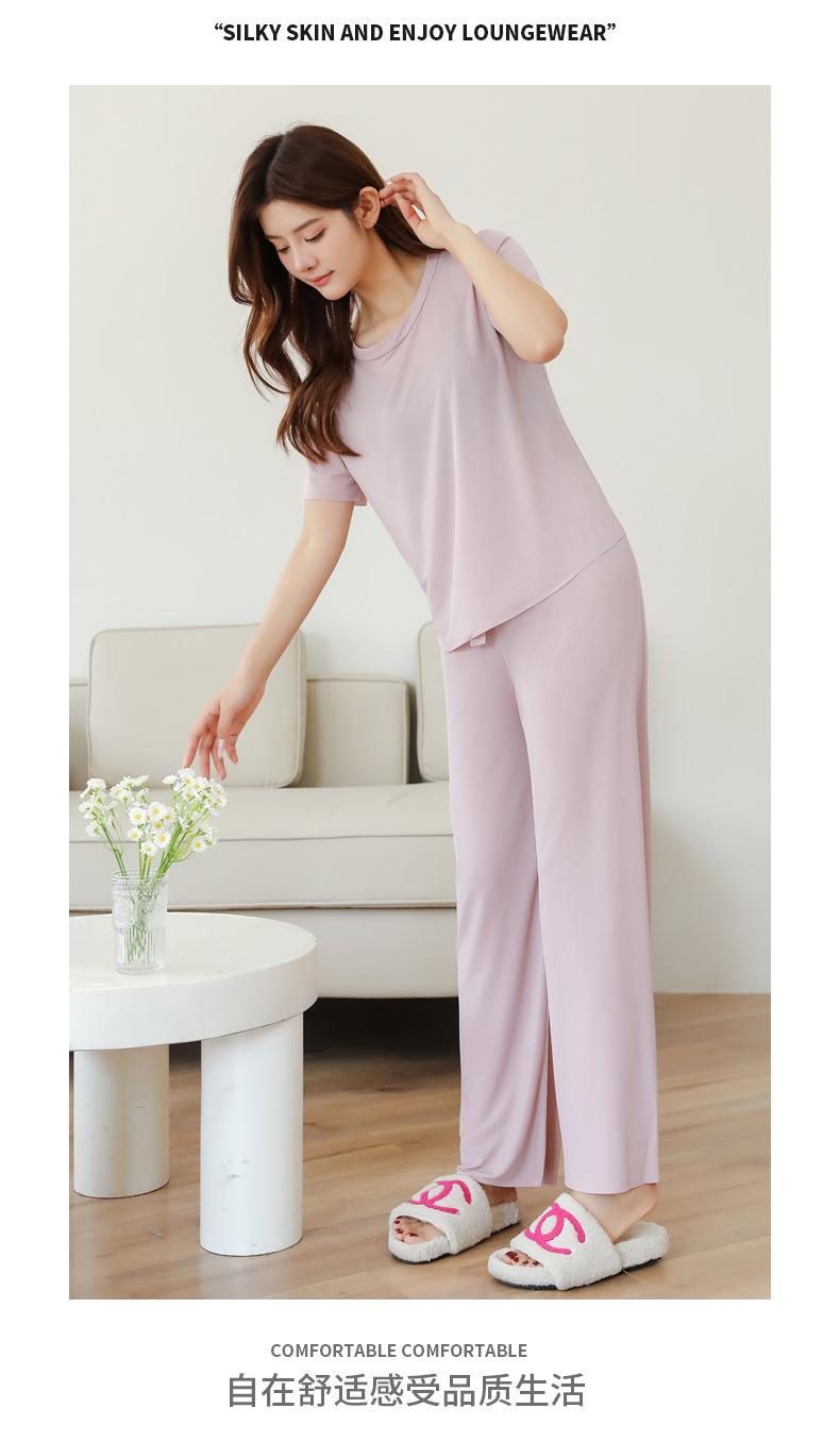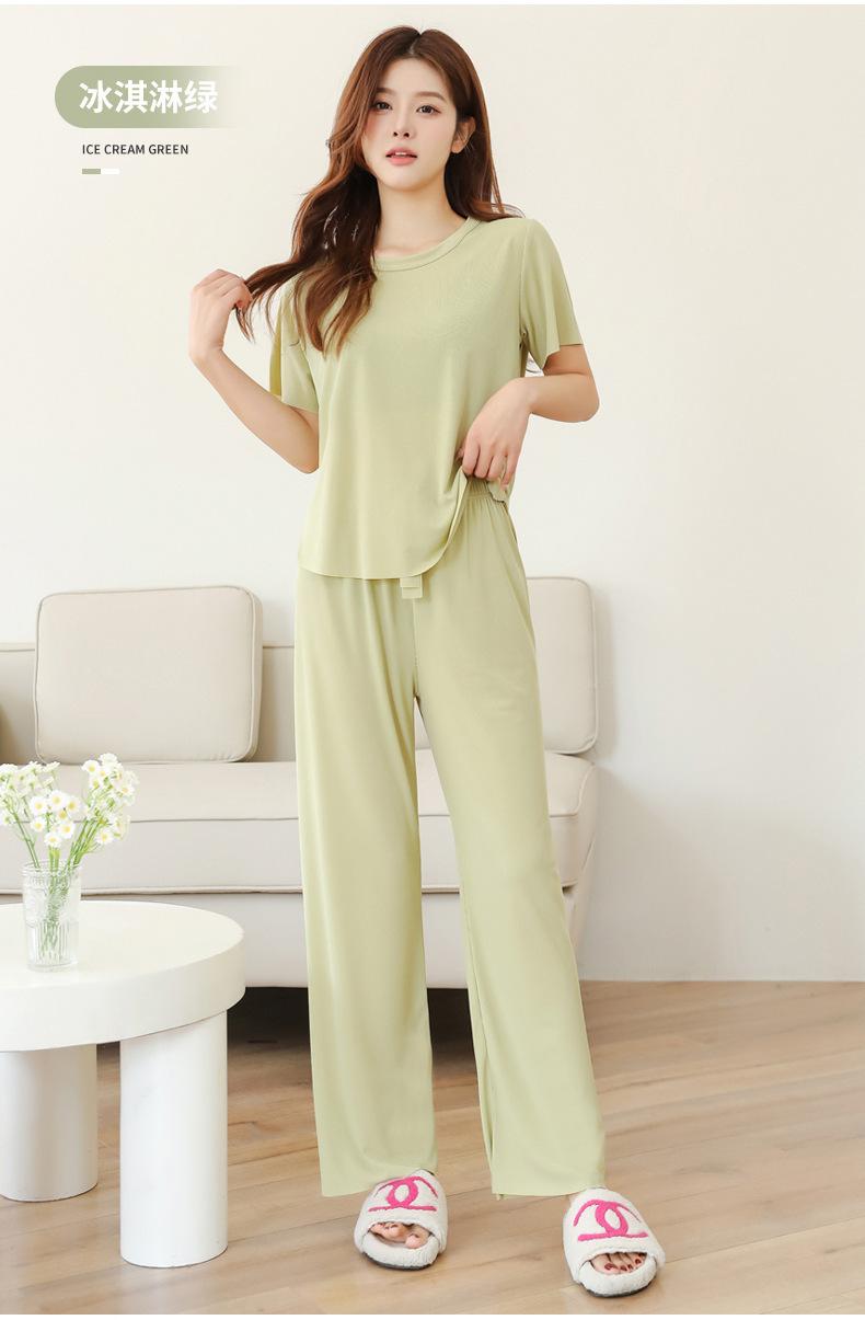 Summer couple pajamas for women breathable ice silk pants short sleeves