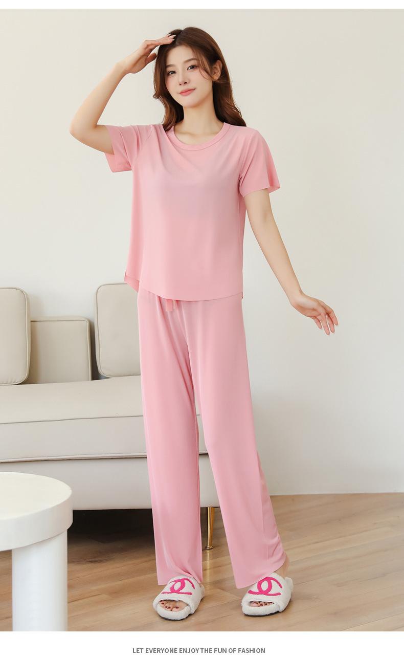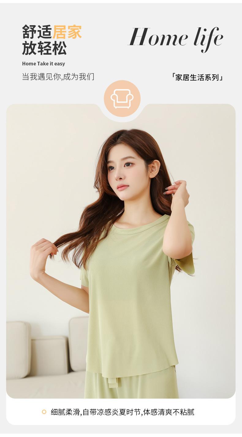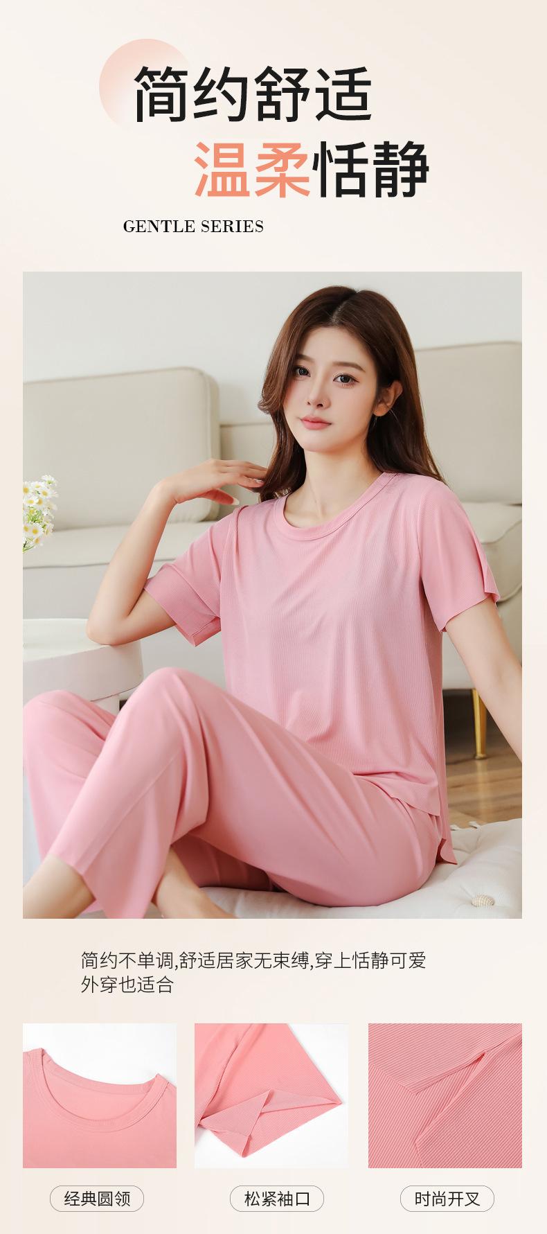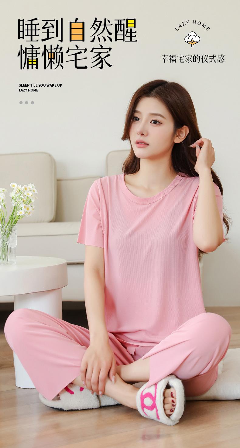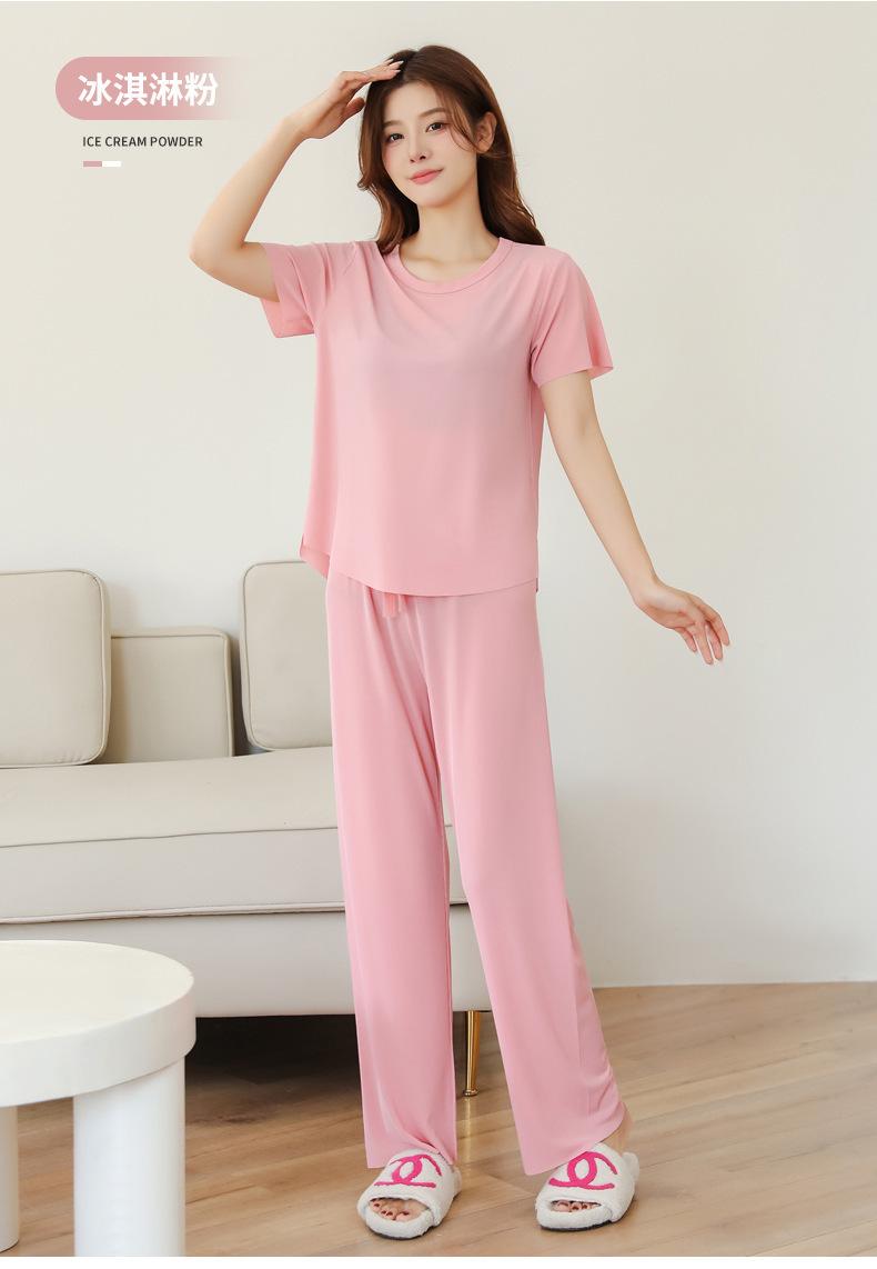 Summer couple pajamas for women breathable ice silk pants short sleeves