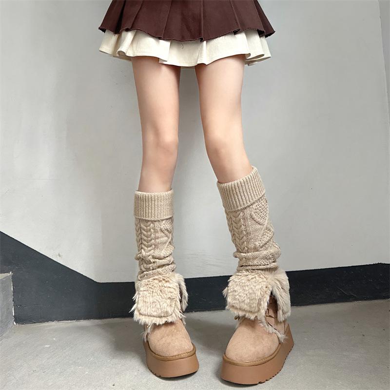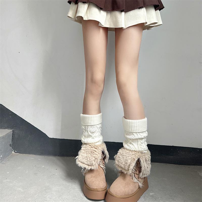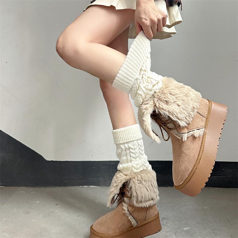 Calcetines Cálidos de Punto para Primavera 2024 para Mujer Otoño e Invierno Cubrepiernas de Lana Calcetines Gruesos para Pantorrilla Botas de Nieve Blancos de Felpa